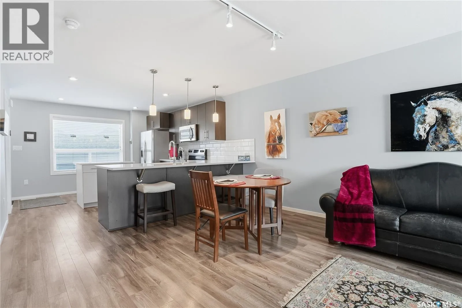 Welcome to 4126 Brighton Circle, ideally situated in the highly sought-after and growing Brighton neighborhood. This rare end-unit townhome stands out with no condo fees, offering exceptional value and flexibility for homeowners and investors alike. Step inside to a bright and inviting main floor, where large windows flood the space with natural light. The open-concept layout is perfect for both everyday living and entertaining, featuring a spacious family area, dedicated dining space, and a well-appointed kitchen. The kitchen boasts dual islands, quartz countertops, and an abundance of counter and cupboard space, making it as functional as it is stylish. A convenient 2-piece powder room completes the main level. Upstairs, the thoughtfully designed second level includes a generous primary bedroom with a walk-in closet and a private 4-piece ensuite. Two additional well-sized bedrooms, a second 4-piece bathroom, and a spacious laundry room provide comfort and practicality for families or guests. The unfinished basement offers a blank canvas, ready for future development to suit your needsâwhether thatâs additional living space, a home gym, or a recreation area. Outside, enjoy a beautifully landscaped west-facing backyard, perfect for soaking up afternoon sun and evening sunsets. The yard features a deck, and landscaping. There are a variety of fruit trees and plants, including apple trees, haskap bushes, sour cherry bush, raspberries, strawberries, and numerous perennials. A double detached garage adds convenience and extra storage. With its rare no-fee ownership, functional layout, and desirable location, this home is a standout opportunity in Brighton. (id:27476)