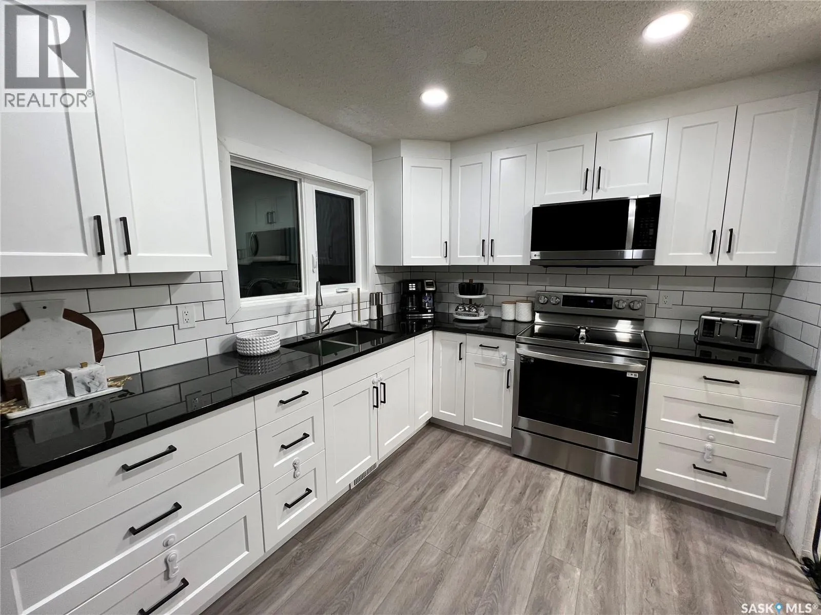 Welcome to this beautifully renovated bungalow in the sought-after neighbourhood of Lakeview in Saskatoon. Ideally located near two elementary schools, this spacious home offers the perfect blend of comfort, style, and convenience for families. Featuring 5 bedrooms and 3 full bathrooms, this home has been thoughtfully updated throughout. Enjoy brand new flooring, windows, and doors, along with a stunning new kitchen designed for both everyday living and entertaining. The upgrades continue outside with a new deckâperfect for relaxing or hosting summer gatheringsâas well as a new water heater for added peace of mind. With modern finishes, generous living space, and an unbeatable location in one of Saskatoonâs most desirable communities, this move-in-ready home is one you wonât want to miss. As per the Sellerâs direction, all offers will be presented on 02/16/2026 6:00PM. (id:27476)