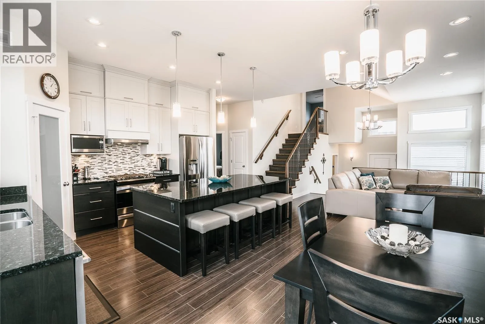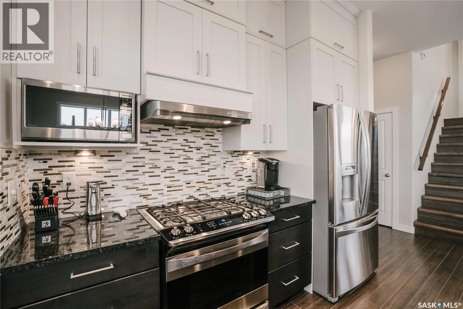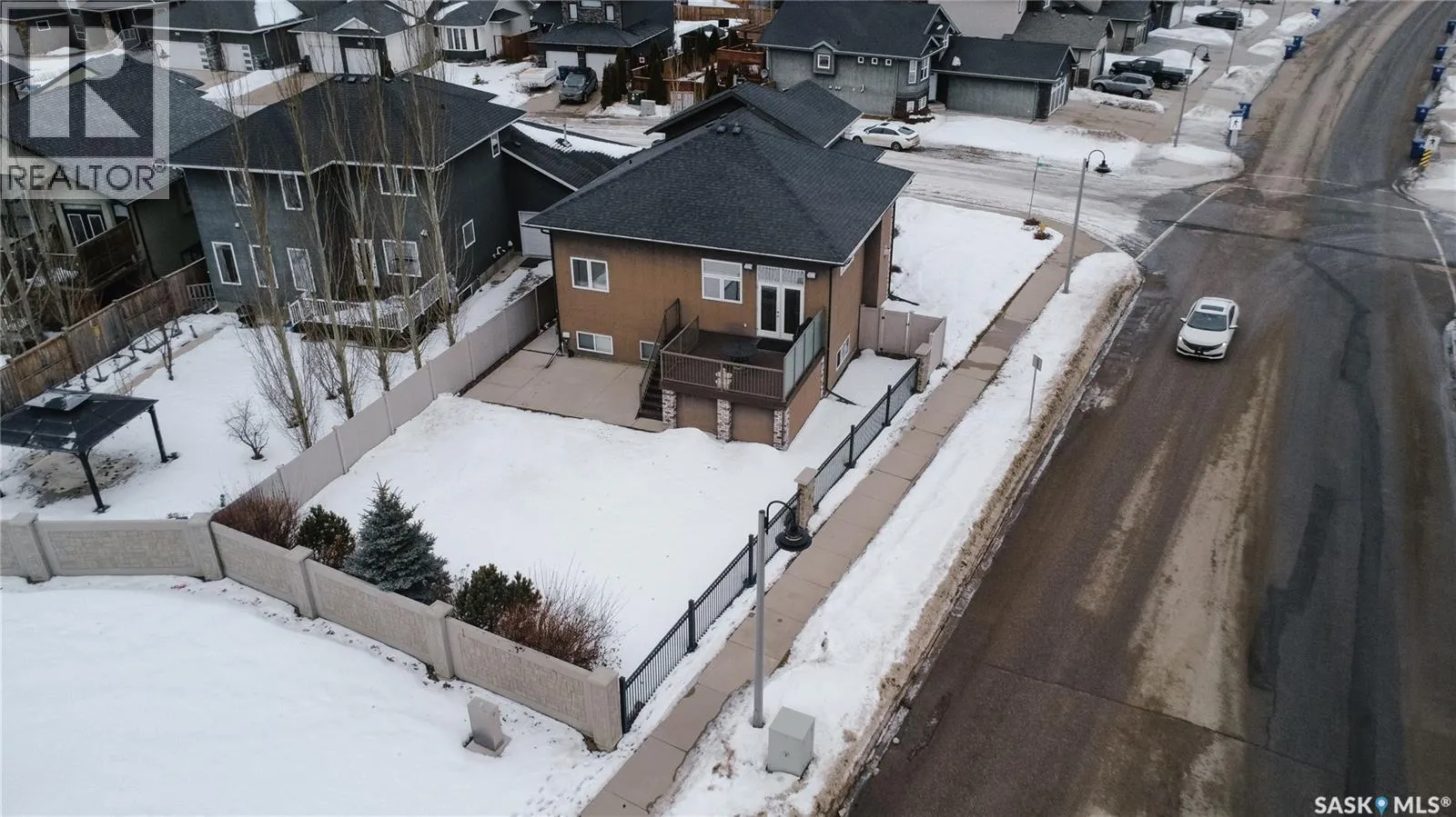 Elegance and a great design, this 1,531-square-foot Stonebridge modified bi-level is ideally situated on a premium corner lot. Soaring 10-foot ceilings and an abundance of oversized windows work in harmony to bathe the interior in natural light, creating an atmosphere that is both bright and impeccably maintained. The heart of this home serves as a true testament to quality craftsmanship. The cozy living room, anchored by gleaming hardwood flooring and a warm gas fireplace, flows seamlessly into a kitchen designed for the culinary enthusiast. This dream workspace is elevated by high-end stainless steel appliances, including a gas range, complemented by a large granite island and a convenient walk-in pantry. Adjacent to the kitchen, the spacious dining area opens through garden doors to a sun-drenched, south-facing deck, perfect for indoor-outdoor entertaining. The main floor features two generously sized bedrooms and a full bathroom, while the exclusive upper level is dedicated entirely to the primary suite. This private sanctuary boasts a luxurious ensuite finished with granite "his and her" sinks and an expansive walk-in closet. The impressive 9-foot ceilings ensure the lower level family room feels light and open. There is also a bonus area open for future development. Extras include an integrated Home speakers, central air and underground sprinklers. Outside, the property is fully landscaped and features a large private concrete patio and additional storage space tucked neatly under the upper deck. The main level has laundry and a boot room to a heated and boarded double attached garage. This move-in-ready residence offers a rare opportunity. Don't miss it! As per the Sellerâs direction, all offers will be presented on 02/16/2026 5:00PM. (id:27476)