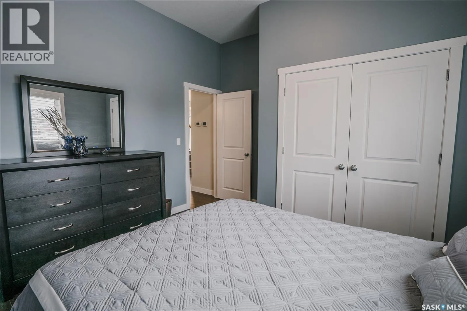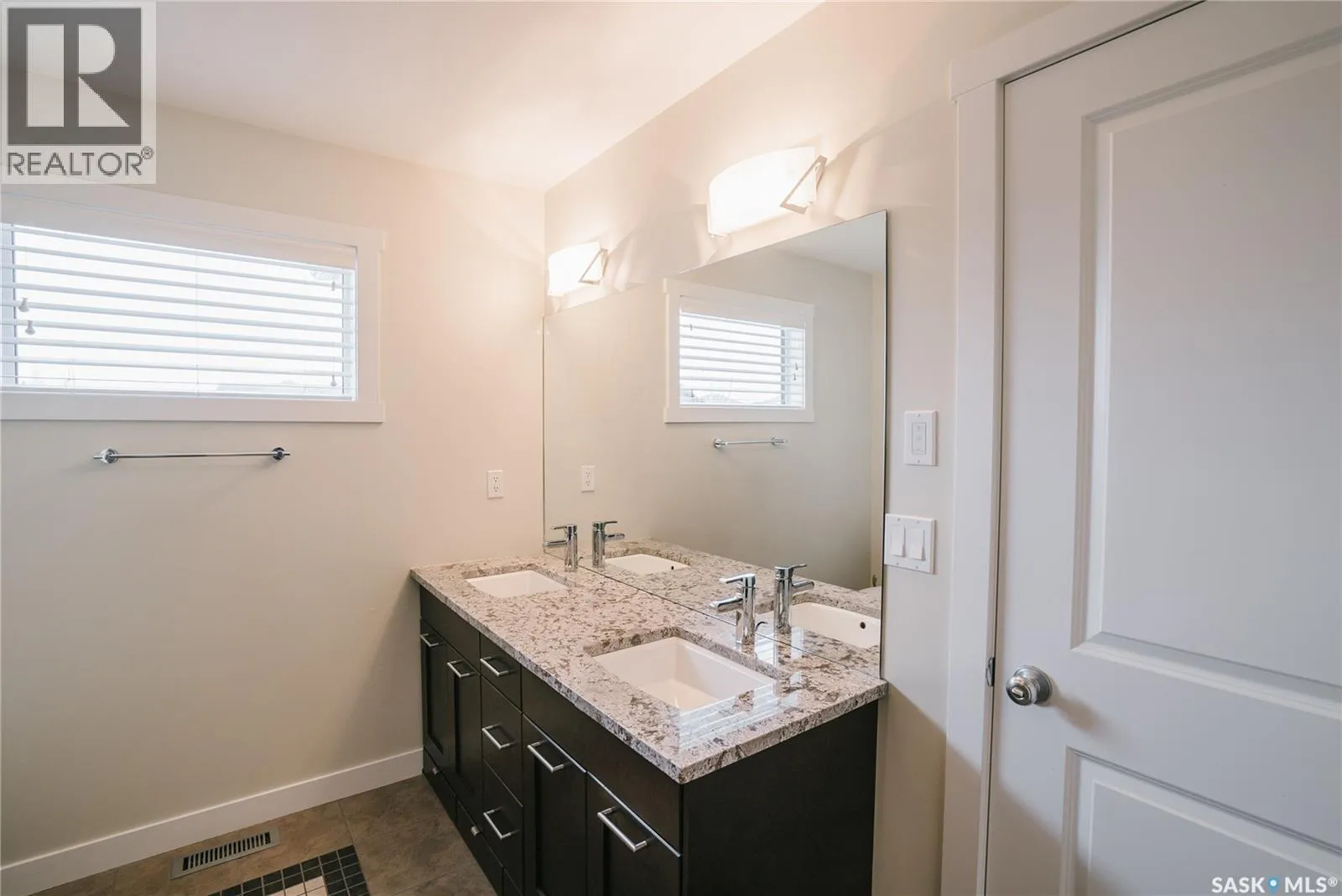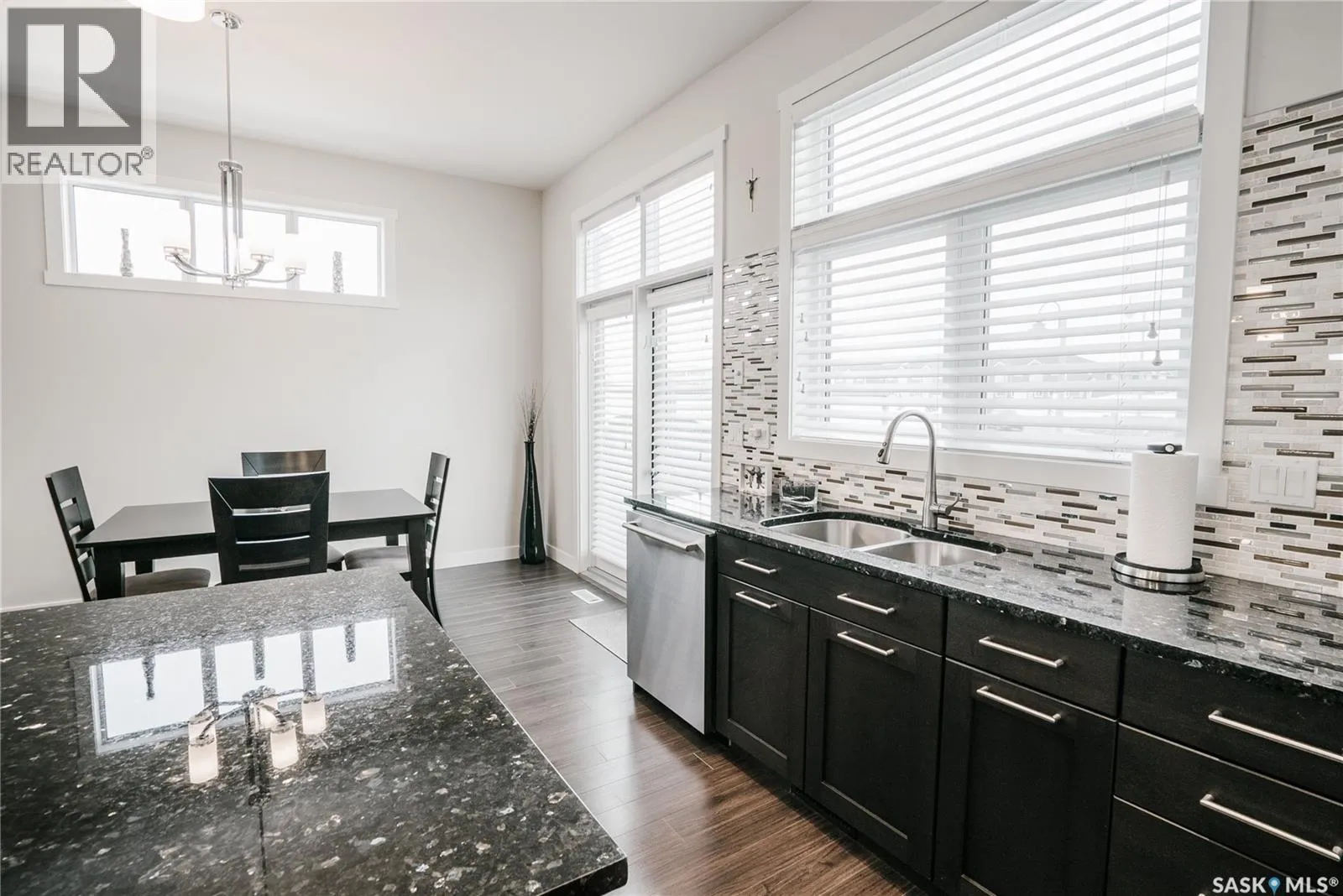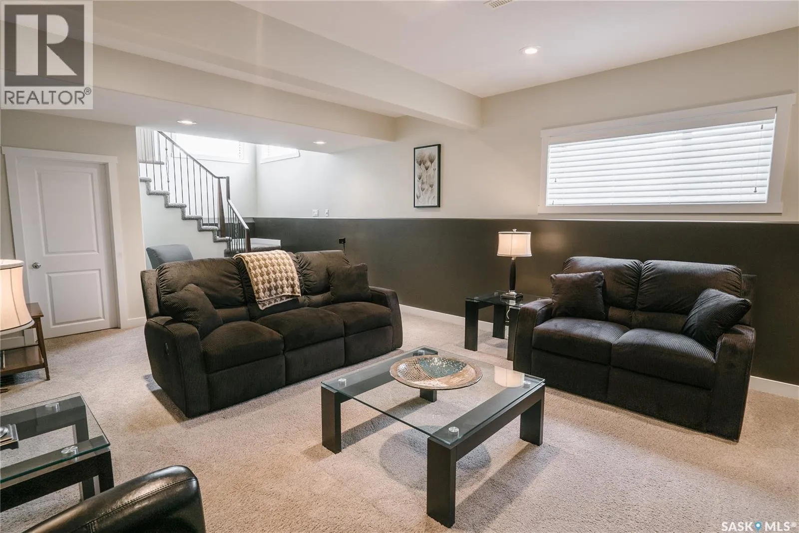 Elegance and a great design, this 1,531-square-foot Stonebridge modified bi-level is ideally situated on a premium corner lot. Soaring 10-foot ceilings and an abundance of oversized windows work in harmony to bathe the interior in natural light, creating an atmosphere that is both bright and impeccably maintained. The heart of this home serves as a true testament to quality craftsmanship. The cozy living room, anchored by gleaming hardwood flooring and a warm gas fireplace, flows seamlessly into a kitchen designed for the culinary enthusiast. This dream workspace is elevated by high-end stainless steel appliances, including a gas range, complemented by a large granite island and a convenient walk-in pantry. Adjacent to the kitchen, the spacious dining area opens through garden doors to a sun-drenched, south-facing deck, perfect for indoor-outdoor entertaining. The main floor features two generously sized bedrooms and a full bathroom, while the exclusive upper level is dedicated entirely to the primary suite. This private sanctuary boasts a luxurious ensuite finished with granite "his and her" sinks and an expansive walk-in closet. The impressive 9-foot ceilings ensure the lower level family room feels light and open. There is also a bonus area open for future development. Extras include an integrated Home speakers, central air and underground sprinklers. Outside, the property is fully landscaped and features a large private concrete patio and additional storage space tucked neatly under the upper deck. The main level has laundry and a boot room to a heated and boarded double attached garage. This move-in-ready residence offers a rare opportunity. Don't miss it! As per the Sellerâs direction, all offers will be presented on 02/16/2026 5:00PM. (id:27476)