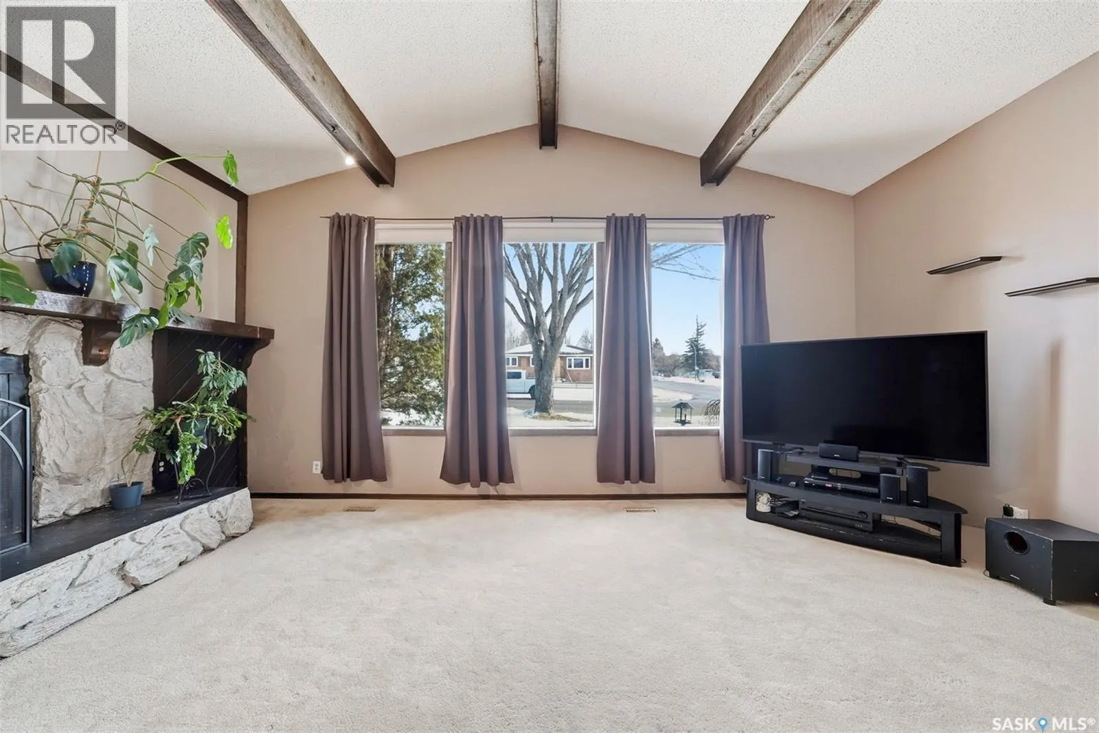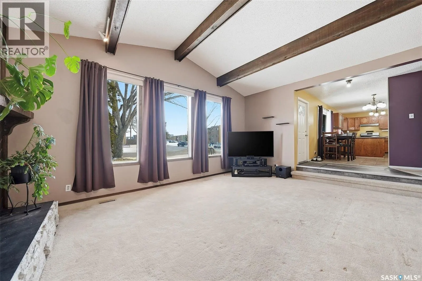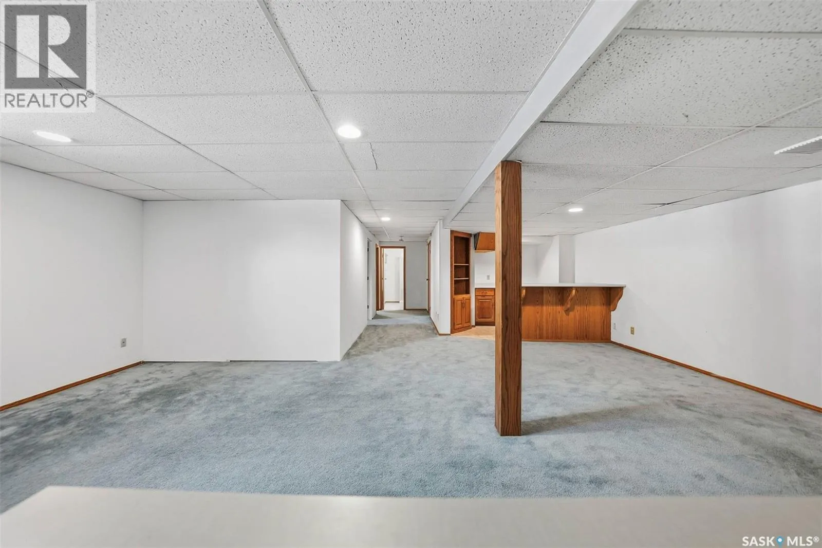Located in Meadowgreen, Saskatoon, this 1,316 sq. ft. family home sits on a large corner lot and offers a functional layout with plenty of space throughout. The main floor features a sunken living room with vaulted ceilings, large windows for natural light, and a fireplace. There are three bedrooms on this level along with a four-piece bathroom. The kitchen offers good workspace, and the main floor also includes a separate laundry room and coat/storage area. There is ample storage throughout the home with multiple closets and well-planned spaces. The basement is spacious and includes a built-in bar area, additional built-in shelving, two bedrooms, and a large utility/storage room. A covered patio-style front porch provides a nice sitting area overlooking the lawn. The backyard offers additional space with fruit trees, lawn area, and an insulated two car detached garage. Situated in an established Saskatoon neighbourhood, this property offers solid space and layout with room to make it your own. (id:27476)