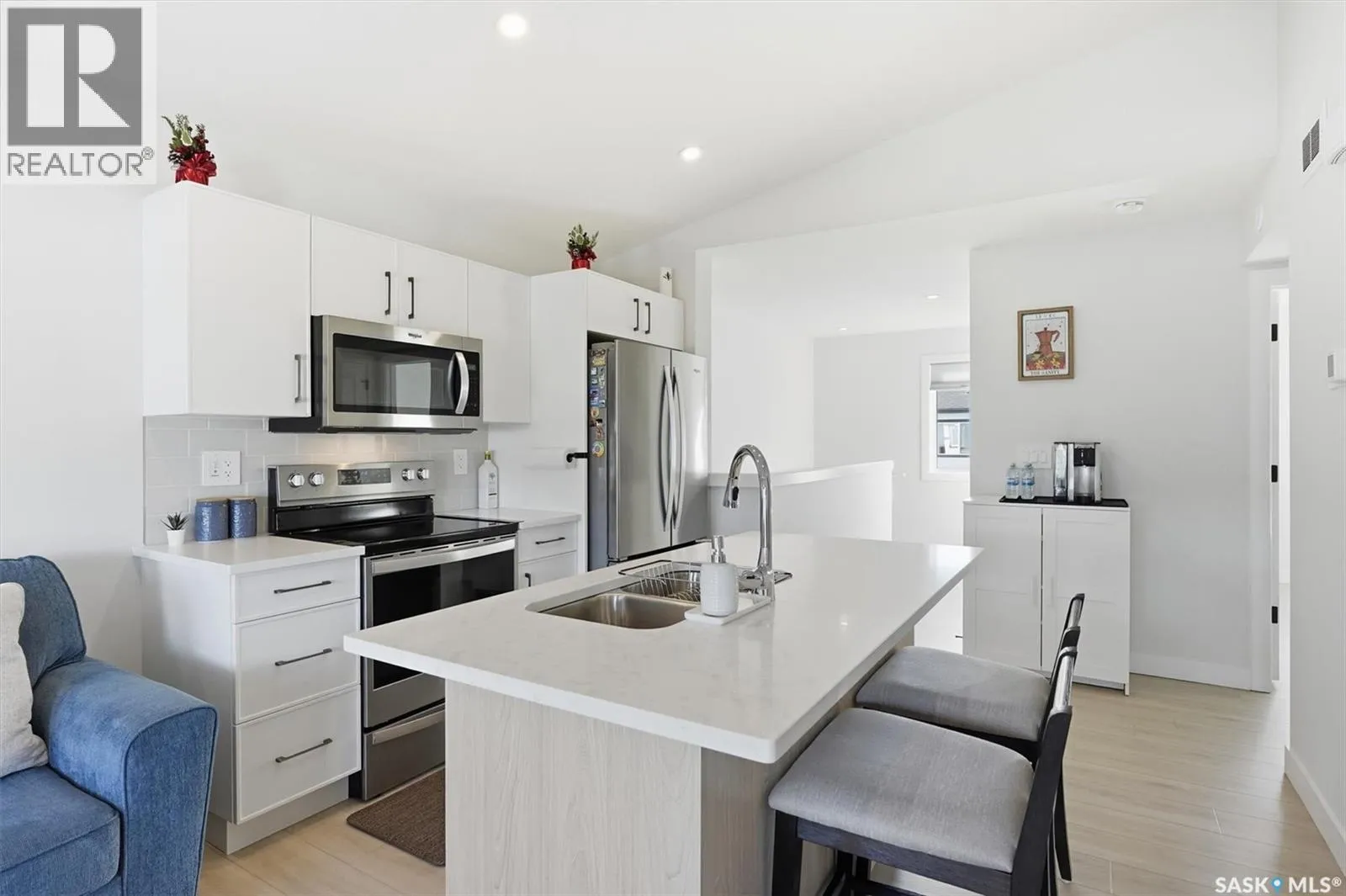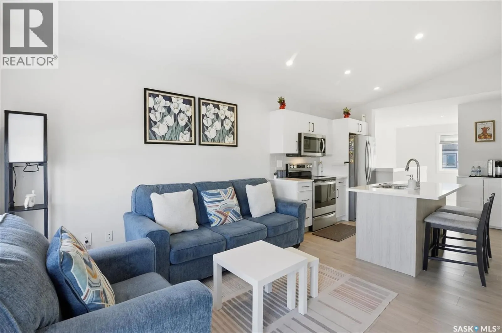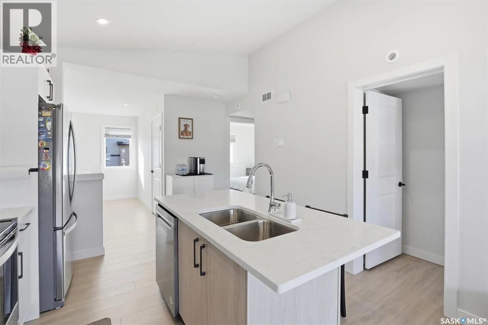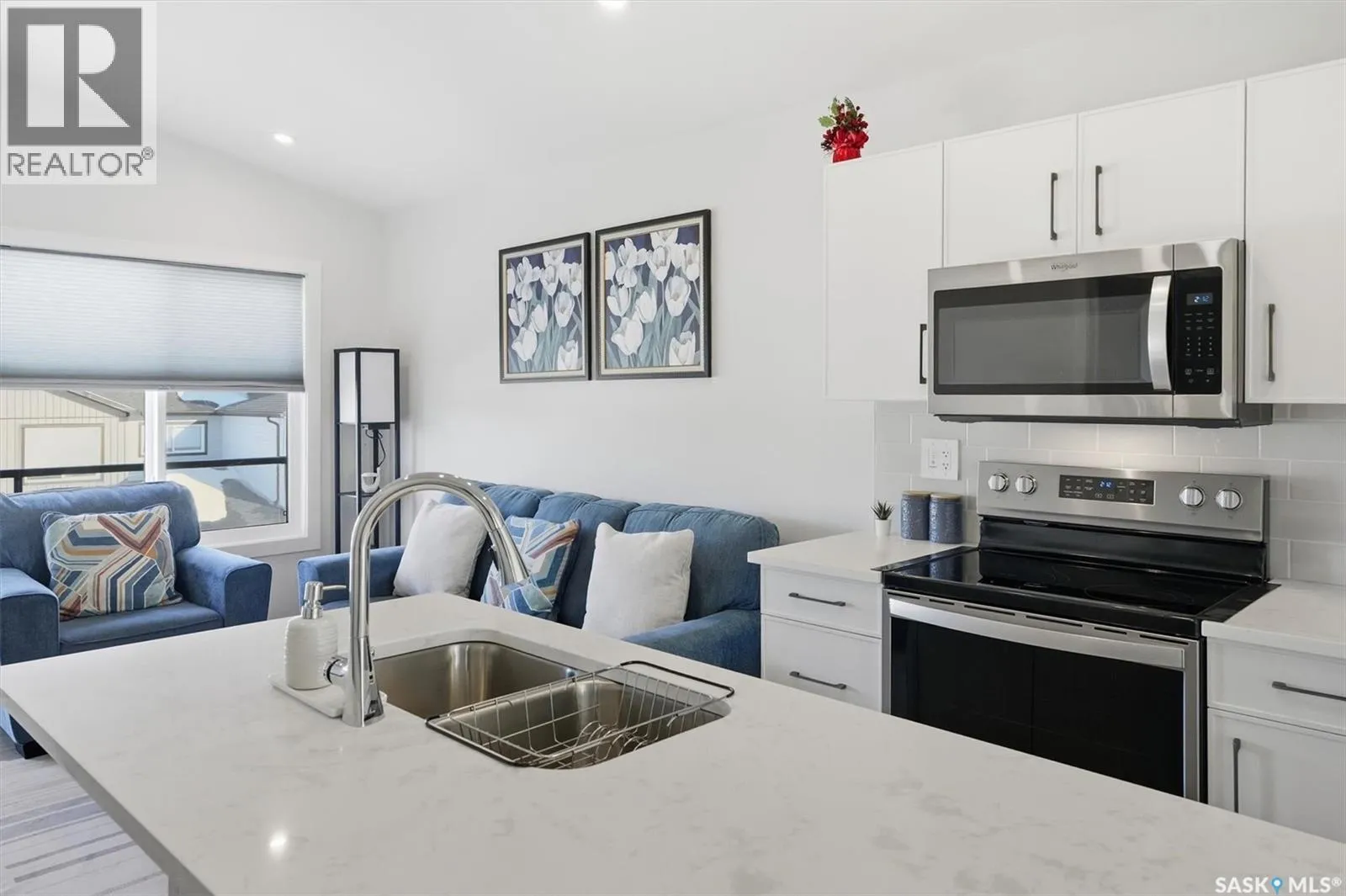 Exceptional 2 bedroom townhouse located at the "North Ridge Towns Dubois" community in Brighton! This 1011 square foot home with single attached garage is in show like condition and has been meticulously kept from top to bottom complete with many stylish finishes including vinyl plank flooring throughout the living spaces! This top floor condo has an open concept design that includes a gorgeous kitchen, a spacious living room, 2 good sized bedrooms, laundry, storage, and a full 4-pce bath. With vaulted ceilings and natural light welcoming you first thing in the morning and into the evening, this home provides a bright and airy feel any time of the day. All construction was complete in 2025 at the North Ridge Towns Dubois project providing a peaceful surrounding for you to enjoy. Located directly across the street from Brighton Core Park, this prime location is only a few minute walk to trails, splash park, playground, sports fields, and future school. Includes kitchen appliances, washer and dryer, central air conditioning, and all window coverings. Call to view! (id:27476)