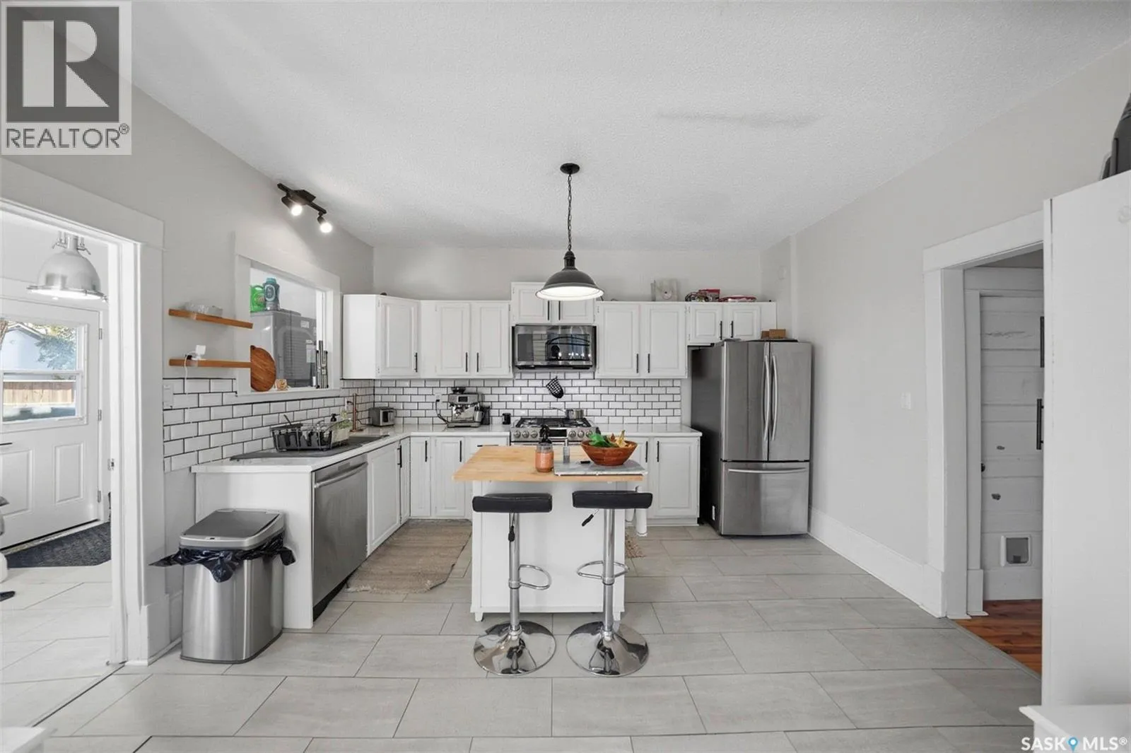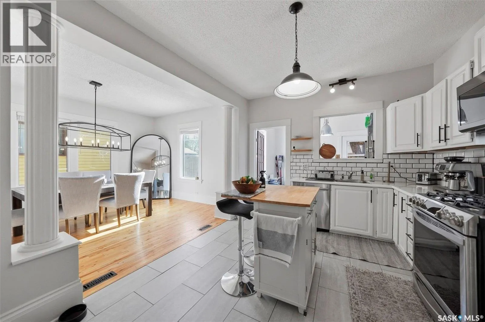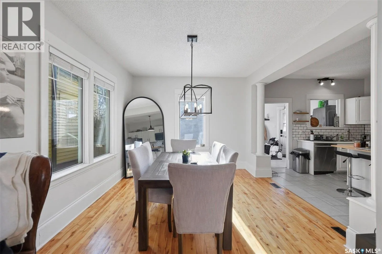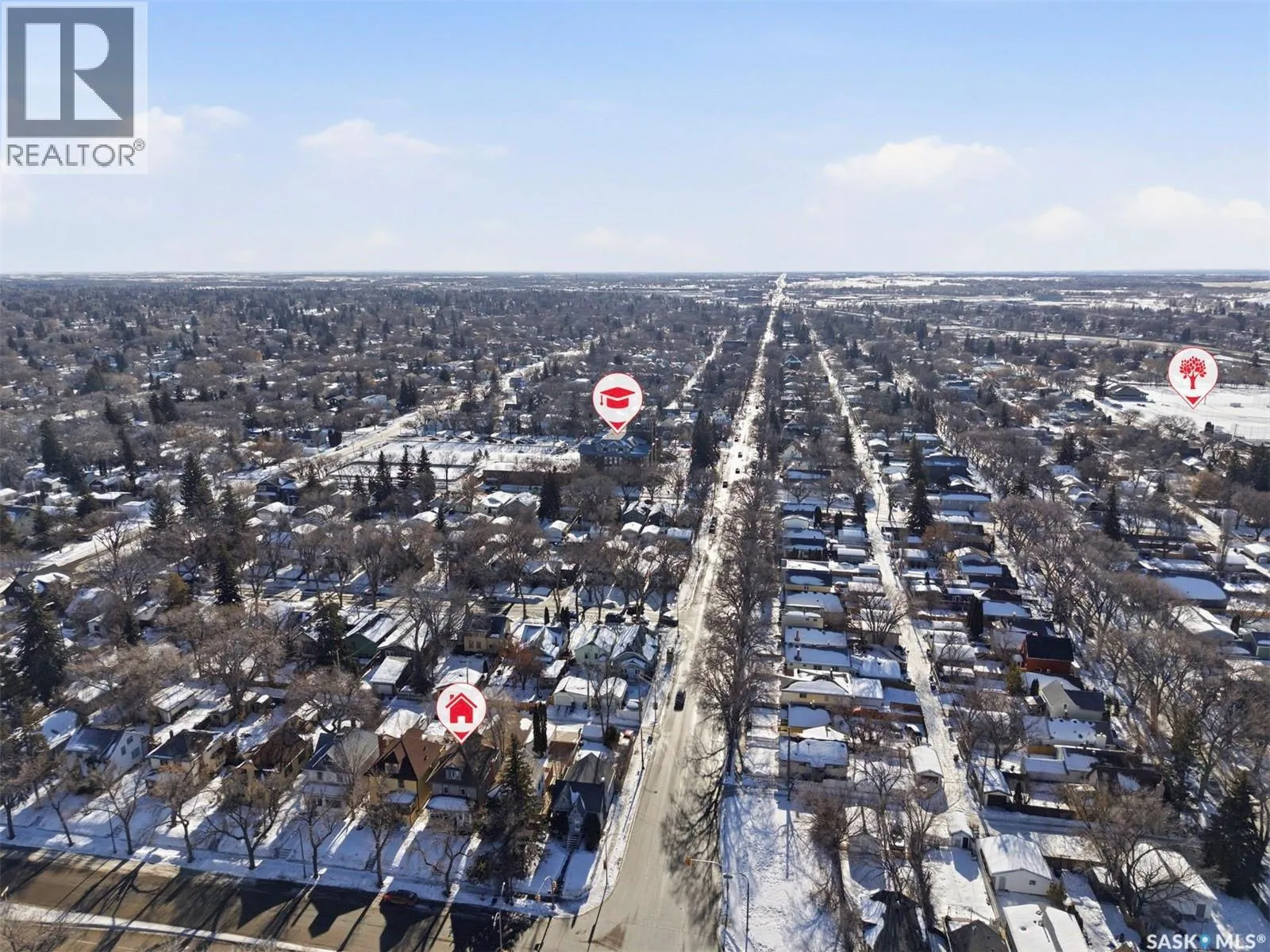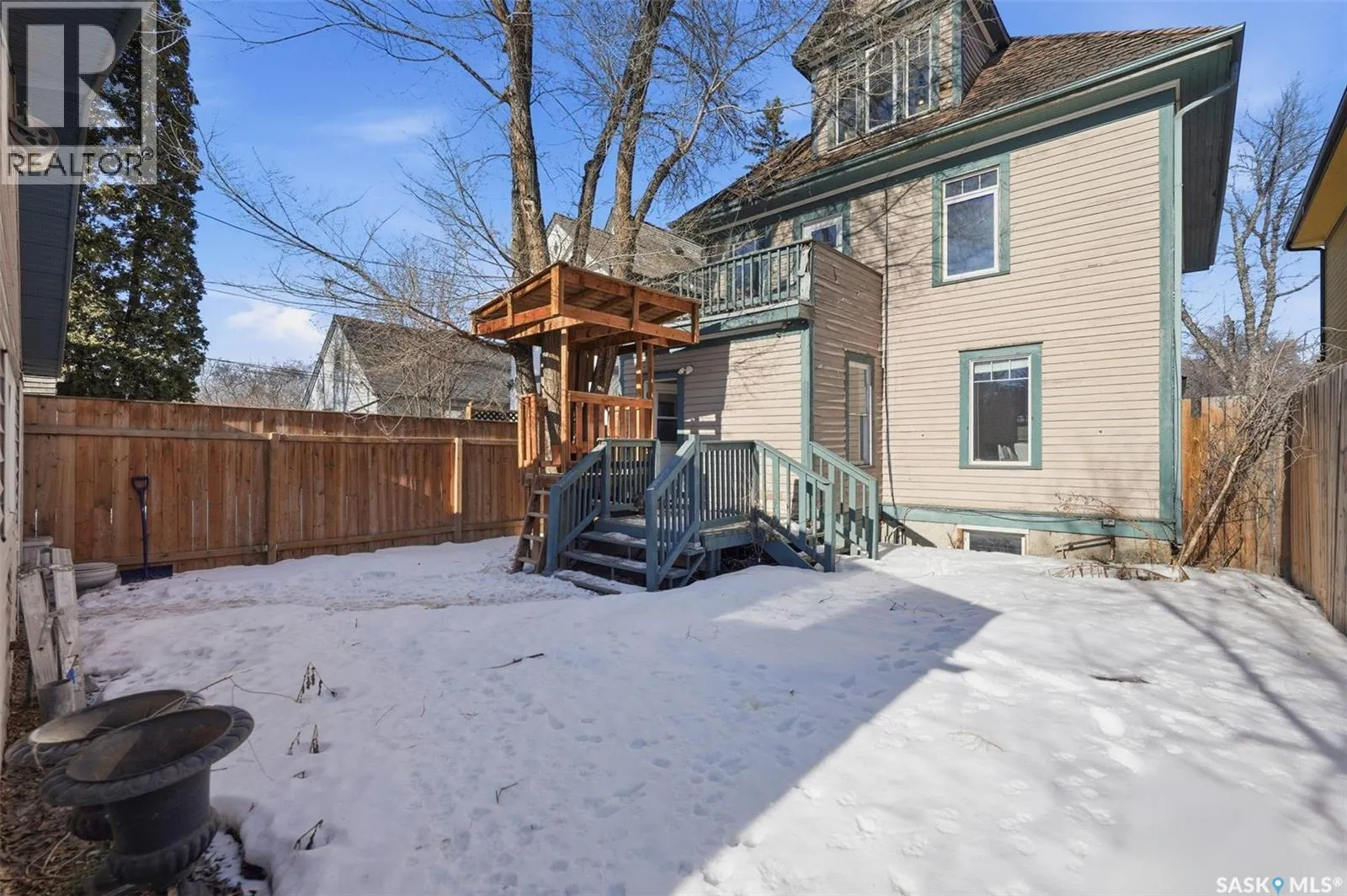 As per seller's request, please book showings starting Monday, February 16th, after 12:00 noon. Historic Charm Meets Modern Comfort in Buena Vista Discover the perfect blend of character and contemporary living at 106 8th Street. This lovingly maintained 1912 home in one of Saskatoon's most walkable neighborhoods offers both a beautiful residence and income potential. Main Floor Living Step through the grand entryway into a home where original charm shines. Elegant pocket doors open to a sun-filled living room that flows seamlessly into the spacious dining areaâperfect for entertaining. The recently renovated kitchen features stone countertops, a functional island, stainless steel appliances, and a gas range for the home chef. Nine-foot ceilings and triple-paned windows create an airy, light-filled atmosphere throughout. Private Retreats Upstairs The second floor offers four generous bedrooms, including one with balcony access for catching southern sun. A renovated four-piece bathroom serves this level. Climb to the third floor to find your primary suite, complete with a walk-in closet and private three-piece ensuiteâyour own peaceful sanctuary. Income Opportunity The lower level features a self-contained one-bedroom suite with separate entrance, in-suite laundry, full kitchen with dishwasher, and four-piece bathroom. Previously generating $900/month, now vacant, this is a fantastic mortgage helper. Outdoor Space The south-facing backyard is designed for easy living: raised deck, low-maintenance turf, and a heated double detached garage plus additional tenant parking. Modern Updates Central air conditioning, additional third-floor AC, spray-foam attic insulation, and a convenient mudroom/laundry area off the back porch. Unbeatable Location Walk to Buena Vista School, BV Park, the lawn bowling club, and all of Broadway's shops and restaurants. Downtown is minutes away. This is Saskatoon living at its finest. (id:27476)
