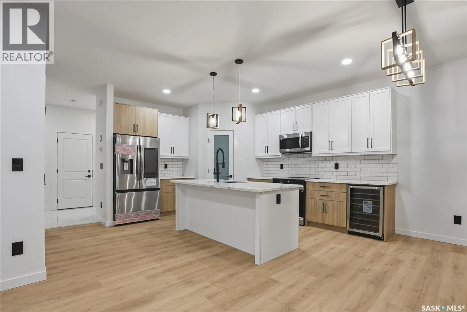 Welcome to refined living in the prestigious community of Brighton, one of Saskatoonâs most desirable and architecturally stunning neighbourhoods. This impeccably crafted 1,875 square foot executive two-storey home offers sophisticated design, premium finishes, and exceptional investment potential. The main level features an elegant open-concept layout anchored by a striking contemporary fireplace and a designer-inspired chefâs kitchen, complete with quartz countertops, upgraded stainless steel appliances, and a built-in beverage fridge â perfect for entertaining. Upstairs, youâll find a spacious bonus room, three beautifully appointed bedrooms, and a spa-inspired primary retreat featuring a luxurious five-piece ensuite with dual vanities, a walk-in glass shower, and a deep soaker tub. The double attached garage, concrete driveway, finished front landscaping, and private side entrance to the lower level elevate both convenience and long-term value. With the potential for a legal two-bedroom suite and eligibility for the Saskatchewan Secondary Suite Incentive, this home offers incredible income opportunity. Luxury. Functionality. Investment potential. This is elevated living in Brighton. Book your private tour today. GST/PST included in the purchase price with the rebate to builder. (id:27476)