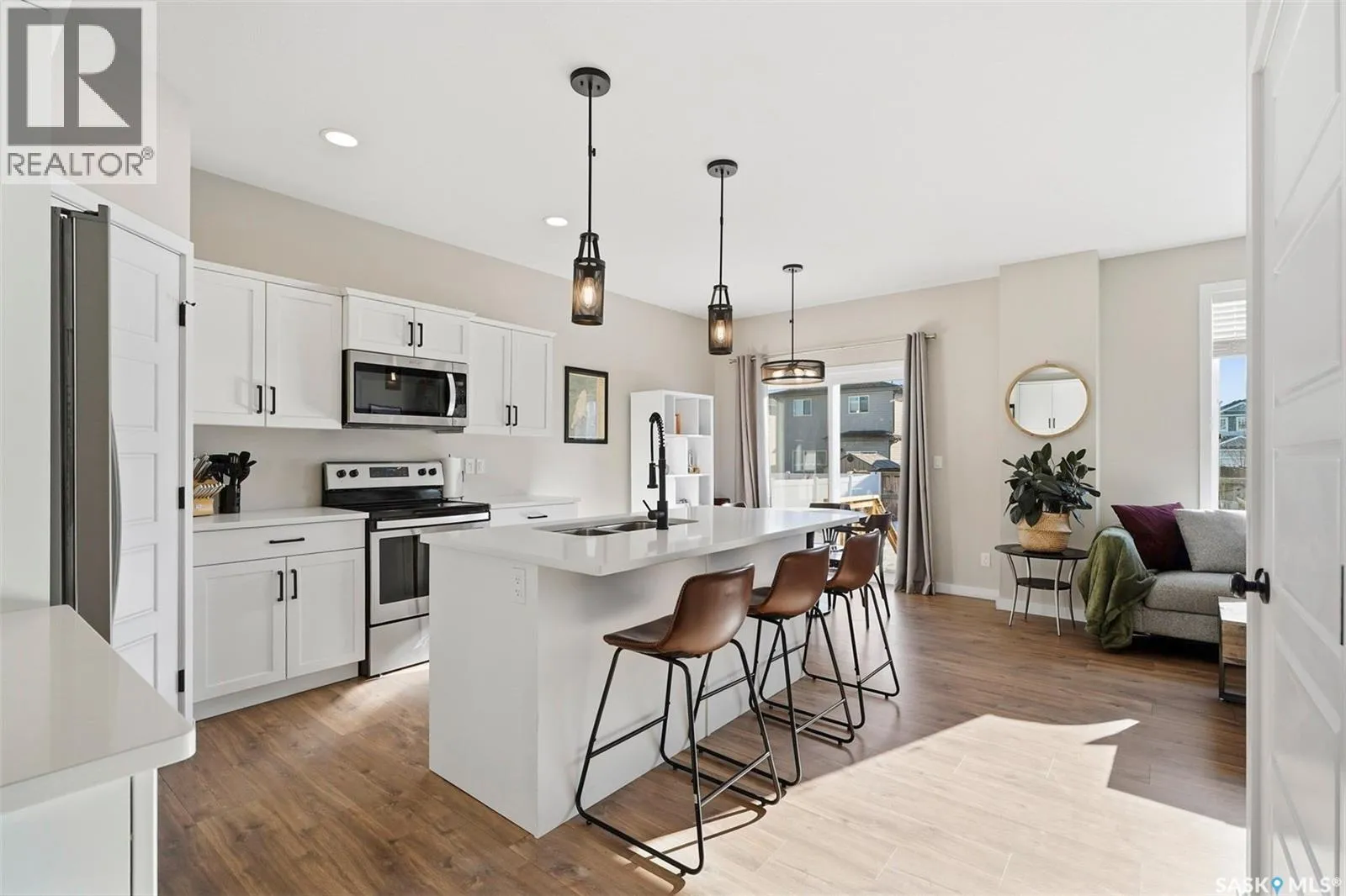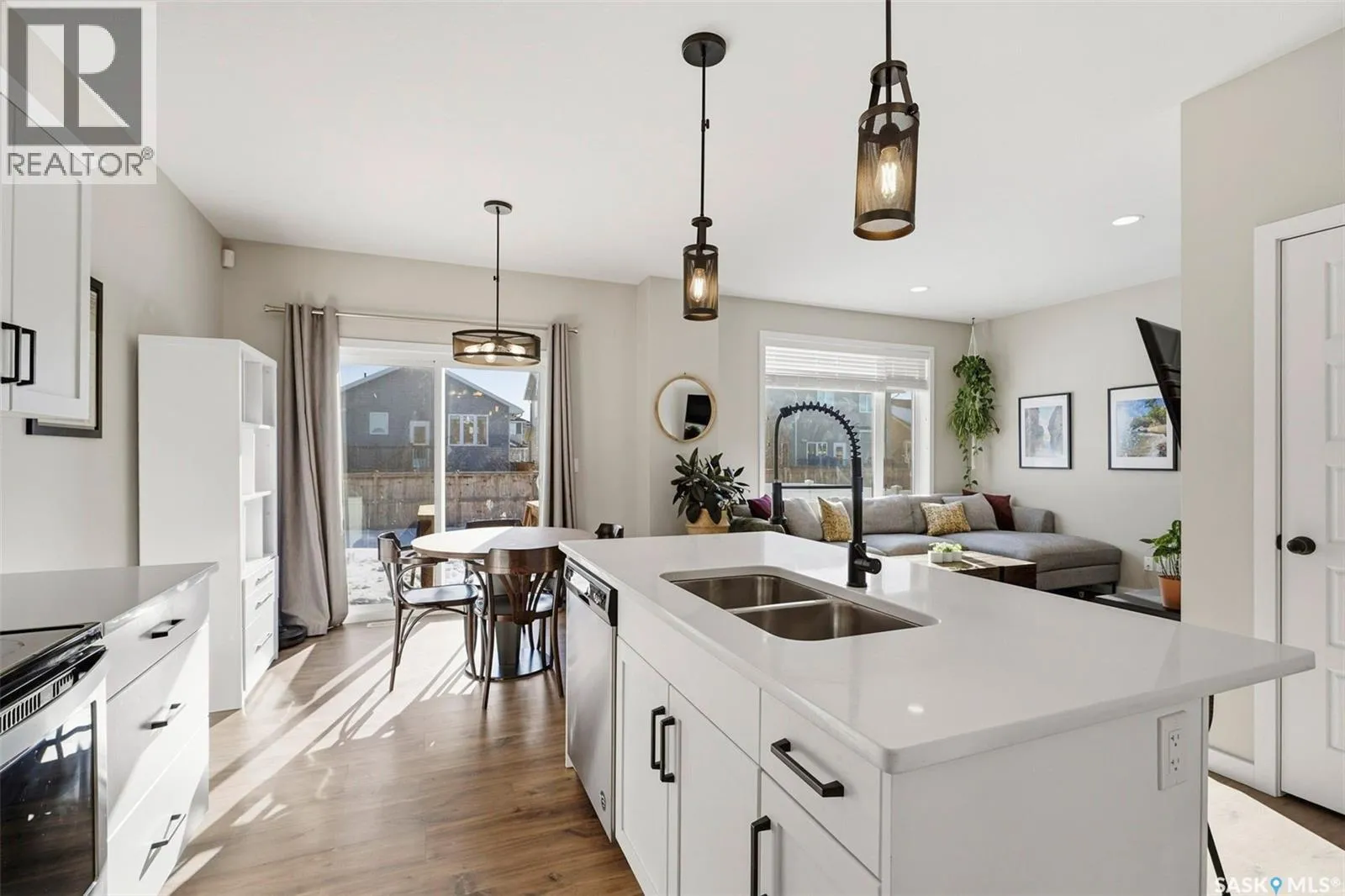 Located on a quiet crescent directly across from a small park, this modern home offers a functional and well-thought-out floor plan throughout. The main floor welcomes you with a large foyer and a two-piece powder room, leading into an open concept living space. The kitchen features white cabinetry, quartz countertops, a large island, stainless steel appliances, and a corner pantry. The dining and living room areas are bright and open with large windows offering views to the backyard. Upstairs you will find three bedrooms, including a primary bedroom with a walk-in closet and a four-piece ensuite. Two additional well-sized bedrooms, a four-piece bathroom, and conveniently located laundry complete the upper level. The unfinished basement provides a blank canvas ready for your own development. Outside, the fully fenced and landscaped backyard includes a patio, perfect for everyday use. The double attached garage offers additional storage space beyond parking for two vehicles. This home is move in ready with central air, all appliances and central va roughed in. (id:27476)