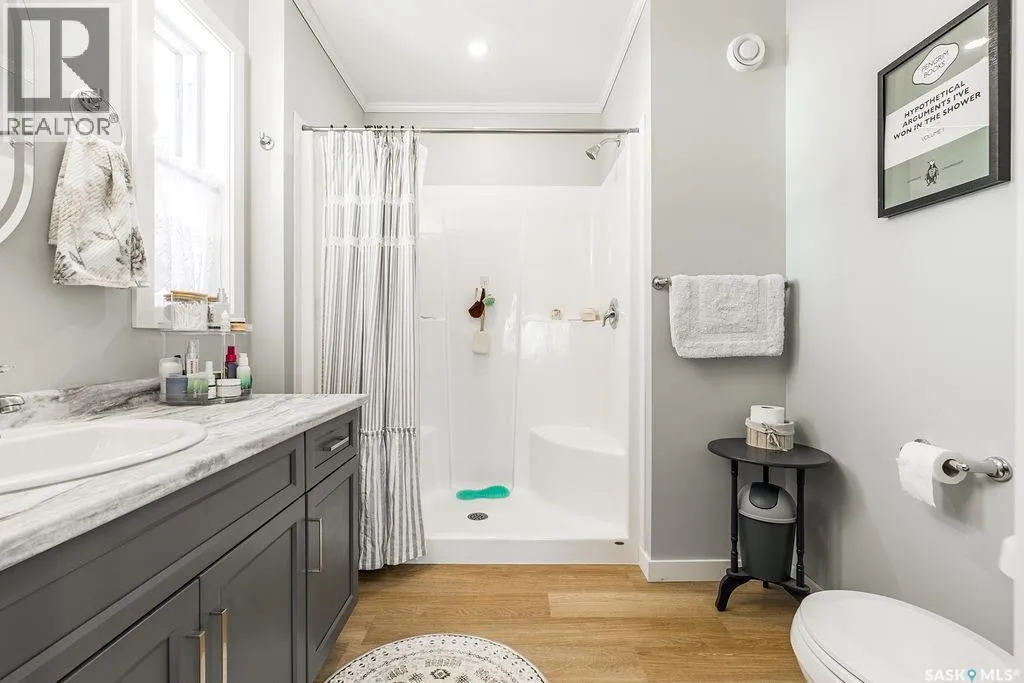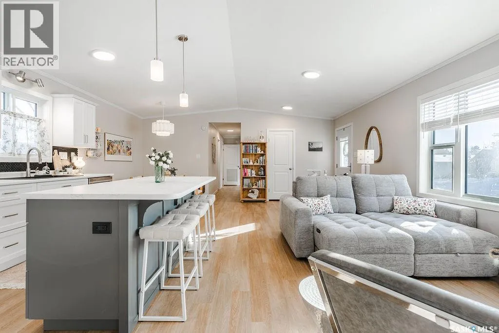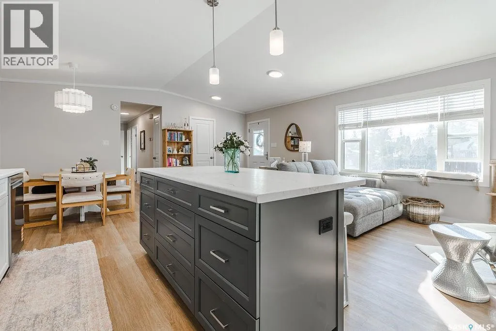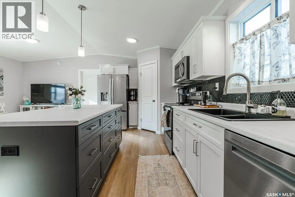 Welcome to 3605 Parkdale Road â a new 2025-built bungalow-style modular home on an owned city lot! Step inside to a bright and inviting open-concept main living area highlighted by a vaulted ceiling. The living room features oversized windows that flood the home with natural light and a cozy electric fireplace for added comfort. The stylish kitchen is thoughtfully designed with stainless steel appliances, a corner walk-in pantry, ample cabinetry, and a convenient eat-up island â perfect for casual meals or entertaining. The kitchen flows seamlessly into the dining area, making everyday living and hosting effortless. The spacious primary bedroom is privately situated and offers a generous walk-in closet along with a 3-piece ensuite bathroom. On the opposite side of the home â ideal for maximum privacy â youâll find two additional bedrooms and a full 4-piece bathroom. The functional mudroom includes laundry, built-in storage, and houses the mechanics, all conveniently located for practical everyday use. Situated on a large south facing corner lot (owned lot which means no lot/pad fees), this property also features a new single detached garage. Move-in ready, under warranty and built for modern lifestyles, this Grandeur built home is a fantastic opportunity for comfortable, low-maintenance ownership. (id:27476)