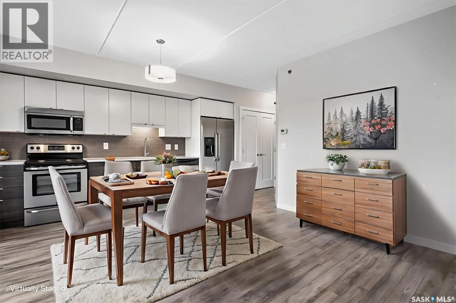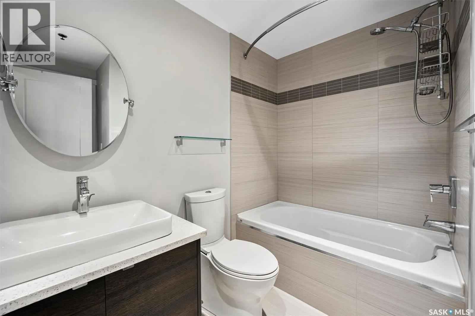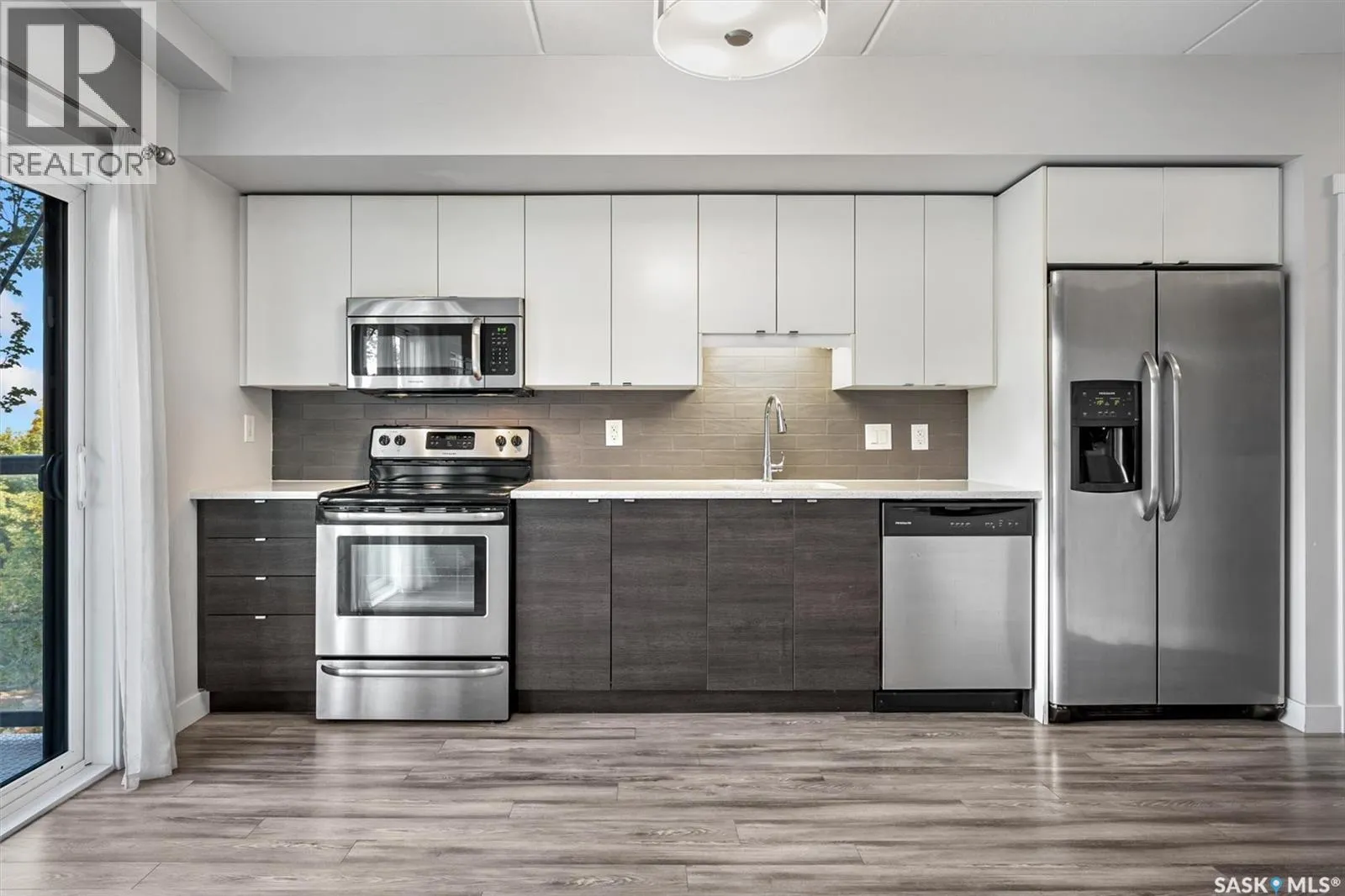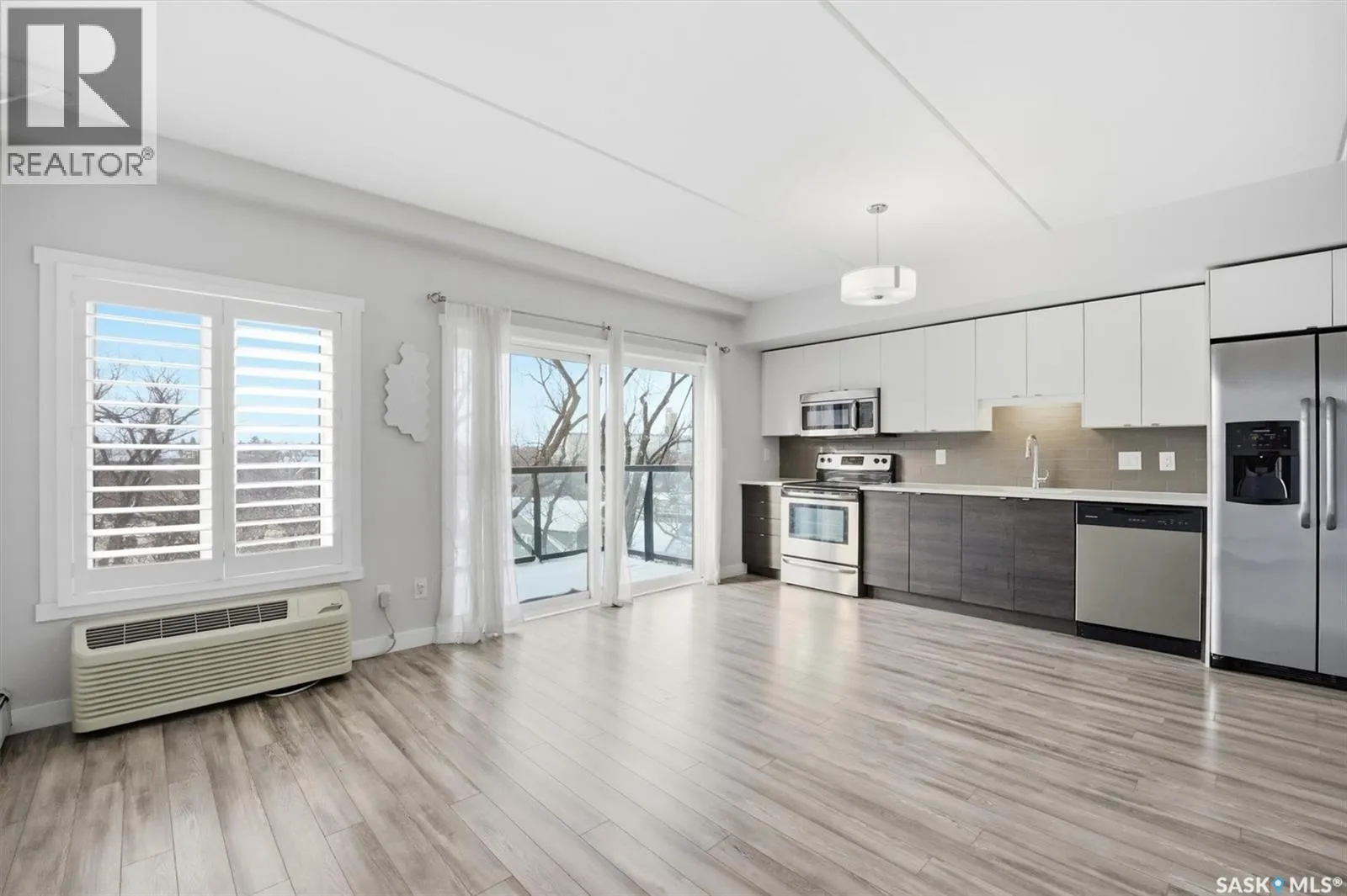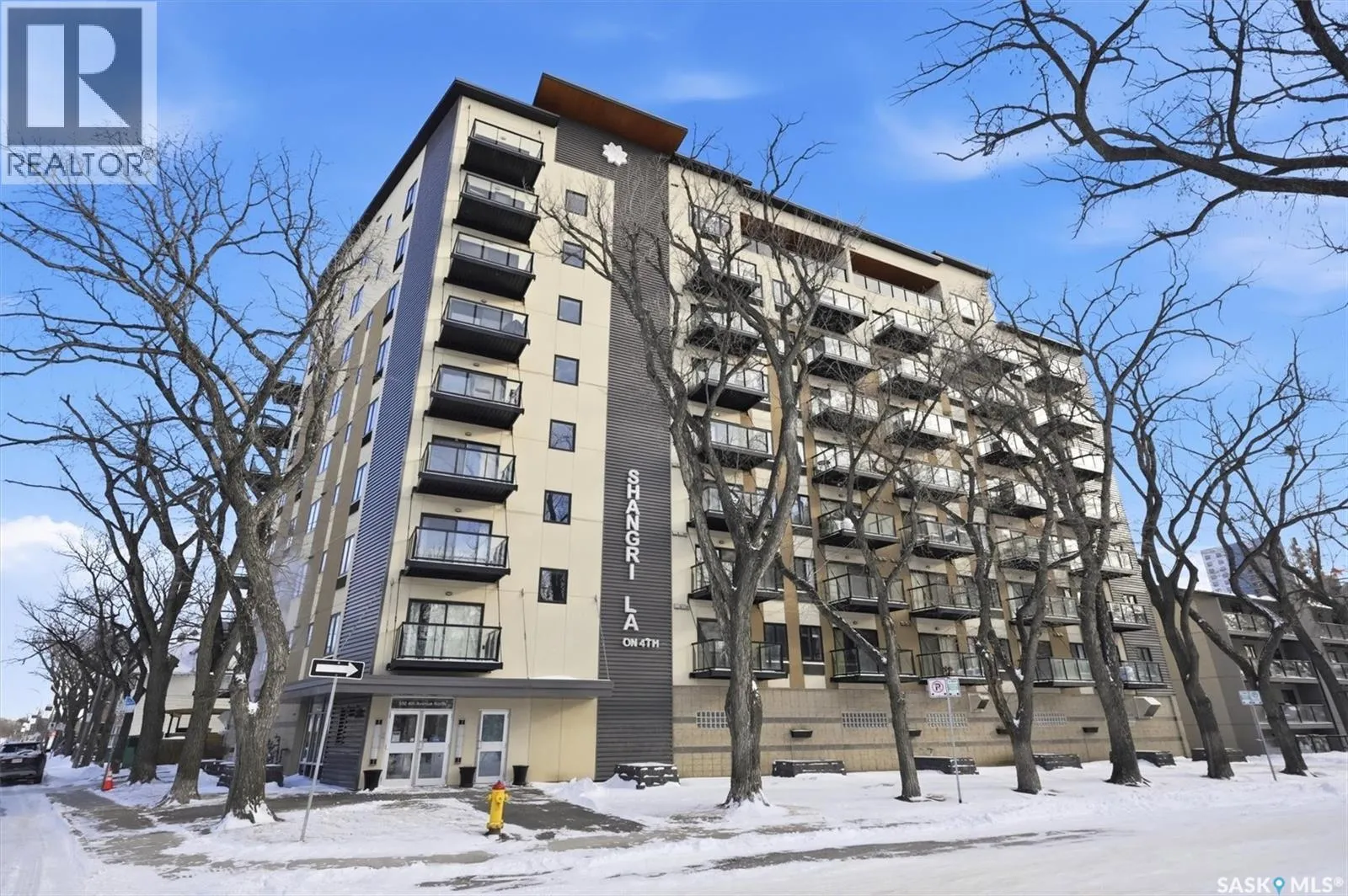 Welcome to The Shangri-La on 4th Ave. This stylish 1 bedroom, 1 bathroom condo is perfectly situated in the heart of Saskatoon. The bright impeccably maintained unit features a functional open concept layout. Enjoy the convenience of a built-in computer workspace, modern kitchen, upgraded stainless steel appliances, quartz countertops and tile back splash - ideal for both everyday living and entertaining. You are close to City Hospital, University of Saskatchewan, Royal University Hospital, downtown shops, restaurants and city transit. What a great location offering the best of urban living with easy access to nature. Set in a soundly constructed concrete building, residents can enjoy premium amenities including a rooftop patio with BBQ area, an amenities room with fitness equipment, and the added convenience of one underground parking stall. Donât miss this incredible opportunity to own in one of Saskatoonâs most sought after locations. Book your showing today with your favorite Realtor! (id:27476)