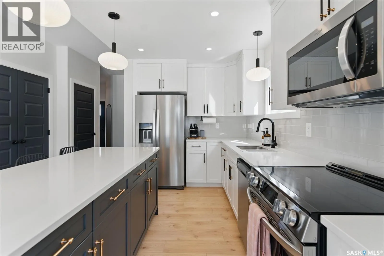 Beautiful fully developed 1560 sq. ft. two story home in the desirable Aspen Ridge. Features 4 beds and 3.5 baths, beautiful kitchen with quartz counter tops. Throughout you will find upgrades such as lighting, mirrors, feature walls and painted doors in a warm inviting navy blue that brings calm and peace to all the spaces. The main floor includes trendy accents complete with ceiling height cabinetry, with a beautiful tile backsplash. The living room features a warm inviting fireplace with an open concept design. The second level you will be greeted with a bonus room with built in cabinetry, perfect for family movie nights! Second floor also has an inviting master bedroom with walk in closet and large bathroom with double sinks. In addition you will find two additional bedrooms, bathroom and laundry room. The basement has been professionally completed with matching features as the rest of the home. The basement consists of a living room space, full bath, large storage closet with sliding barn doors and a unique bedroom that has a walk in closet with an additional full size washer and dryer making this a perfect space for a teenager or in laws!! The back yard has a fully manicured yard completely landscaped (sod in back yard was professionally installed after photos were taken in spring) and fenced, including shed, large two tier deck, pergola, fire pit, natural gas hookup for bbq. Additional feature is a separate gated area that can be used as a dog run or storage. Front yard is fully landscaped with underground sprinklers. The home features an attached heated double garage with finished interior that includes ceiling storage. This home is fully developed and in brand new condition. Home was recently professional appraised at the asking value and documents shown upon request. Includes all kitchen and laundry appliances, window coverings, central air, pergola, shed, and fire pit. Furnishings in the home are negotiable as well agent commission. (id:27476)