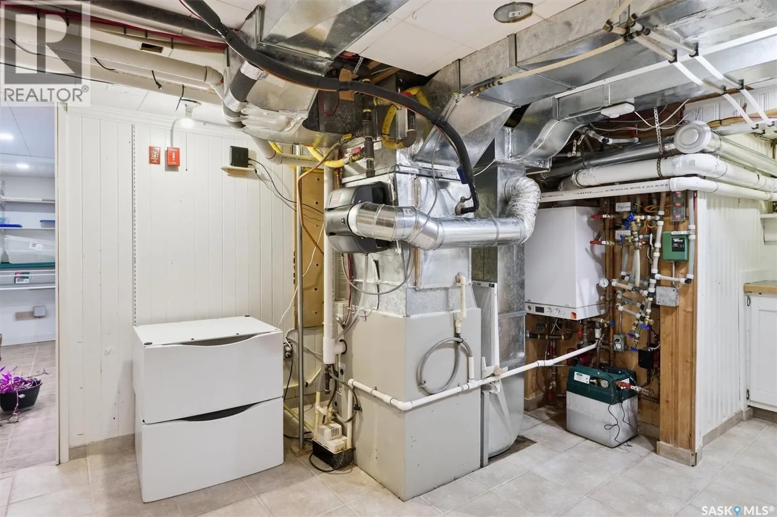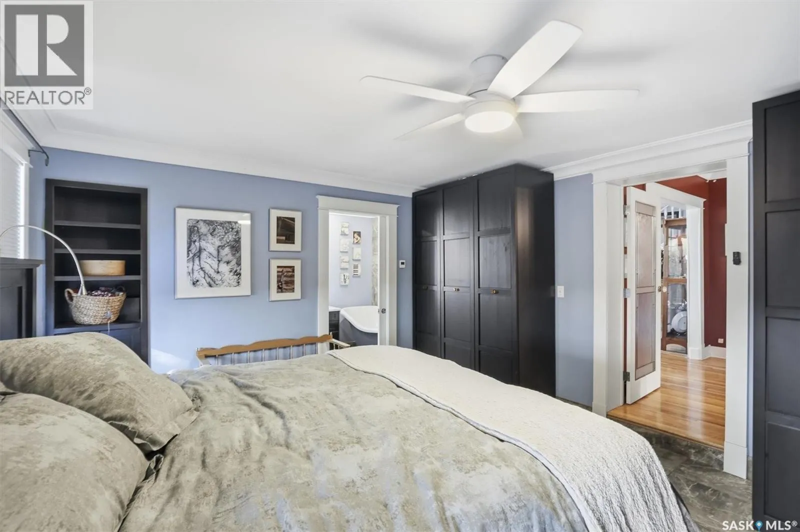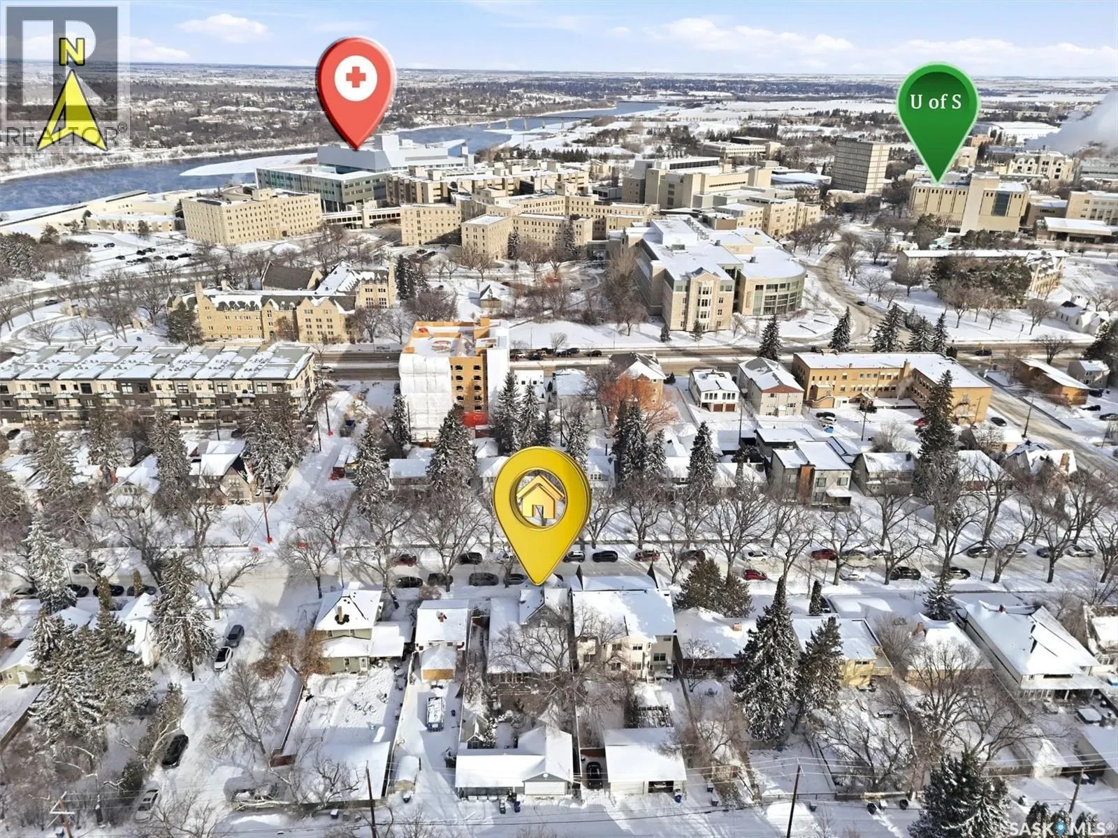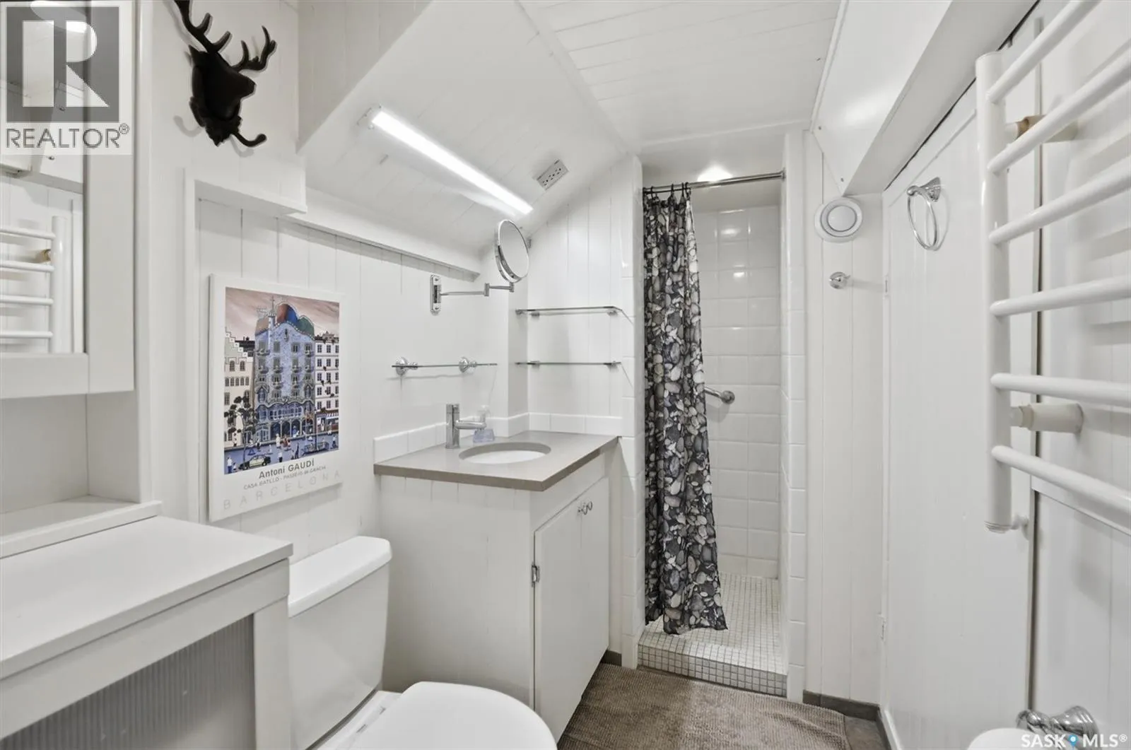 This home is a masterclass in blending timeless character with modern luxury, offering over 2,700 square feet of meticulously renovated living space across three finished levels. From the moment you step inside, the warmth of years is evident, starting with an expansive open floor plan that flows naturally into an incredible great room defined by a wall of windows and a cozy gas fireplace. The heart of the home is undoubtedly the gourmet kitchen, a chefâs dream outfitted with an elite appliance package including Sub-Zero refrigeration, a Wolf gas range, Miele steam and wall ovens, a Bosch dishwasher and a Waterford wood-burning stove. A ten-foot marble island serves as the center of the room. The main floor is designed for both grand entertaining and private retreat, featuring a formal dining room and a cozy TV room, both anchored by beautifully refinished original maple hardwood floors. The primary suite is conveniently located on this level featuring loads of closet space, a spa-like full bath, equipped with a walk-in shower, and a classic clawfoot tub. Practicality meets style in the mudroom, 1/2 bath and laundry area. Ascending to the second level, you will find three well-appointed bedrooms and a full bath, while the third level opens up into a massive bonus room perfect for a home office, gym, or play area. The lower level includes a modern three-piece bathroom alongside ample storage and utility space. Stepping through either of the two sets of garden doors leads you into a south-facing backyard oasis that feels worlds away from the city. Beautifully landscaped, 50 ft. lot with lush perennials, a tranquil fish pond, and a functional B.C. Greenhouse, a patio area features a wood-burning fireplace. The property is completed by a double garage that includes a heated workshop or studio. Located in an absolute prime district, the rare opportunity to walk to the University of Saskatchewan, the vibrant Broadway area, and the downtown core. (id:27476)