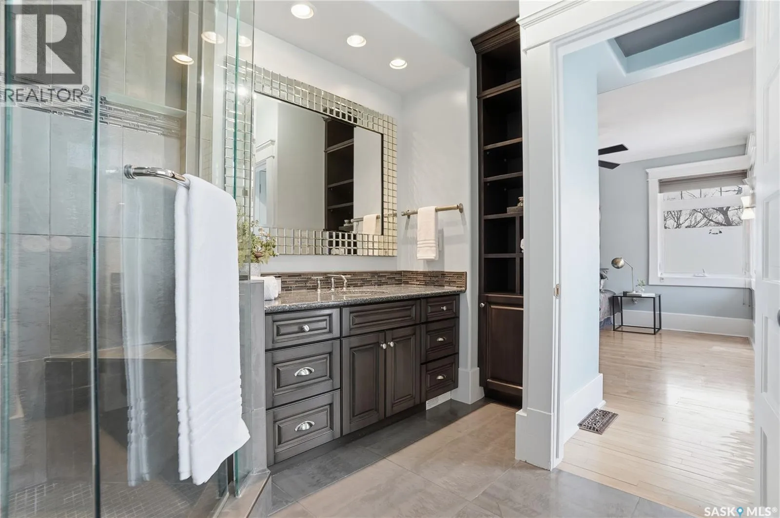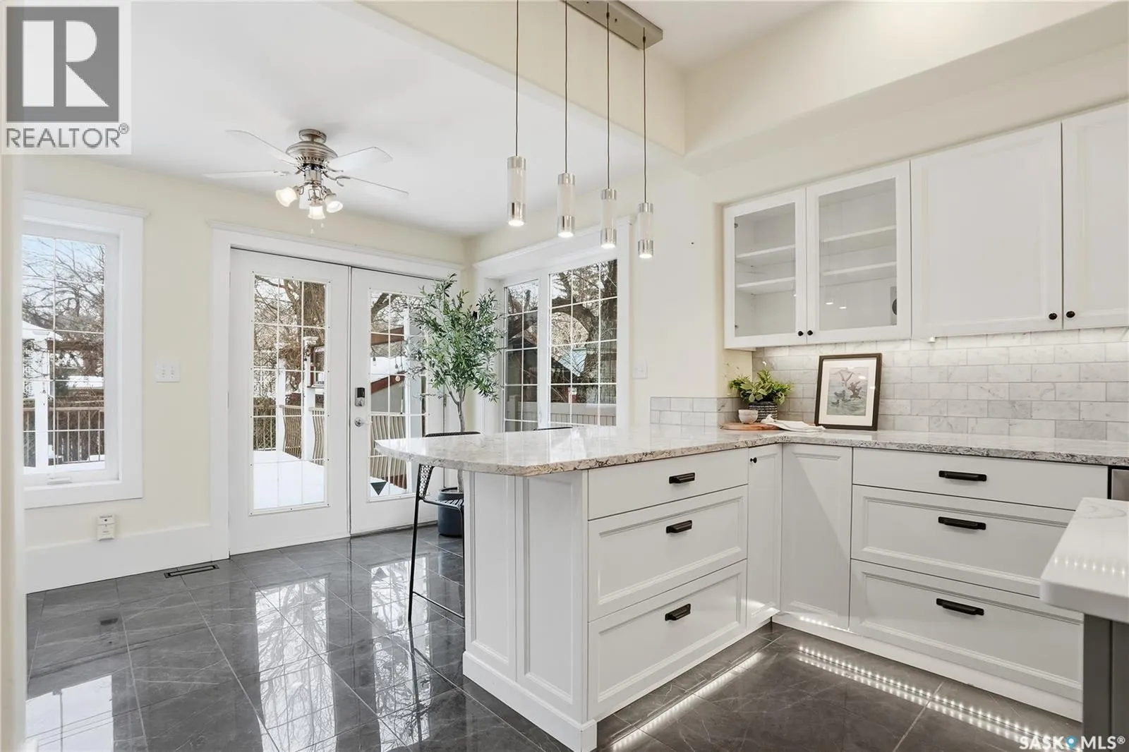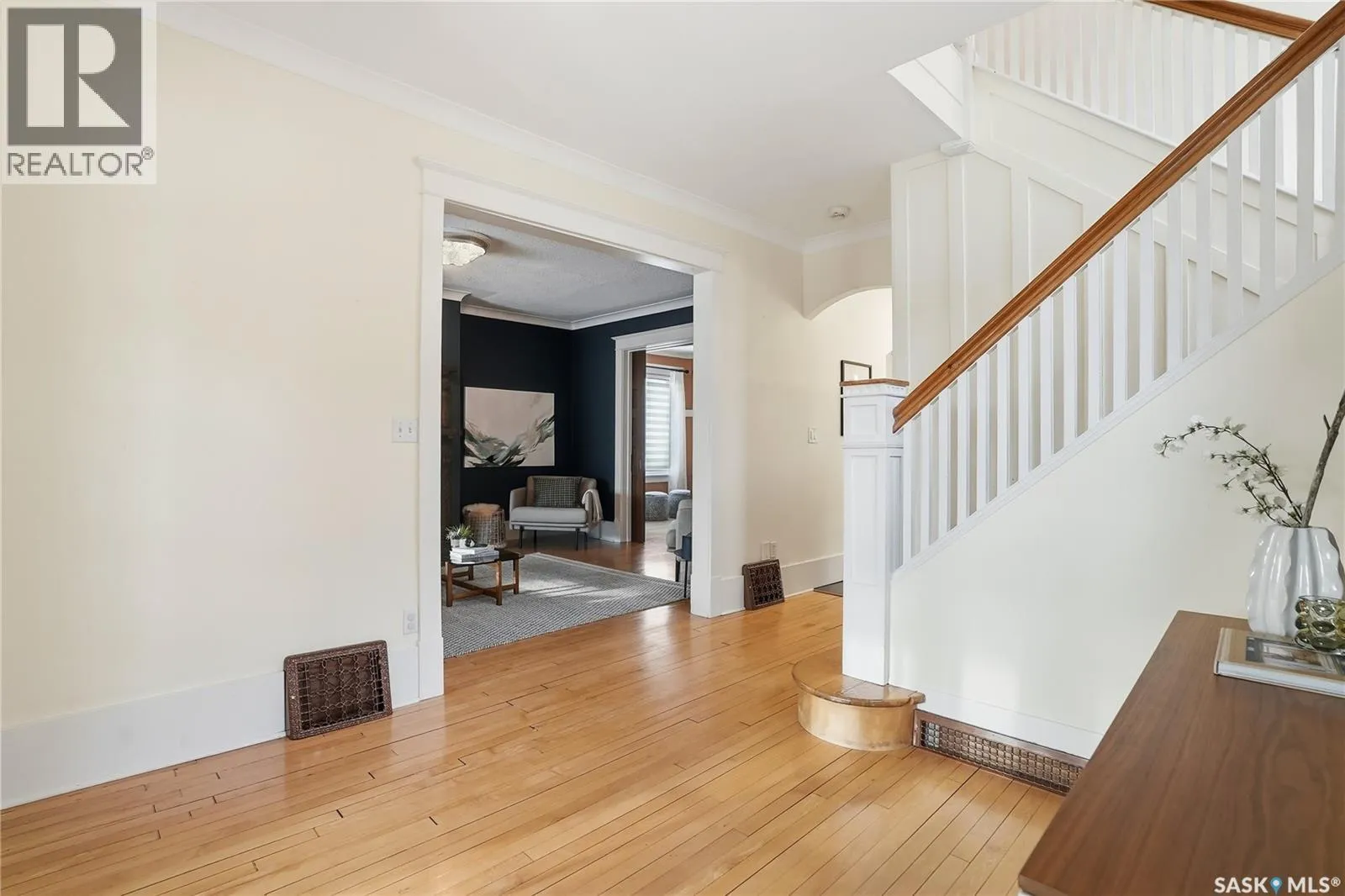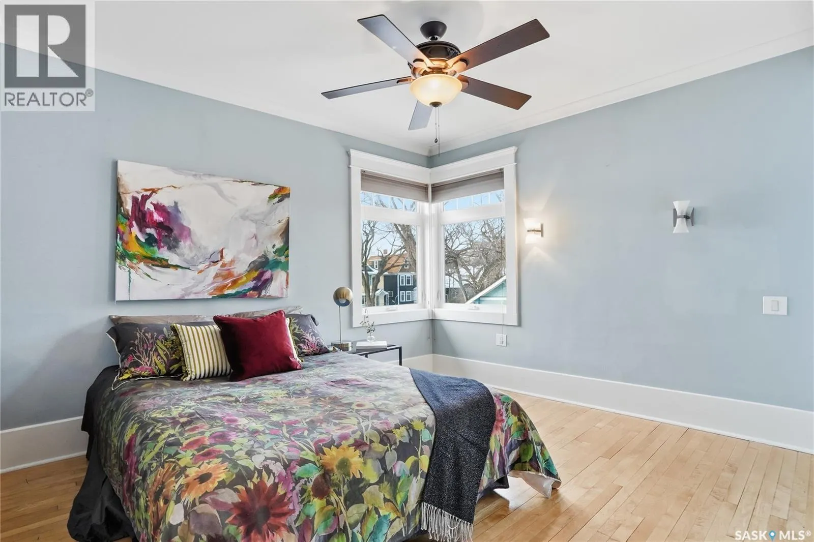 Donât miss this INCREDIBLE character home in one of Saskatoonâs most desirable neighbourhoods! A stately family home with a fully developed basement with separate entry. This property exudes pride of ownership with charm and professional updates throughout. Enter into the main floor to find a welcoming sunroom and foyer, living room with wood burning fireplace, and a formal dining with a bay window. At the heart of the home is a chefâs DREAM KITCHEN- spacious and beautifully appointed with quartz countertops, stainless appliances, and a sit-up eating area that opens onto a sitting room, overlooking a large deck and private yard. A 2-pc bath completes the main. Upstairs, youâll find 3 bedrooms: a primary suite with an ensuite and a charming private deck of the master. Two additional lrg bedrooms and a newly renovated 3-piece bathroom complete 2nd flr. Large windows flood every room with natural light, highlighting the significant character. Extensive renovations and upgrades have been meticulously completed recently, blending heritage with modern class. The unique dev basement offers a modern living room, lounge and 1 bed layout with a sep entrance, 4-pc bath, 2x laundry, kitchenette, and a family room w/ gas fireplace â ideal for additional cash flow. The oversized, heated att garage includes a large attic storage area above. The front yard is low maintenance with a stamped concrete driveway providing parking 3 vehicles. The private backyard will impress w/manicured grounds: a two-tiered deck, garden boxes, artificial turf, curbing, and climbing vines. In total, there are three decks, including a covered front deck and the private balcony off the master. Upgrades include: furnace, hot water heater, shingles, garage, decks, kitchen, two bathrooms, basement development, many new windows, updated exterior, and driveway â the list goes on! This gem is ideally situated within walking distance to the river, downtown, U of S, and all hospitals, the location is unbeatable! (id:27476)