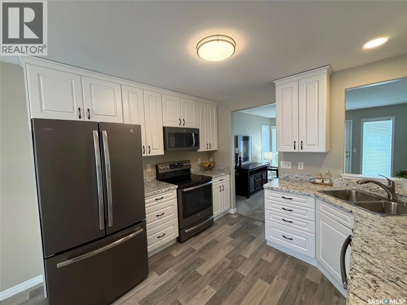 Welcome to ArborGlen Estates â Peaceful Living Backing Arbor Creek Park Unit 27 is the perfect place to begin your next chapter. Located in a gated community with minimal yard maintenance (handled by the HOA), this 1,198 sq ft bungalow offers comfort, quality, and convenience in the heart of Arbor Creek. Inside, youâll find a bright, open-concept layout with vinyl plank flooring flowing from the foyer into the spacious kitchen and dining areas. The kitchen features soft-close cabinetry and high-end stainless steel appliances â stove, fridge, built-in dishwasher, and microwave exhaust fan. A large pantry includes laundry hookups for those who prefer main floor laundry. The living room is filled with natural light thanks to multiple windows and garden doors that lead to a private deck backing green space. The deck is built with composite decking, acrylic glass panels, regal railing, and a natural gas BBQ hookup â perfect for relaxing or entertaining. The primary bedroom easily fits a king-sized bed and includes dual closets and a 3-piece ensuite with a spacious vanity. A second bedroom on the main floor is ideal for guests. From the front foyer, enjoy direct access to a 20â x 22â heated double attached garage, adding everyday convenience. Downstairs, the fully developed lower level offers a large family room, a den/office, a stylish 3-piece bath, ample storage, and a utility room with a newer furnace, hot water heater, and air exchanger. Additional Highlights: ⢠Central air conditioning ⢠Central vacuum ⢠Quick access to Arbor Creek walking paths ⢠Close to University Heights and Brighton amenities ⢠Recent upgrades: shingles, furnace, water softener, flooring, garage overhead natural gas heater This one-owner home has been meticulously maintained and thoughtfully updated. A rare opportunity in ArborGlen Estates â turn-key ready for you to move in and enjoy. (id:27476)