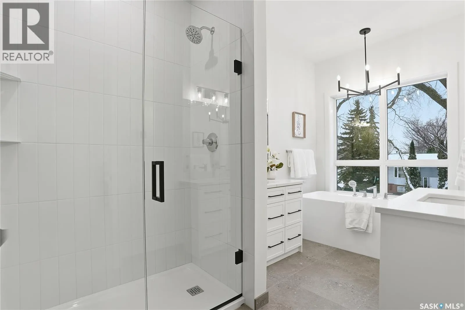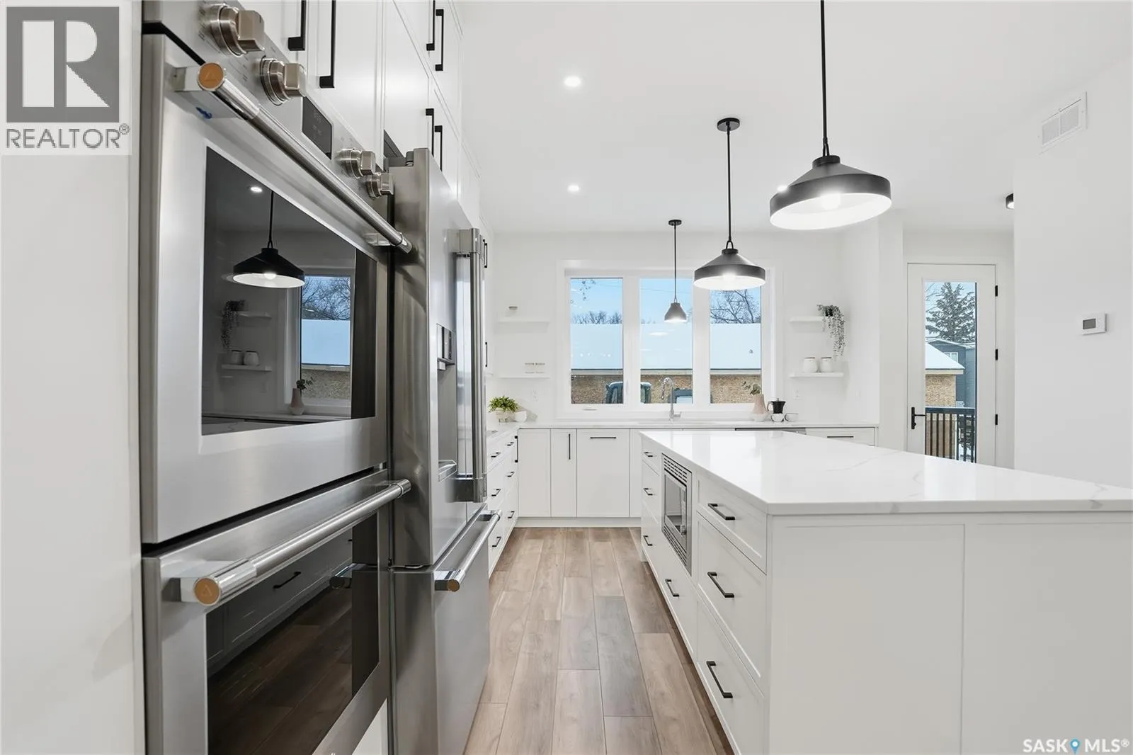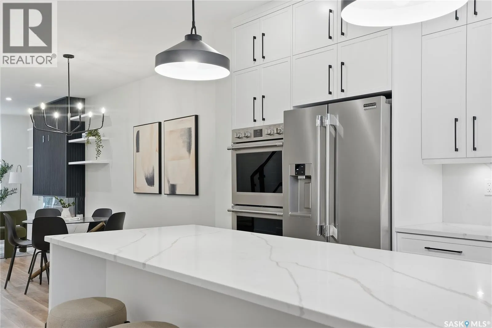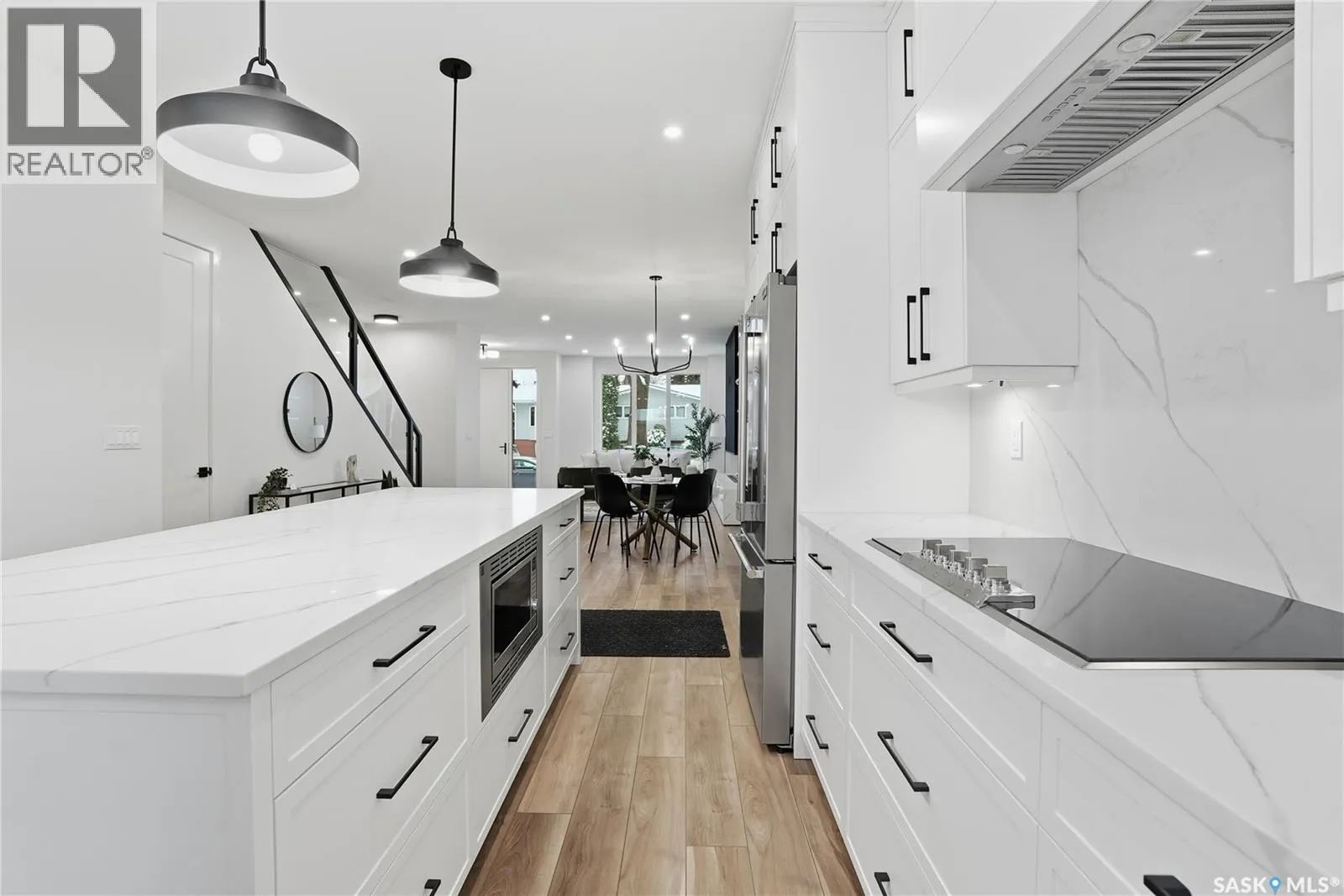120152348 Welcome to 1137 13th Street East, a stunning, newly built home in the heart of Varsity View offering 1,789 sq. ft. of refined two storey living space, plus an 891 sq. ft. basement with a separate side entrance for a future secondary suite. This 3-bedroom, 2.5-bath home showcases high-end finishes throughout, including quartz countertops, Frigidaire Professional appliances with built-in wall ovens and a 36" induction cooktop, and premium fixtures. The spacious primary suite features a luxurious ensuite with a soaker tub, custom tile shower, and electric in-floor heating. Designed for both comfort and performance, the home features 9â ceilings on both the main and basement levels, thickened exterior walls with R28 insulation, and insulated interior walls to enhance privacy and reduce sound transfer. The basement includes in-floor hydronic heating for maximum winter comfort, and the main living area is bright and airy thanks to extra-large triple-pane windows. Outside, enjoy a rear 10' x 10' deck with black aluminum railings, James Hardie fiber cement siding and stucco exterior, and a detached 22x24 double car garage. This home combines elegance, energy efficiency, and flexibilityâperfect for modern living. Donât miss your chance to make it yoursâcontact your REALTOR® today and ask about the secondary suite incentive program (id:27476)