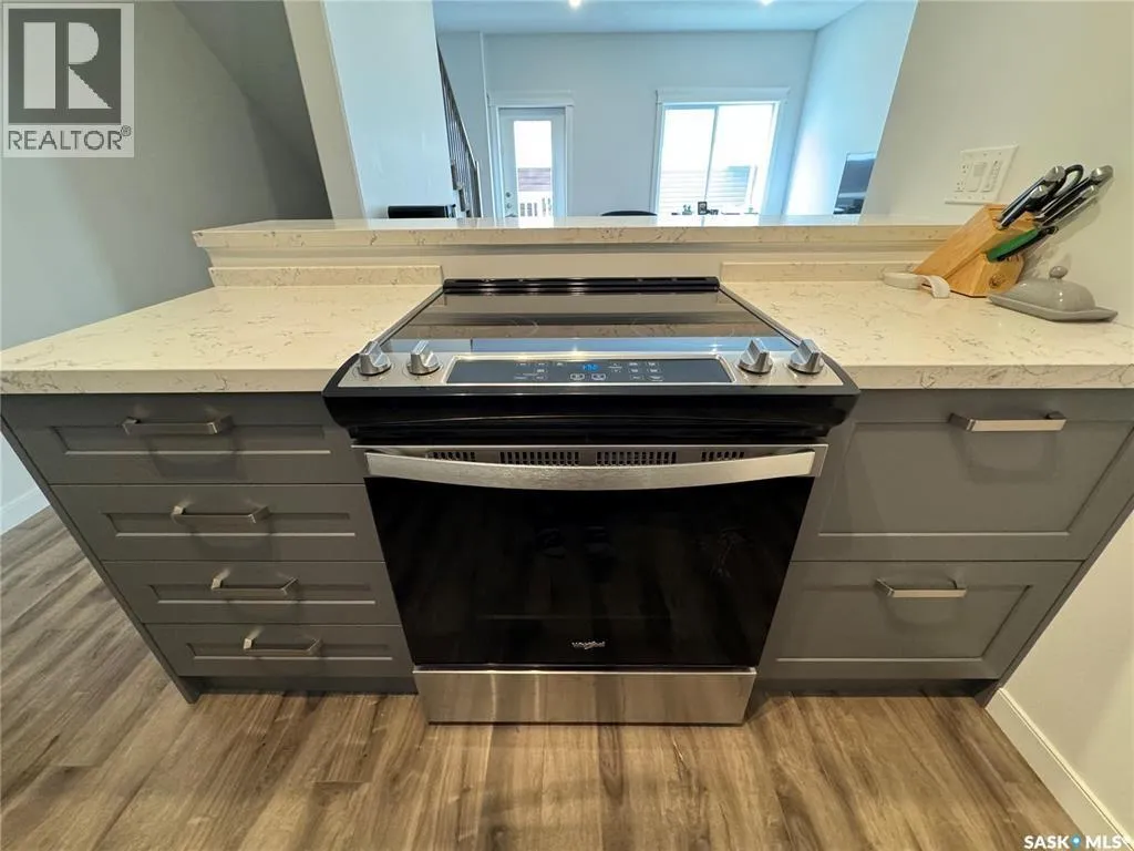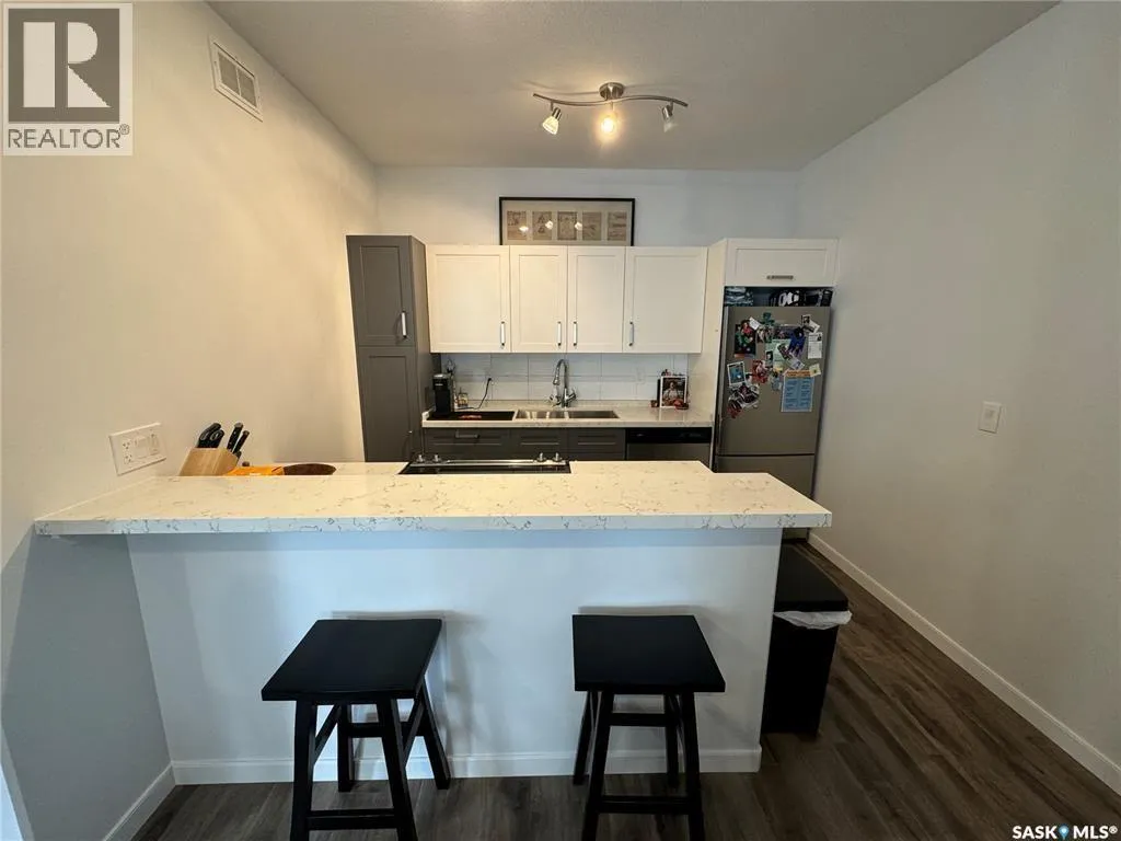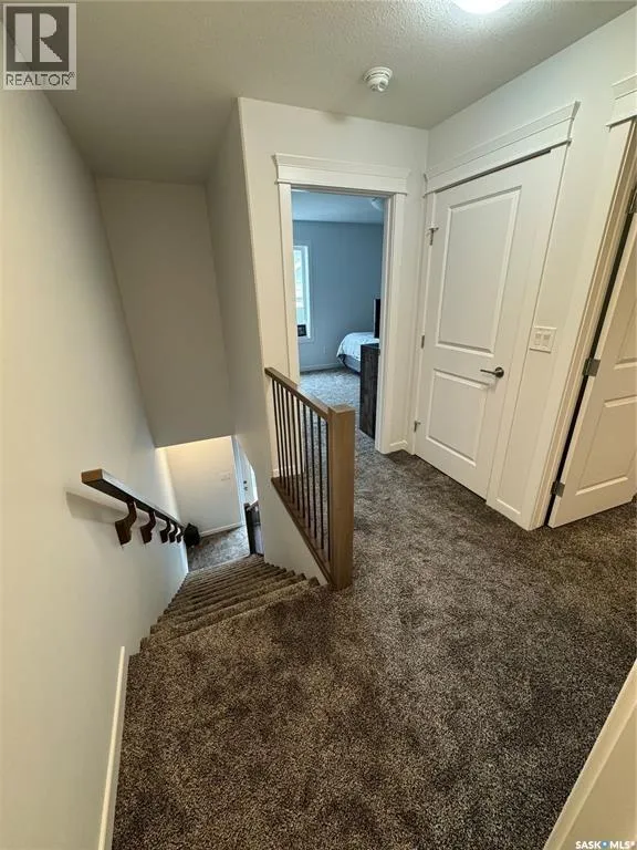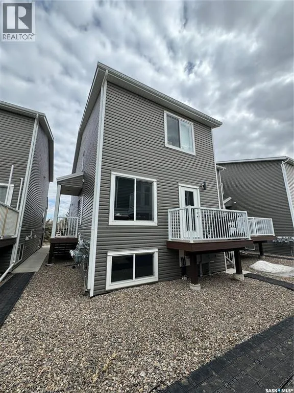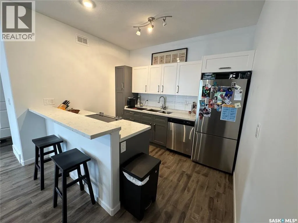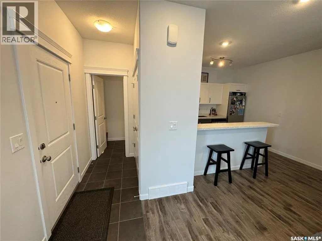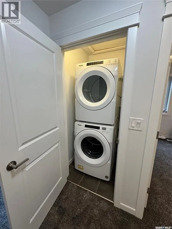 Clean, Modern Townhouse-Style Condo Offering Exceptional Value Welcome to this beautifully finished townhouse-style condo with quick access to Riversdale, the South Saskatchewan River, and minutes from Downtown. Combining modern design, functionality, and outstanding value, this home is perfect for first-time buyers, professionals, or investors. The main floor showcases a stylish two-tone kitchen with soft-close cabinetry, white quartz countertops throughout, stainless steel appliances, and energy-efficient recessed LED lighting. Premium Chestnut millwork adds warmth and character to the custom staircase railings. Upstairs features two spacious bedrooms, including a large primary with a walk-in closet and custom organizer, along with a contemporary three-piece bathroom and convenient stacked washer and dryer. The basement is neatly roughed-in and ready for future development, making it easy to add additional living space and a third bathroom leaving room for even more future opportunity to build equity and enhance long-term value. This is a fantastic opportunity to own a move-in ready home in a very central location of Saskatoon. (id:27476)
