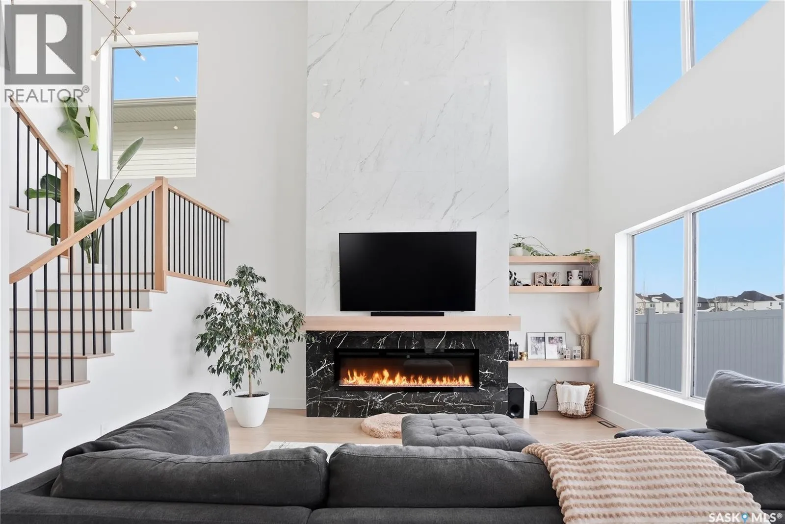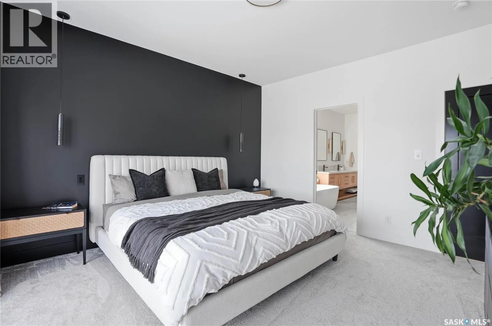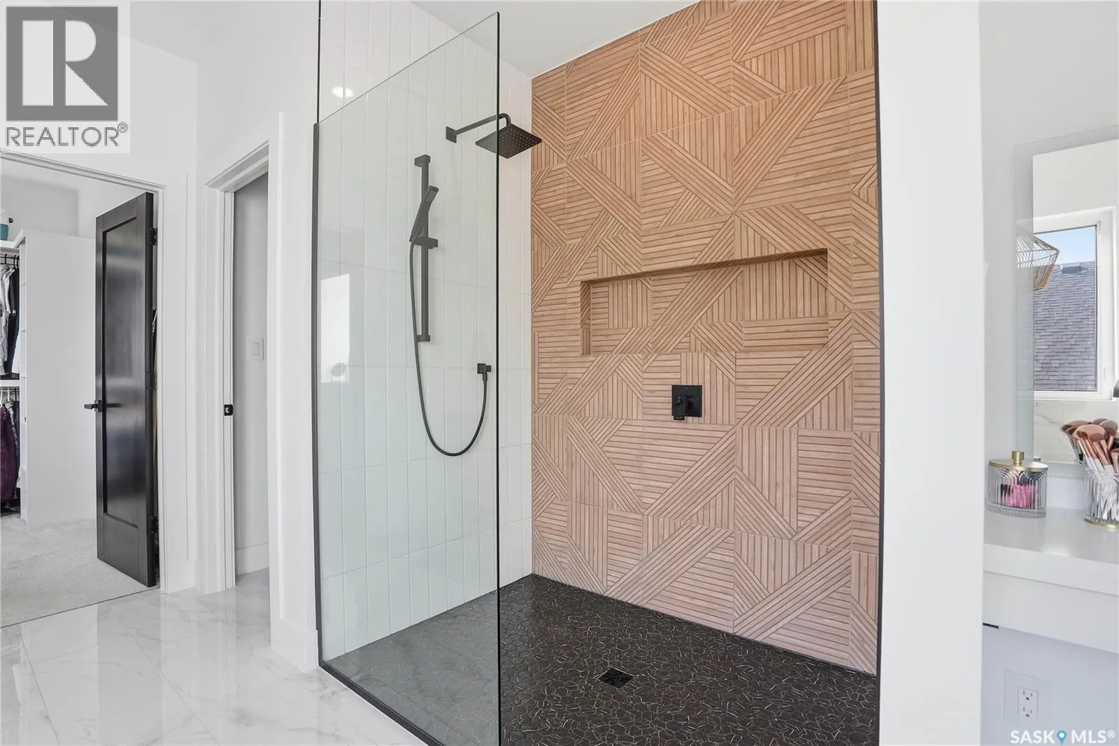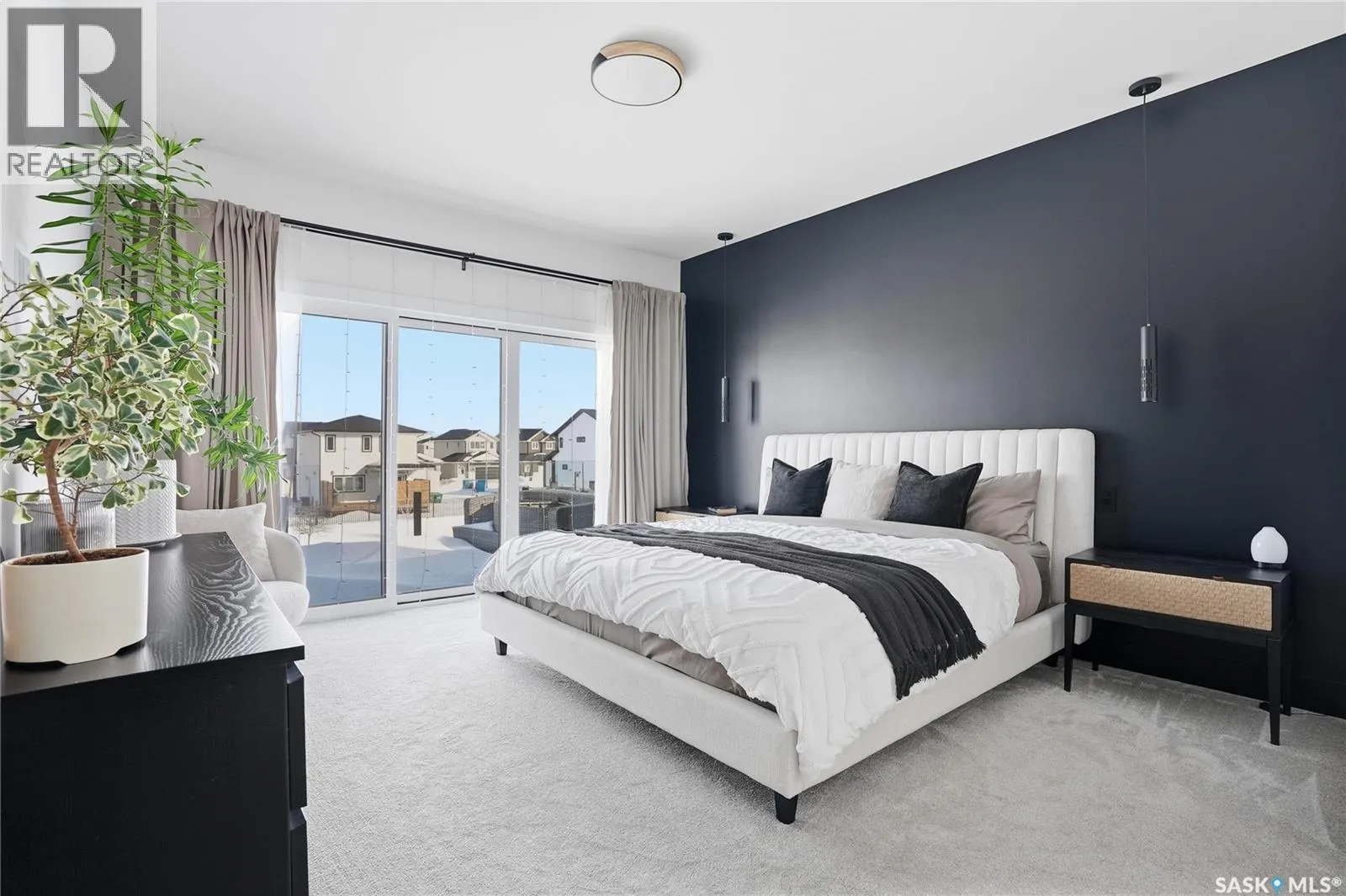 Welcome to this exceptional two-storey home in Aspen Ridge, where luxury meets peaceful lifestyle. Offering 4 bedrooms, 4 bathrooms, and a office / den this beautifully designed residence backs directly onto a scenic walking trail, providing added privacy and peaceful views right from your backyard. The main floor showcases a bright, open-concept layout with large windows that flood the home with natural light. The modern kitchen features stylish cabinetry, a spacious island, and seamless flow into the dining, pantry and living areas â perfect for both everyday living and entertaining. Step outside to enjoy the backyard setting with direct access to the walking paths just beyond your fence. Upstairs, the primary suite is a true retreat. Enjoy your morning coffee or evening unwind on your private deck off the master bedroom, overlooking the green space. The 5-piece ensuite offers dual sinks, a soaker tub, separate shower, and generous space to relax and recharge. Flowing through to the closet of your dreams. Additional bedrooms are well-sized and complemented by thoughtfully designed bathroom, providing comfort for family and guests alike. Fully developed basement with wet bar, large family room, bed room and its own bathroom. Perfect for family or entertaining. The heated garage complete with a built-in dog wash station â perfect for cleaning up after outdoor adventures along the nearby trails. With its functional layout, premium features, and unbeatable location backing green space, this home offers the perfect blend of comfort, convenience, and upscale living in one of Saskatoonâs most desirable neighbourhoods. (id:27476)