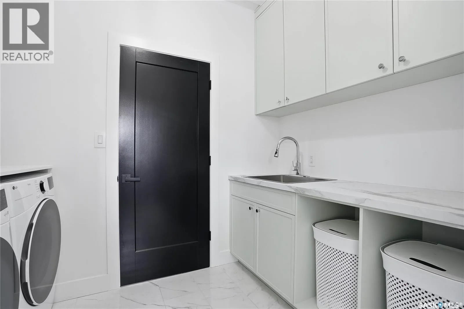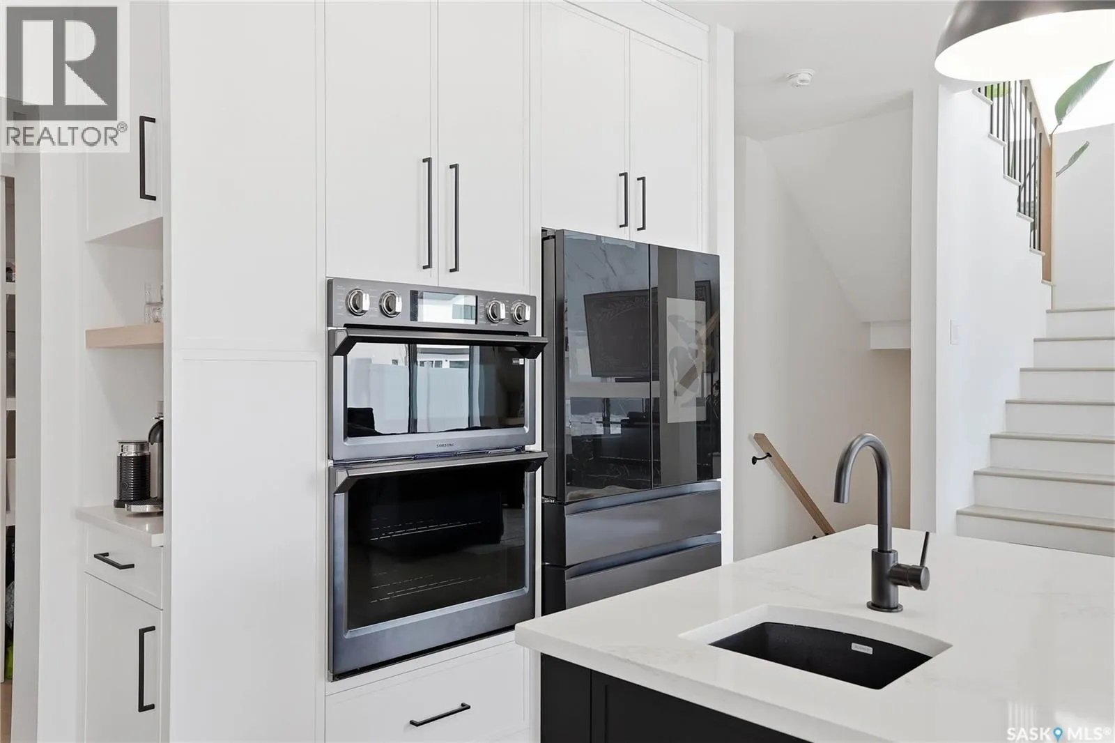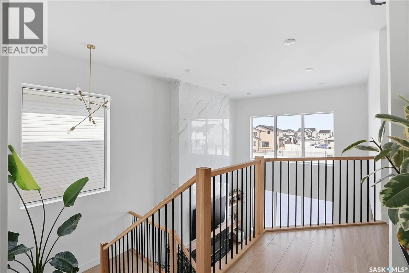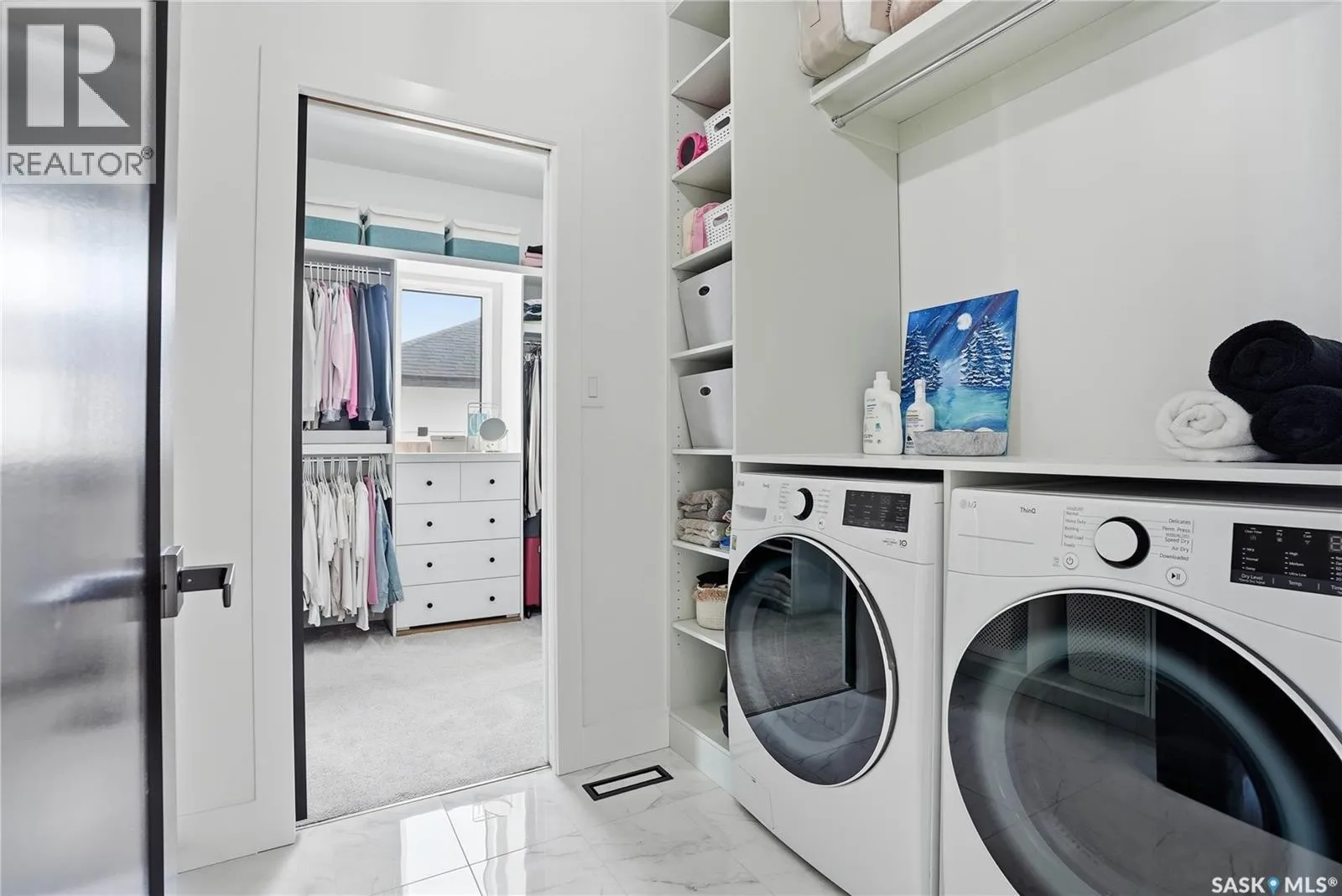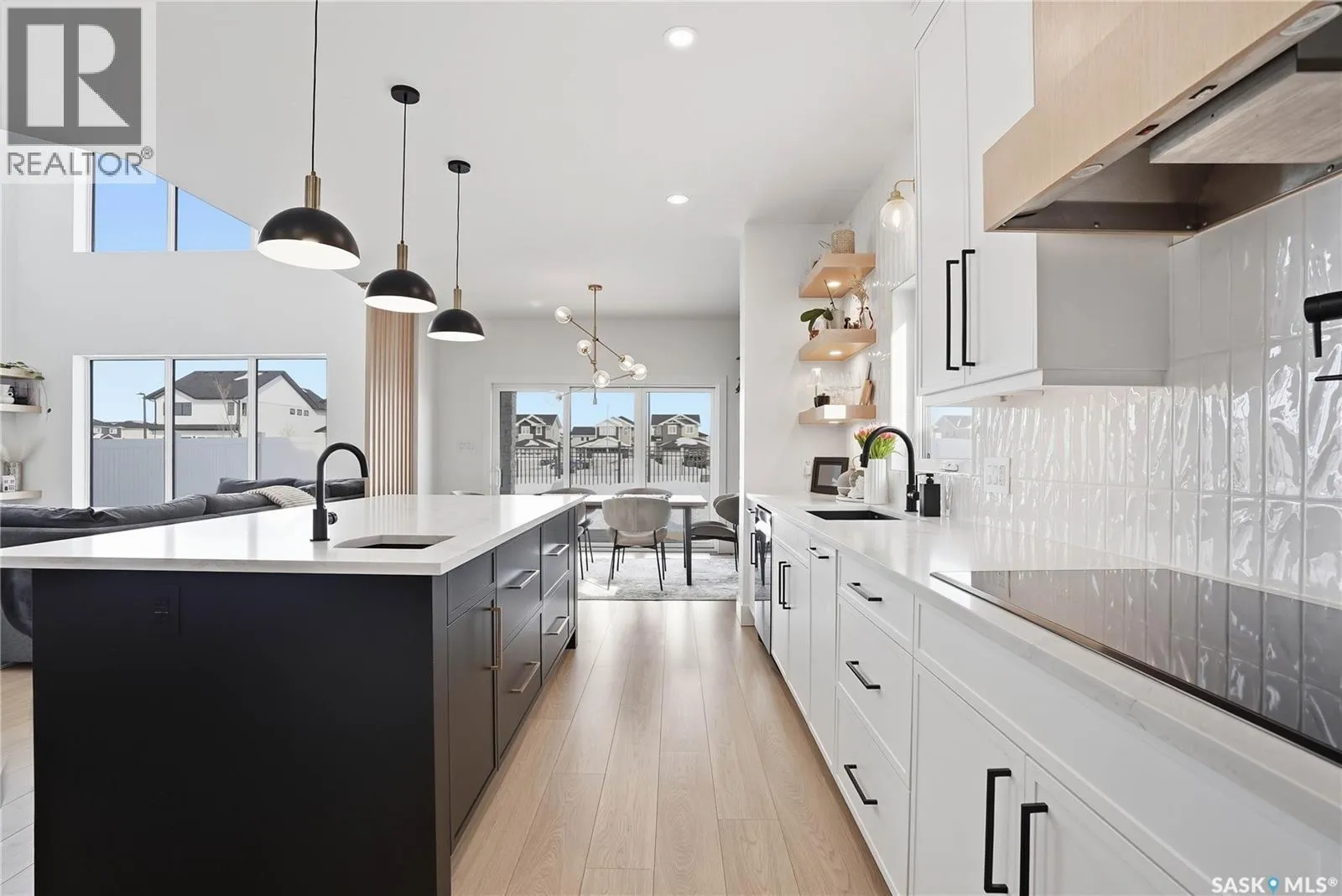 Welcome to this exceptional two-storey home in Aspen Ridge, where luxury meets peaceful lifestyle. Offering 4 bedrooms, 4 bathrooms, and a office / den this beautifully designed residence backs directly onto a scenic walking trail, providing added privacy and peaceful views right from your backyard. The main floor showcases a bright, open-concept layout with large windows that flood the home with natural light. The modern kitchen features stylish cabinetry, a spacious island, and seamless flow into the dining, pantry and living areas â perfect for both everyday living and entertaining. Step outside to enjoy the backyard setting with direct access to the walking paths just beyond your fence. Upstairs, the primary suite is a true retreat. Enjoy your morning coffee or evening unwind on your private deck off the master bedroom, overlooking the green space. The 5-piece ensuite offers dual sinks, a soaker tub, separate shower, and generous space to relax and recharge. Flowing through to the closet of your dreams. Additional bedrooms are well-sized and complemented by thoughtfully designed bathroom, providing comfort for family and guests alike. Fully developed basement with wet bar, large family room, bed room and its own bathroom. Perfect for family or entertaining. The heated garage complete with a built-in dog wash station â perfect for cleaning up after outdoor adventures along the nearby trails. With its functional layout, premium features, and unbeatable location backing green space, this home offers the perfect blend of comfort, convenience, and upscale living in one of Saskatoonâs most desirable neighbourhoods. (id:27476)