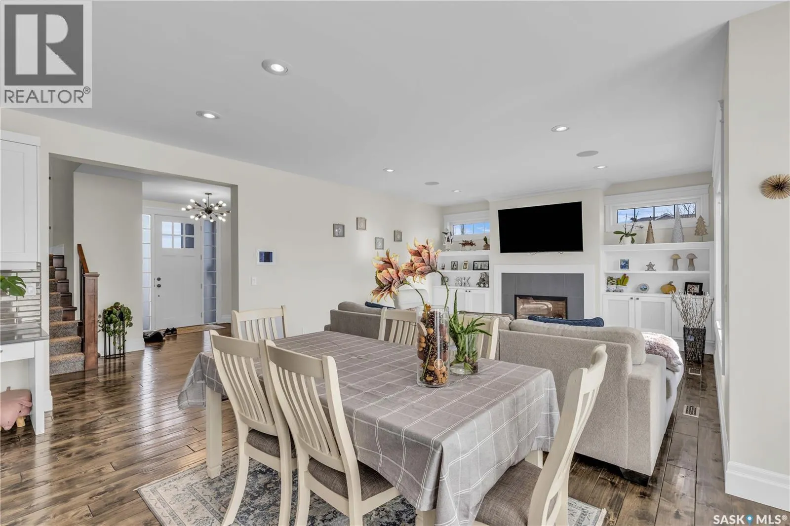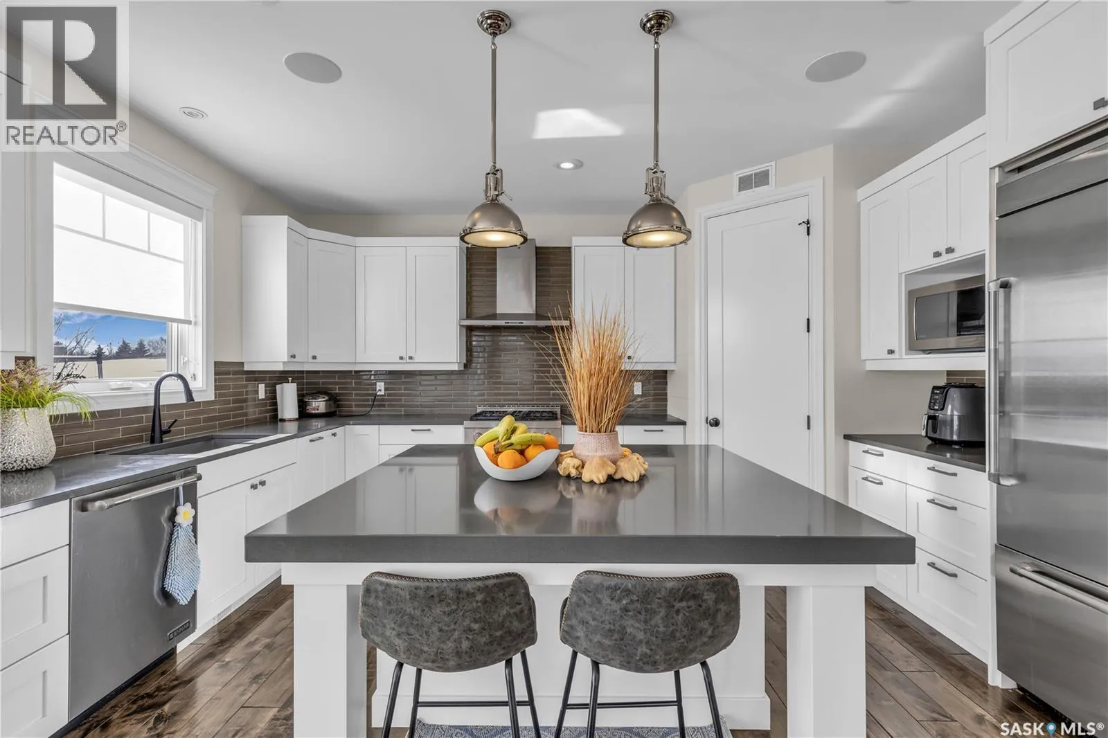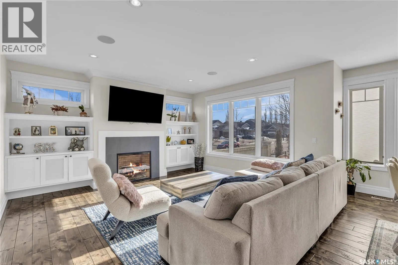 This beautifully designed 2434 sq.ft two-storey home, custom built by Valentino Homes, offers high-end finishes and timeless elegance, all backing directly onto the stunning Arbor Creek Park. Upon entry, you're welcomed by warm, refined décor that immediately feels like home. The main floor features solid 8-foot core interior doors, wide windows throughout, and an abundance of natural light that enhances the open concept living space. The bright living room boasts a natural gas fireplace surrounded by custom cabinetry, seamlessly connected to the dining area and a fresh white kitchen complete with quartz countertops, island, corner pantry, and premium JennAir appliancesâperfect for both daily living and entertaining. A spacious office with French doors and large windows makes working from home a delight. The main floor also includes a powder room and a functional mudroom with access to the heated double garage (24x25 ft, 10' ceiling). Upstairs, the luxurious primary suite features a walk-in closet the size of a room and an oversized ensuite with double vanities, heated floors, a double walk-in shower, and a private water closet. Two additional large bedrooms, each with park views and hardwood floors, a full 4-piece bathroom, and a bright laundry room with a window complete the second level. The fully finished basement offers a massive family room with a projection screen and custom bar, a fourth bedroom, another full bathroom, and ample storage space. Additional highlights include 9-foot ceilings on all three floors, Restoration Hardware lighting, custom blinds, built-in audio with Control4 system, and hand-scraped hardwood floors. The south/west-facing backyard is low-maintenance and opens directly to Arbor Creek Park through a private gateâideal for enjoying peaceful walks and stunning views. This is a truly exceptional home built with quality, comfort, and attention to detail at every turn. (id:27476)