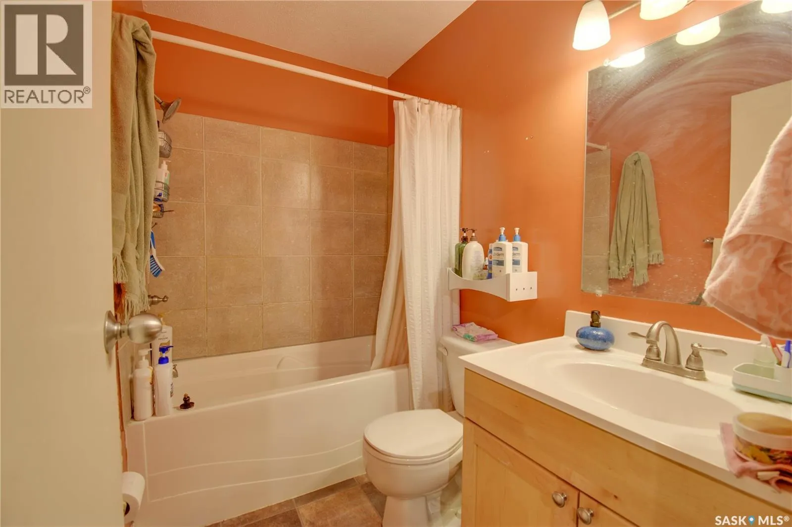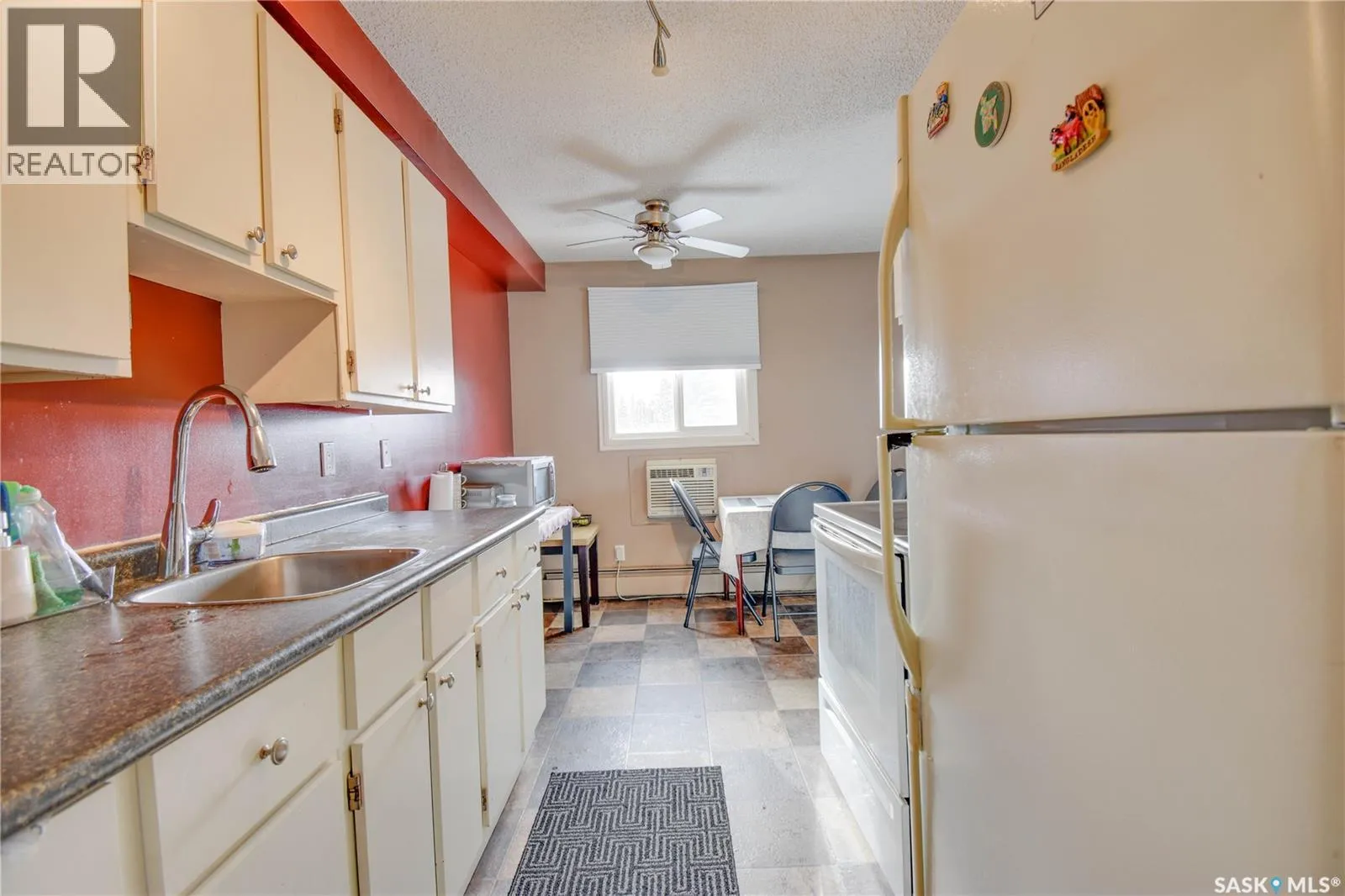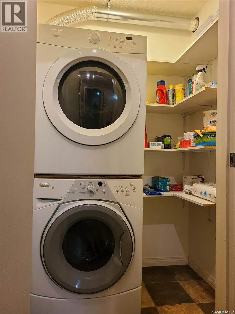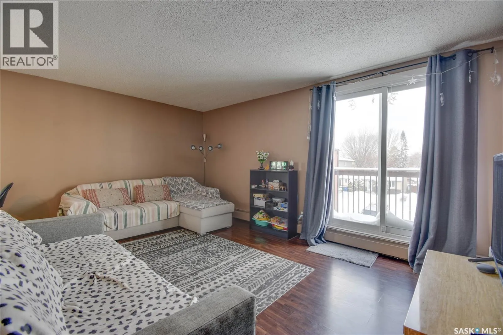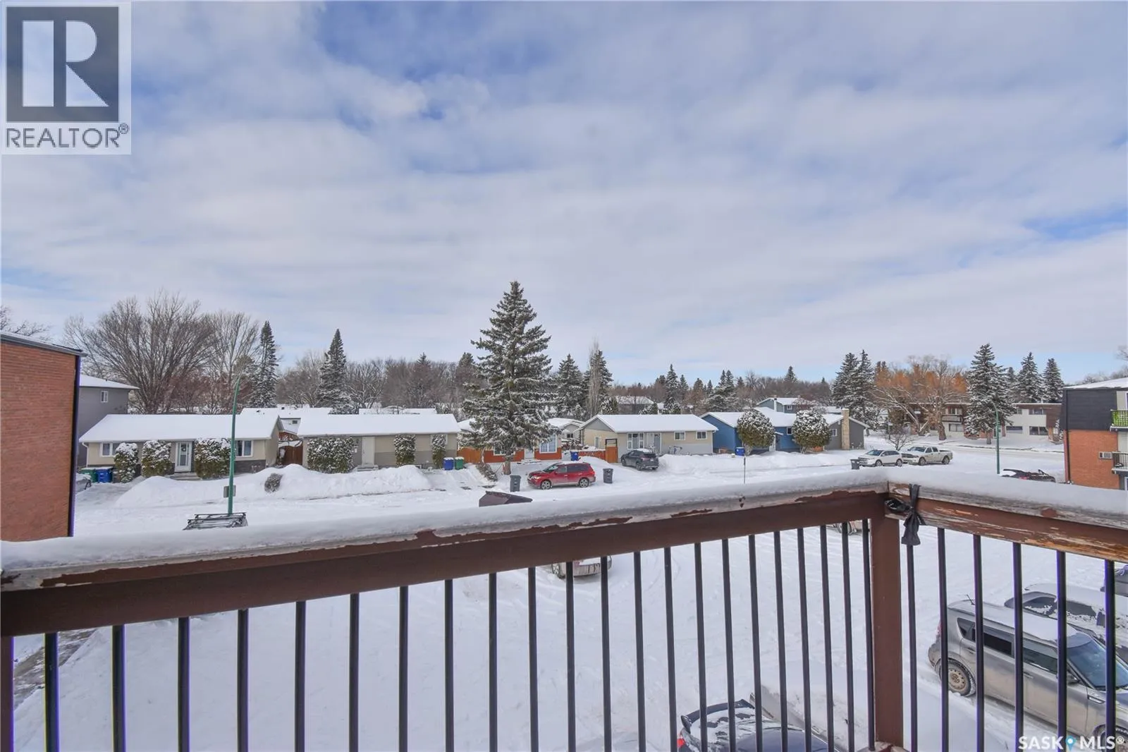 Welcome to Unit 18 â 116 Acadia! This top-floor corner unit boasts a prime location just steps from the many amenities along 8th Street, with convenient access to Circle Drive, nearby bus stops, parks, and schools. Upon entering, you are greeted by a bright kitchen featuring white cabinetry and white appliances, seamlessly flowing into the adjoining dinette area. The spacious living room provides ample room for relaxing or entertaining and offers sliding door access to your private deck. The unit includes two generously sized bedrooms, a well-appointed 4-piece bathroom, and the added convenience of in-suite stacking laundry complete with shelving. One electrified parking stall is included. (id:27476)