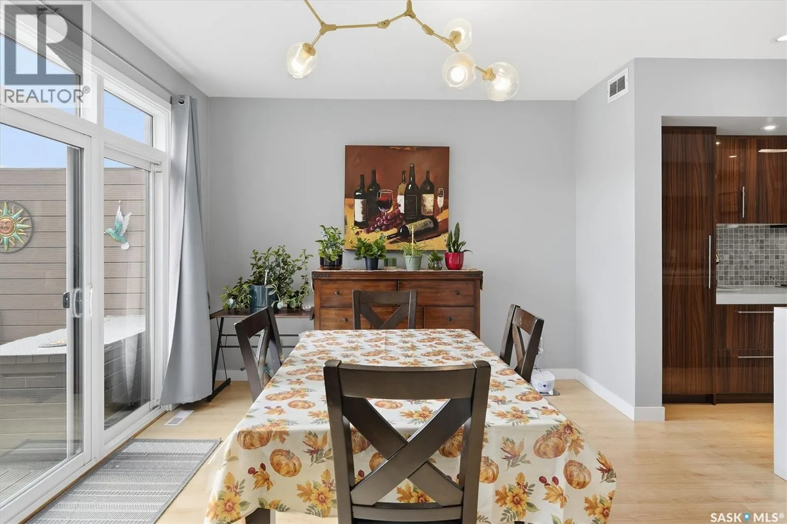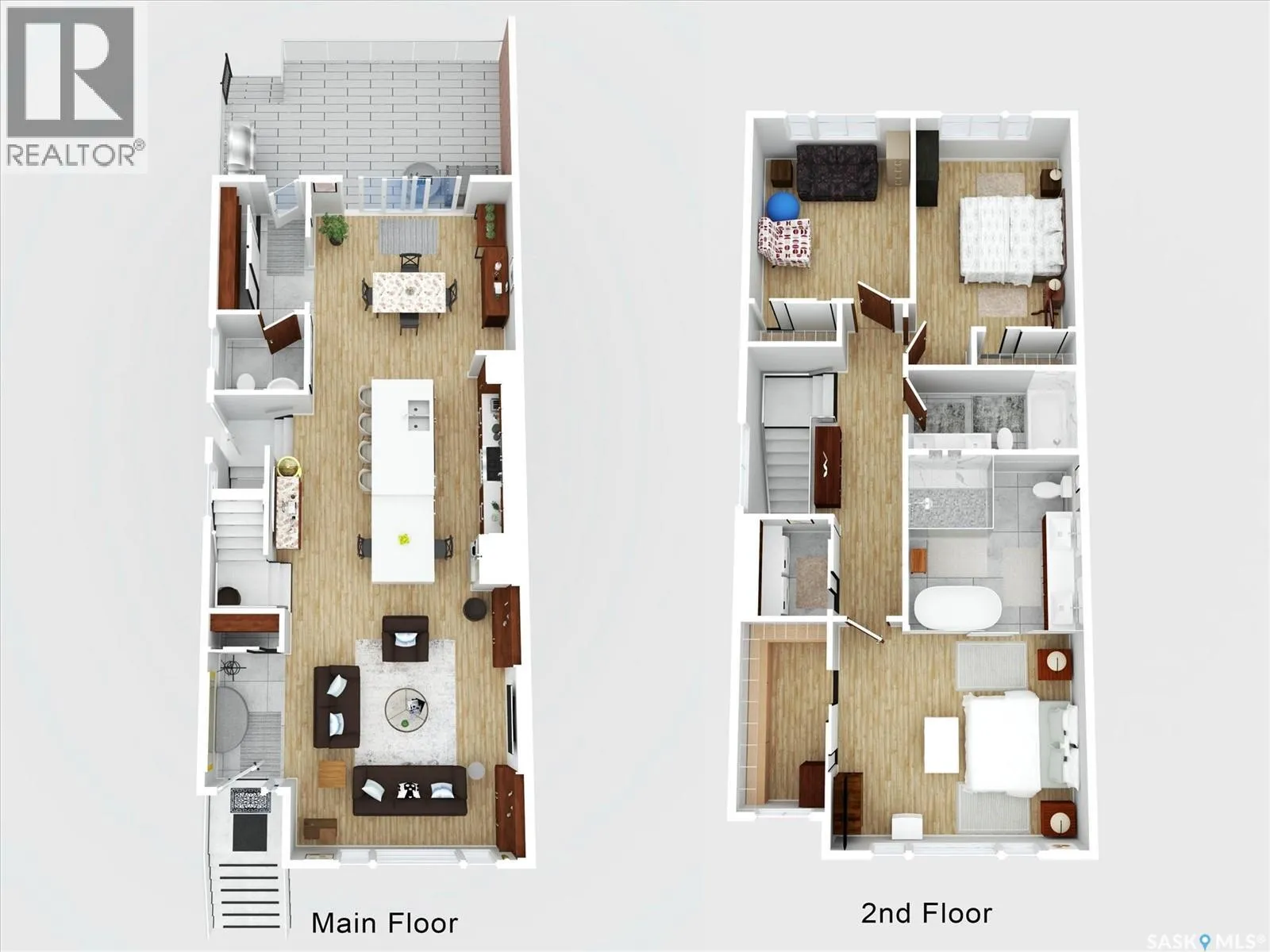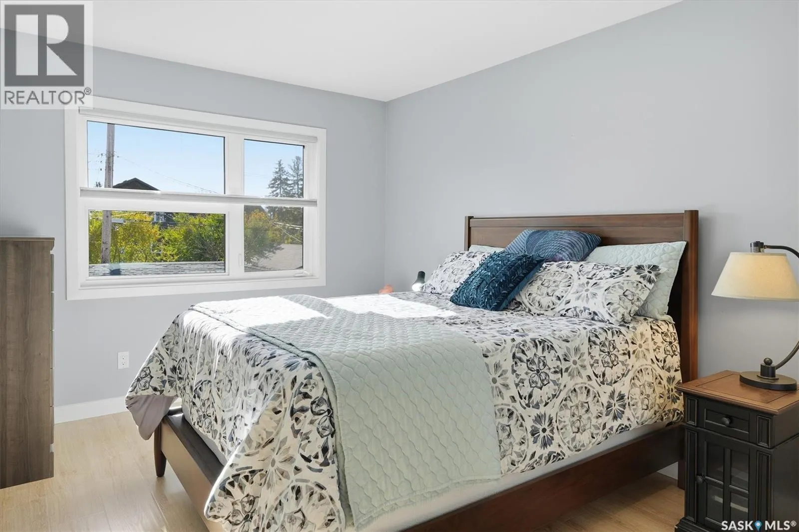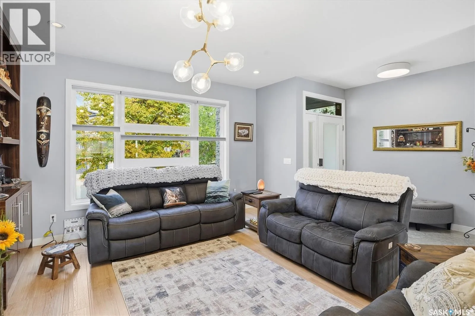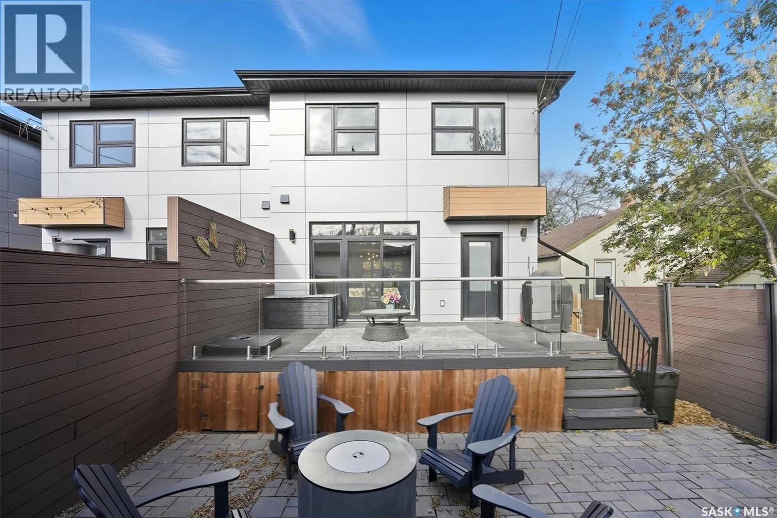 OPEN HOUSE SUNDAY MAR 8th 1-3PM. Welcome to 1106 7th St E. This stunning 1,897 sq. ft. semi-detached two-storey offers modern style and exceptional craftsmanship in the established Haultain neighbourhood. The bright, open concept main floor features 9-ft ceilings, large windows, and a stylish electric fireplace with built-in shelving. The chefâs kitchen boasts high gloss cabinets, a massive quartz island, tile backsplash, and stainless steel appliances including a gas range. French doors off the dining area lead to a south-facing, maintenance-free deck and an insulated double detached garage. Upstairs, the primary suite impresses with a walk-in closet and spa-like 5-pc ensuite featuring a soaker tub, glass shower, and double sinks. Two more spacious bedrooms, a 5-pc main bath, and 2nd floor laundry complete this floor. Additional features include no carpet, custom closet organizers, open-tread staircase, pot lighting, and a side entry to the basement with 9-ft ceilings ready for development and a zeroscape yard featuring artificial turf in the front and a custom paving stone patio in the back. Call for your private showing today!! (id:27476)