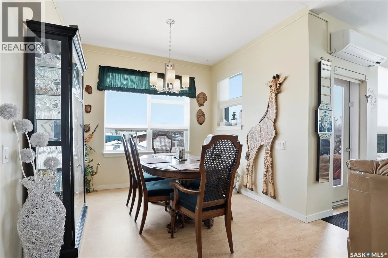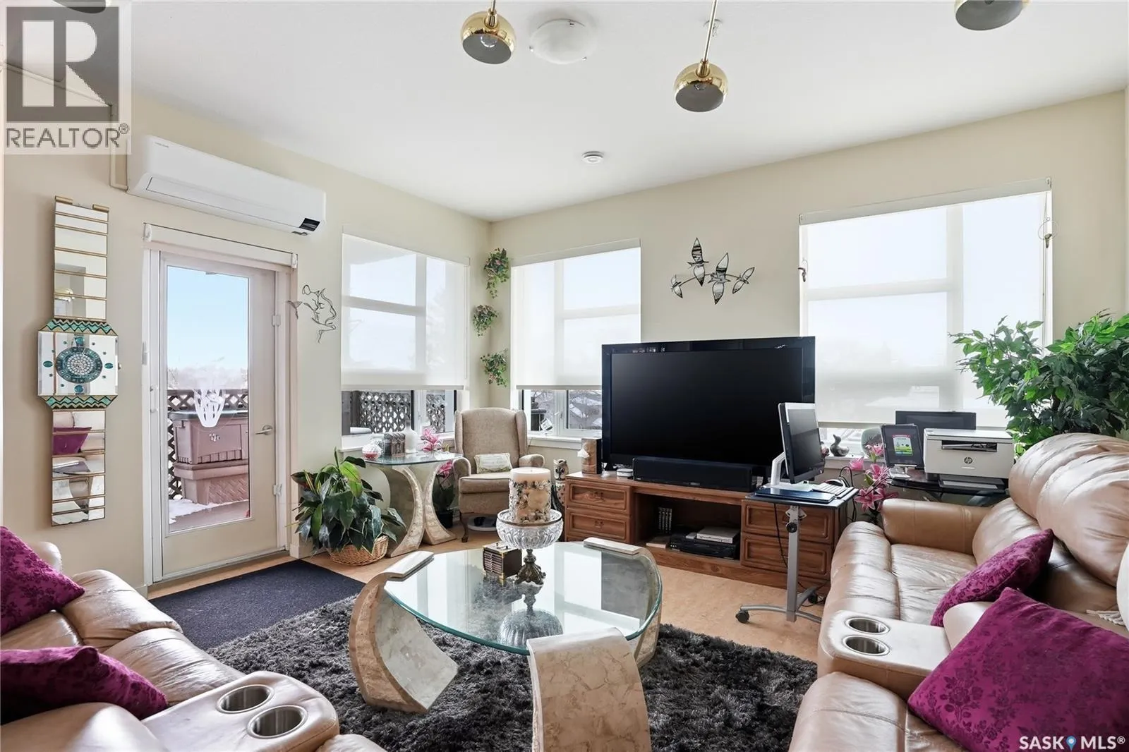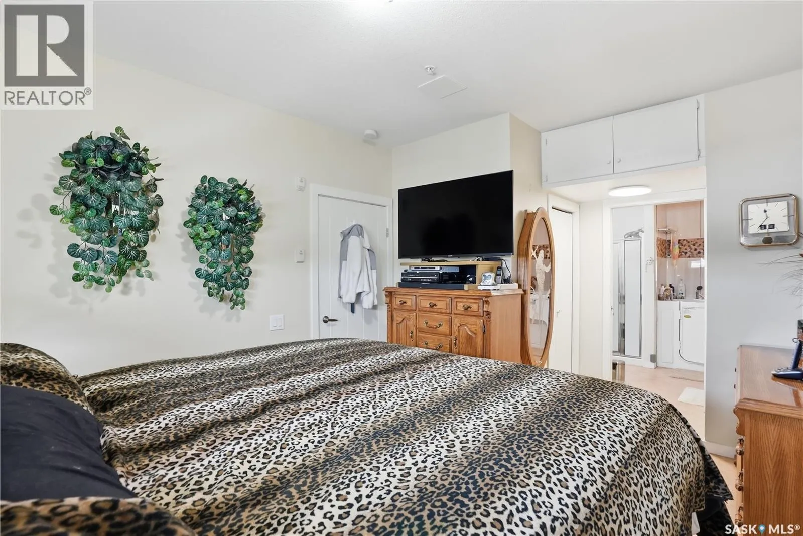 Welcome to another beautiful condo in this one-of-a-kind, community-driven complex in Riversdale. This unit offers 1,044 sq. ft. with 2 bedrooms and a spacious 4pc bathroom featuring both a separate tub and shower. Durable Marmoleum flooring runs throughout, and large north-west facing windows fill the space with natural light, perfect for enjoying sunsets. The foyer leads to an updated kitchen with a bar-style eat-up island, high-end stainless steel appliances, a Bosch dishwasher, gas stove, plus plenty of storage, including a large closet for extras. The generous master bedroom boasts two closets with direct access to the bathroom, while the second bedroom, located on the opposite side for privacy, offers ample storage and could serve as an office or hobby room. Owners share about 5,000 sq. ft. of common space with floor-to-ceiling hallway windows. The building features a new boiler system, in-floor heating, and abundant daylight. Amenities include a sauna, art room, exercise space, wood working shop and a large, welcoming dining hall and lounge that hosts private and public events. Outside, enjoy a lush community garden, two patios, and a rooftop deck for warm evenings. Additional perks include guest suites, secure covered parking, and a smoke-free environment, with the building partnered with SES Solar Cooperative. This is truly a unique community offering an exceptional lifestyle in the heart of downtown, steps from the Meewasin Trails, River Landing, shopping, and restaurants. (id:27476)