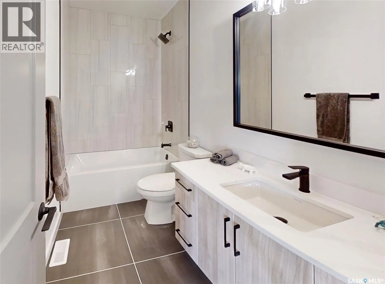 Welcome to 723 Nazarali Union. Soon to be built by reputable and trustworthy Silverstone Developments. This rare combination with a 1 Bedroom Legal basement suite & triple garage is priced at $774,900 and will not disappoint. Located in one of Saskatoon's newest & exciting east side neighbourhoods. This neighbourhood is quickly developing with the exciting news of the new schools that will be built in the near future. This home will be built on the park entrance so lots of extra privacy. Absolutely perfect if you enjoy natural light in your home. This floor plan features : 9ft ceilings, open concept, custom cabinets, under cabinet lighting, quartz counter tops, custom tile backsplash in the kitchen and a nice mix of plank, tile and carpeted flooring. Awesome layout with 3 good size bedrooms, Bonus room and an amazing 2nd floor laundry room. Primary bedroom and ensuite features a large walk in closet, large walk in custom tile shower with multi heads & heated tile floors. Main floor boasts a large walk thru mudroom with custom built lockers for the growing family and a good size foyer. The Basement features 9ft ceilings and a 1 Bedroom legal suite with separate laundry. All this with an oversized 30x24x22 Triple garage. Still time to completely customize your home or maybe switch to a completely different plan. PHOTOS ARE OF A PREVIOUS SHOWS HOME that was just over 2000sqft . 10 year progressive new home warranty. GST & PST Included in purchase price. (id:27476)