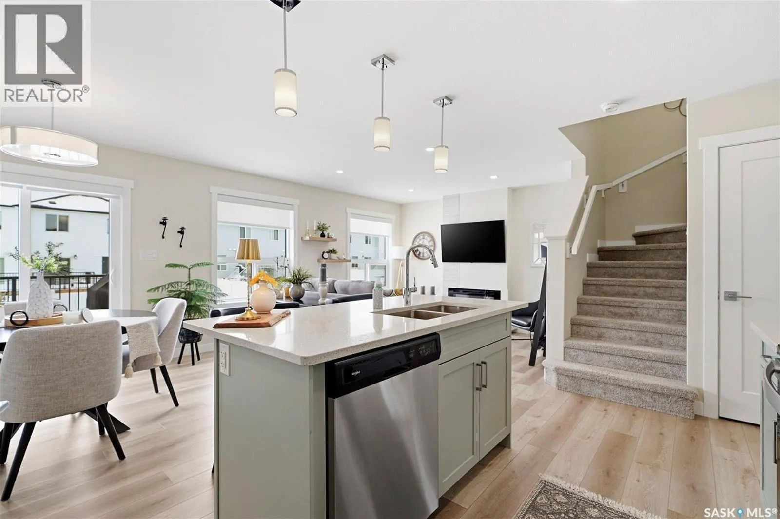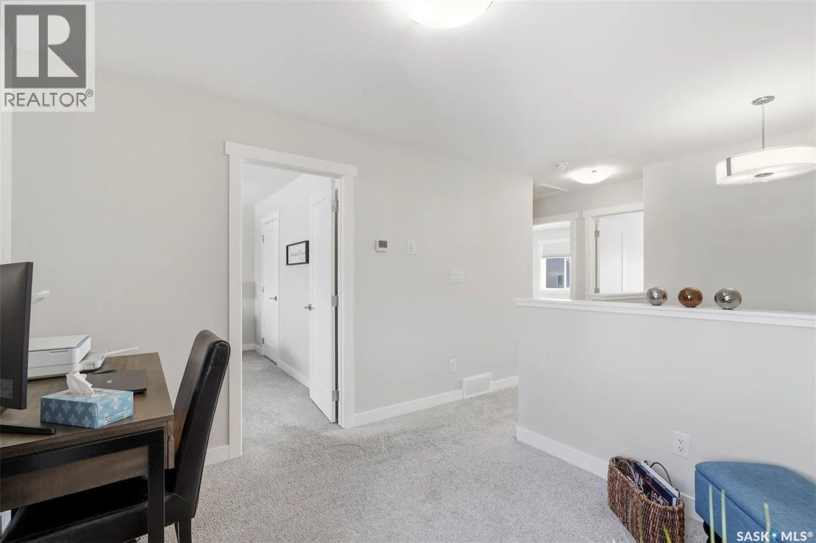 Welcome to this beautifully maintained home built in 2023 by Rohit Communities in the vibrant Brighton neighbourhood of Saskatoon. This Lawrence model offers 1,484 sq.ft. of thoughtfully designed living space with NO condo fees! The main floor showcases a functional open-concept layout featuring a stylish kitchen with quartz countertops, stainless steel appliances, and a walk-through pantry with a frosted glass door. The bright living room is perfect for entertaining, complete with an electric fireplace and window treatments throughout. A convenient 2-piece powder room completes the main level. Upstairs youâll find three spacious bedrooms, including a primary suite with a walk-in closet and private ensuite. An additional 4-piece bathroom, second-floor laundry (with washer & dryer included), extra storage, and a versatile bonus/flex room to add everyday convenience. This home also comes with central air conditioning, perfect for staying cool during the warm summer months. Oversized windows flood the upper level with natural light. Outside, enjoy a 19â x 22â double attached (fully insulated) garage, double concrete driveway, fully landscaped front/back/side yards, a 10â x 10â rear deck, and a fully fenced backyard â ideal for relaxing or entertaining. The open, unfinished basement provides excellent future development potential and features a convenient private side door entrance â ideal for a future basement suite. Brighton is one of Saskatoonâs fastest-growing neighbourhoods, close to all needed amenities including Landmark Cinemas, Wilson's Lifestyle Centre, Stoked Kitchen & Bar, Motion Fitness, Save-On-Foods, Shoppers Drug Mart and so much more. With beautifully designed parks and everyday conveniences nearby, this home offers the perfect blend of quality, style, and location. Donât miss your opportunity to own in one of Saskatoonâs most desirable communities. Contact your Realtor today to set up your own private showing! (id:27476)