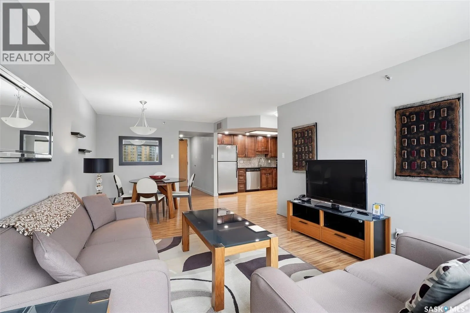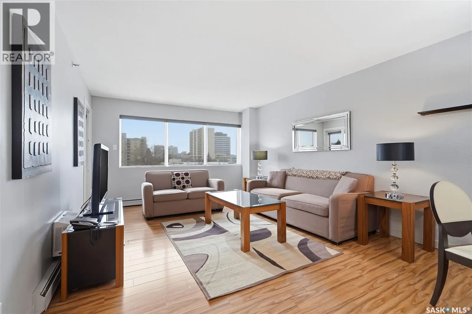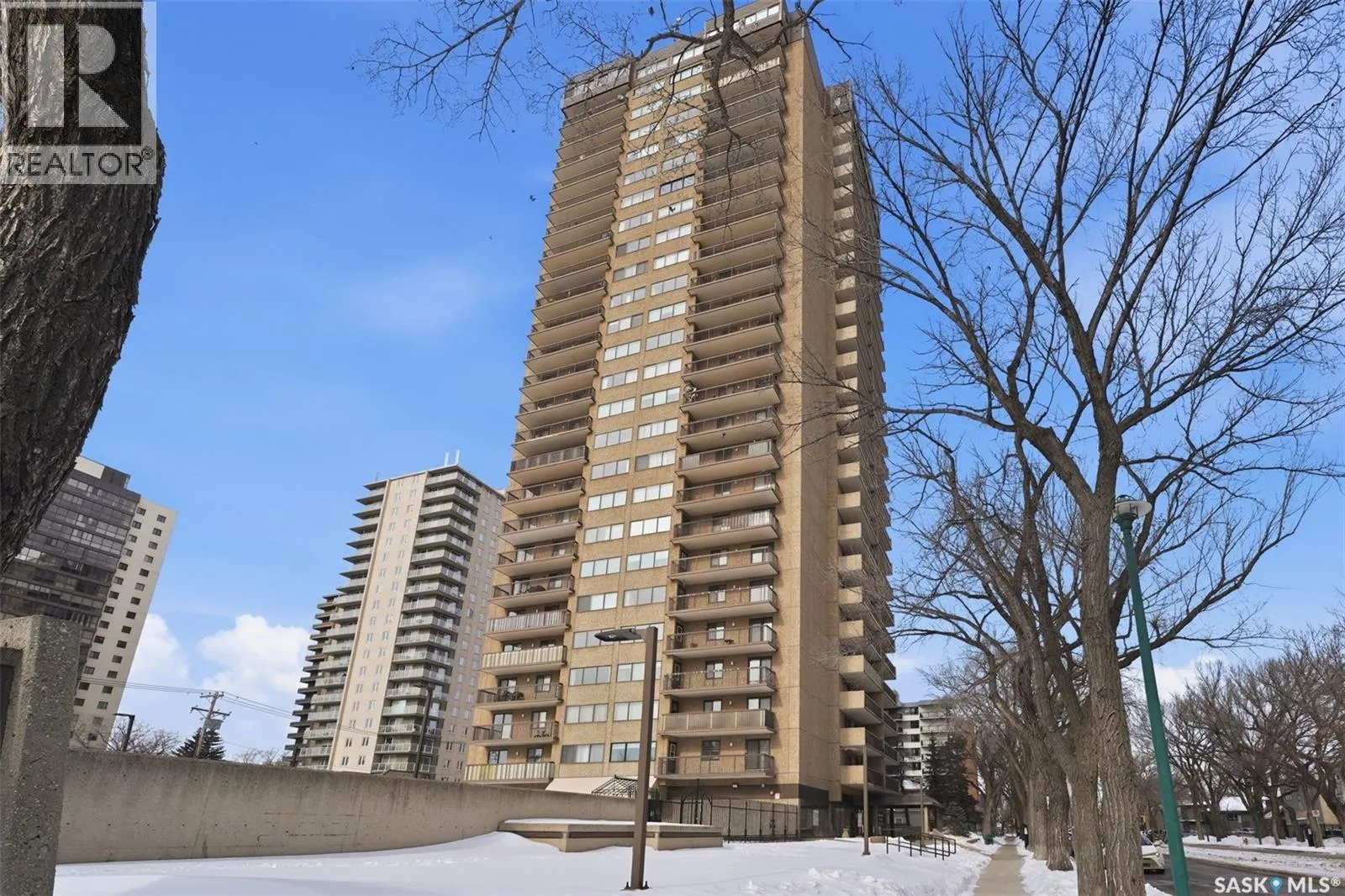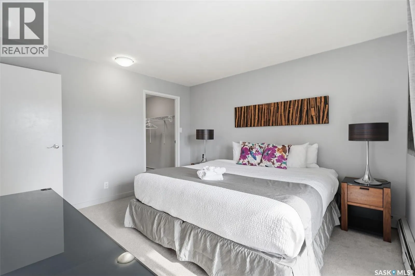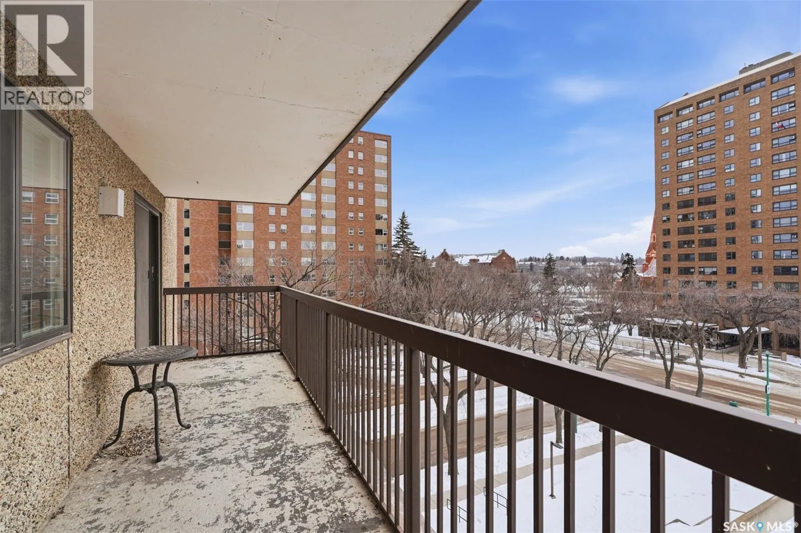 Exceptional city views with a peek of the river await from the 5th floor of Hallmark Place in the heart of Saskatoon! This well-maintained 970 sq. ft. condo offers 2 bedrooms and 1 full bathroom, all in excellent condition with a bright, open-concept layout. The kitchen overlooks the spacious living areaâperfect for casual dining or entertaining. Both bedrooms are generously sized, with the spacious primary suite featuring a large walk-in closet. Freshly painted with new carpet, this move-in-ready unit also includes in-suite laundry and all appliances. Step out onto your private balcony to enjoy city skyline views along with a glimpse of the riverâan ideal setting for morning coffee or relaxing evenings. Hallmark Place is a well-managed concrete building offering fantastic amenities, including an amenities room, exercise area, squash court, outdoor patio, and high-speed elevators. Thereâs even a convenient store right at the entrance for added everyday convenience. While this unit does not include its own parking stall however the seller has secured underground rental parking if there is interest. Donât miss your opportunity to enjoy downtown living with viewsâcall your REALTOR® today to book your private showing! (id:27476)