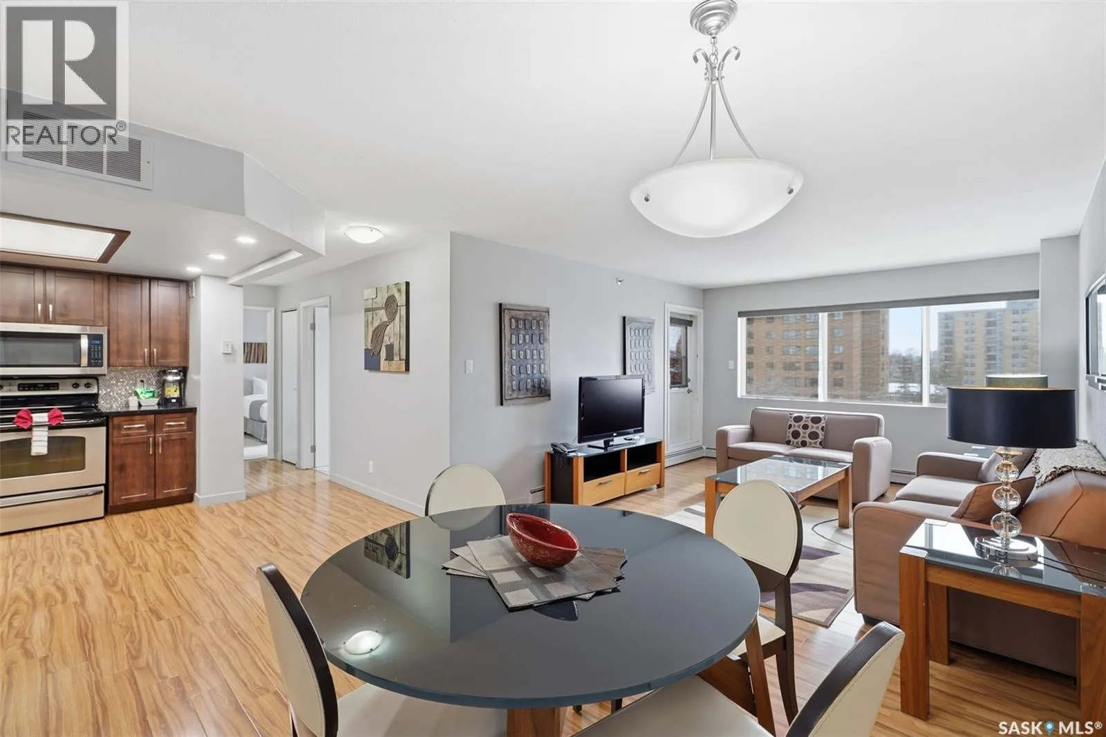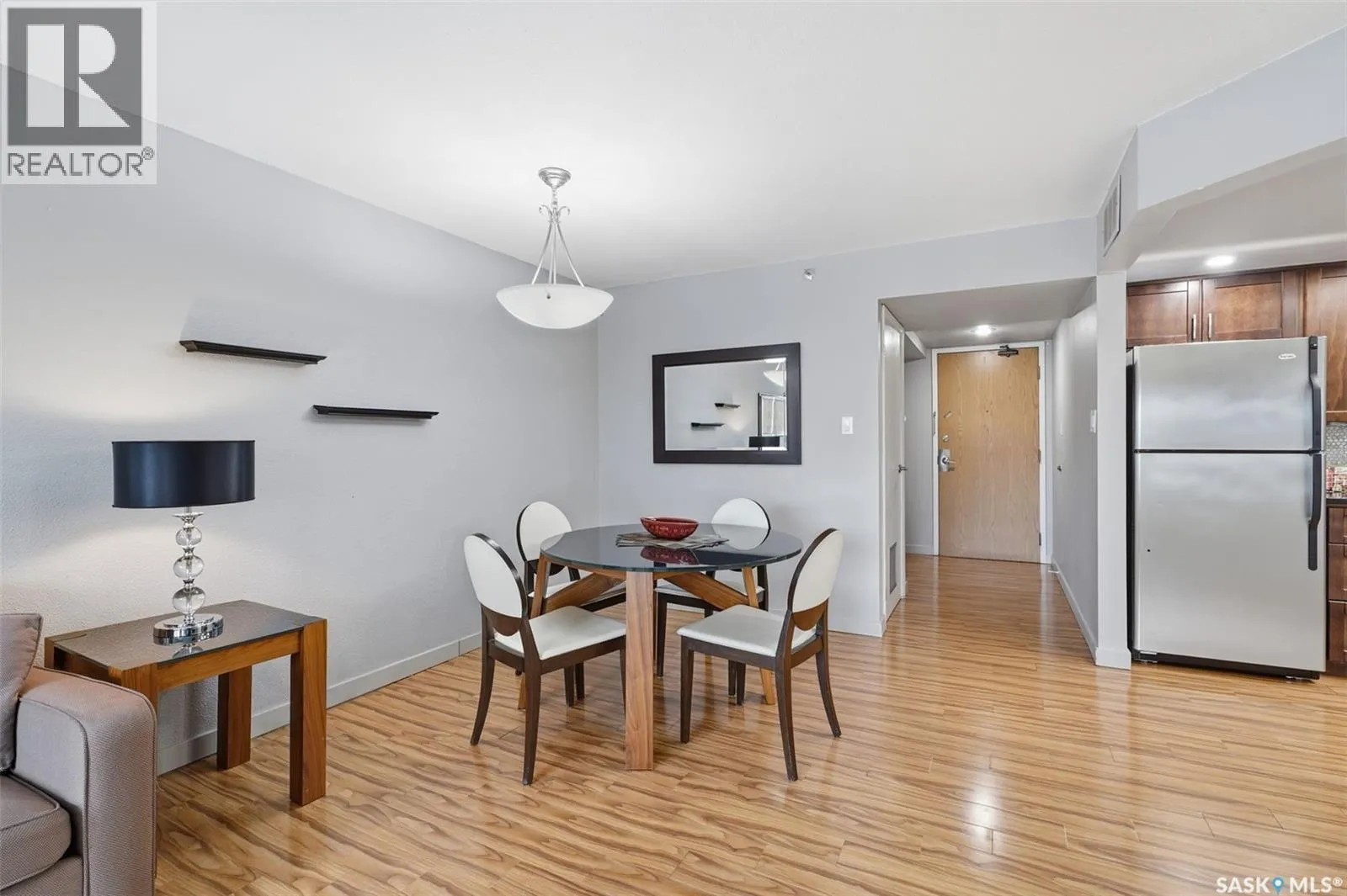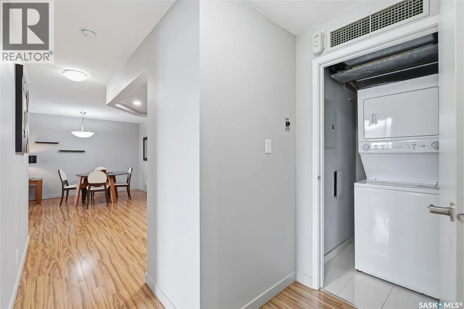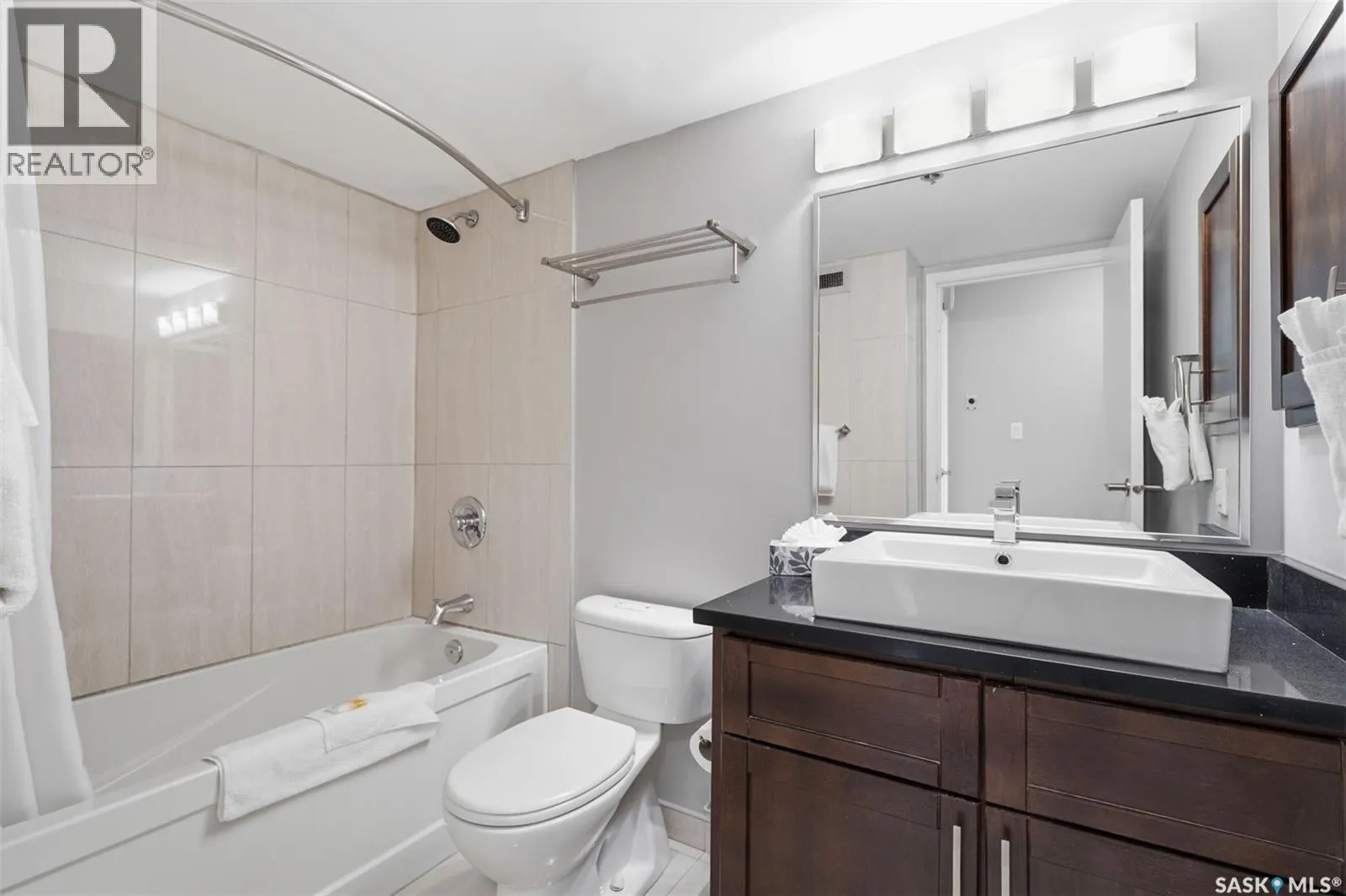 Exceptional city views with a peek of the river await from the 5th floor of Hallmark Place in the heart of Saskatoon! This well-maintained 970 sq. ft. condo offers 2 bedrooms and 1 full bathroom, all in excellent condition with a bright, open-concept layout. The kitchen overlooks the spacious living areaâperfect for casual dining or entertaining. Both bedrooms are generously sized, with the spacious primary suite featuring a large walk-in closet. Freshly painted with new carpet, this move-in-ready unit also includes in-suite laundry and all appliances. Step out onto your private balcony to enjoy city skyline views along with a glimpse of the riverâan ideal setting for morning coffee or relaxing evenings. Hallmark Place is a well-managed concrete building offering fantastic amenities, including an amenities room, exercise area, squash court, outdoor patio, and high-speed elevators. Thereâs even a convenient store right at the entrance for added everyday convenience. While this unit does not include its own parking stall however the seller has secured underground rental parking if there is interest. Donât miss your opportunity to enjoy downtown living with viewsâcall your REALTOR® today to book your private showing! (id:27476)