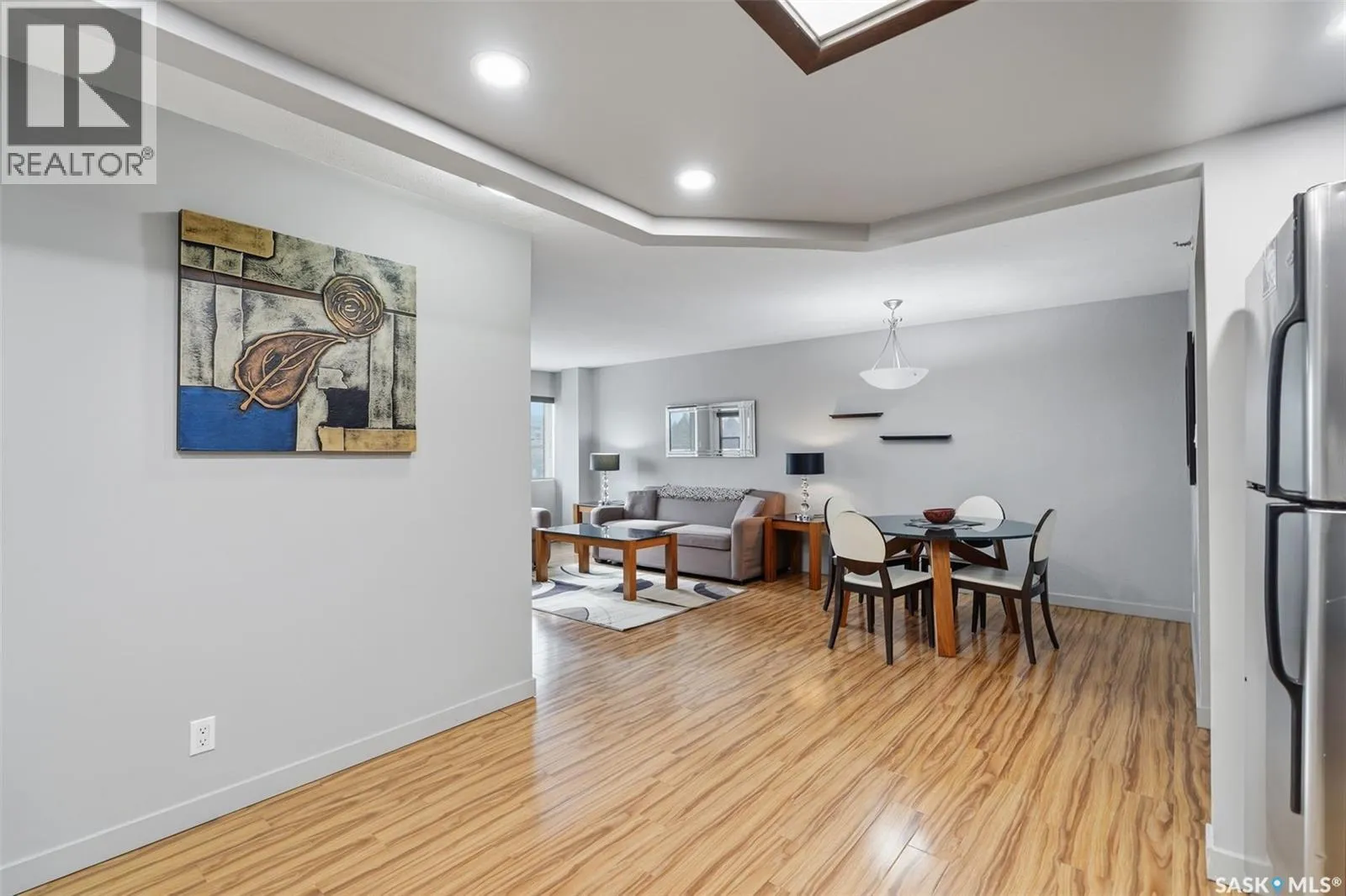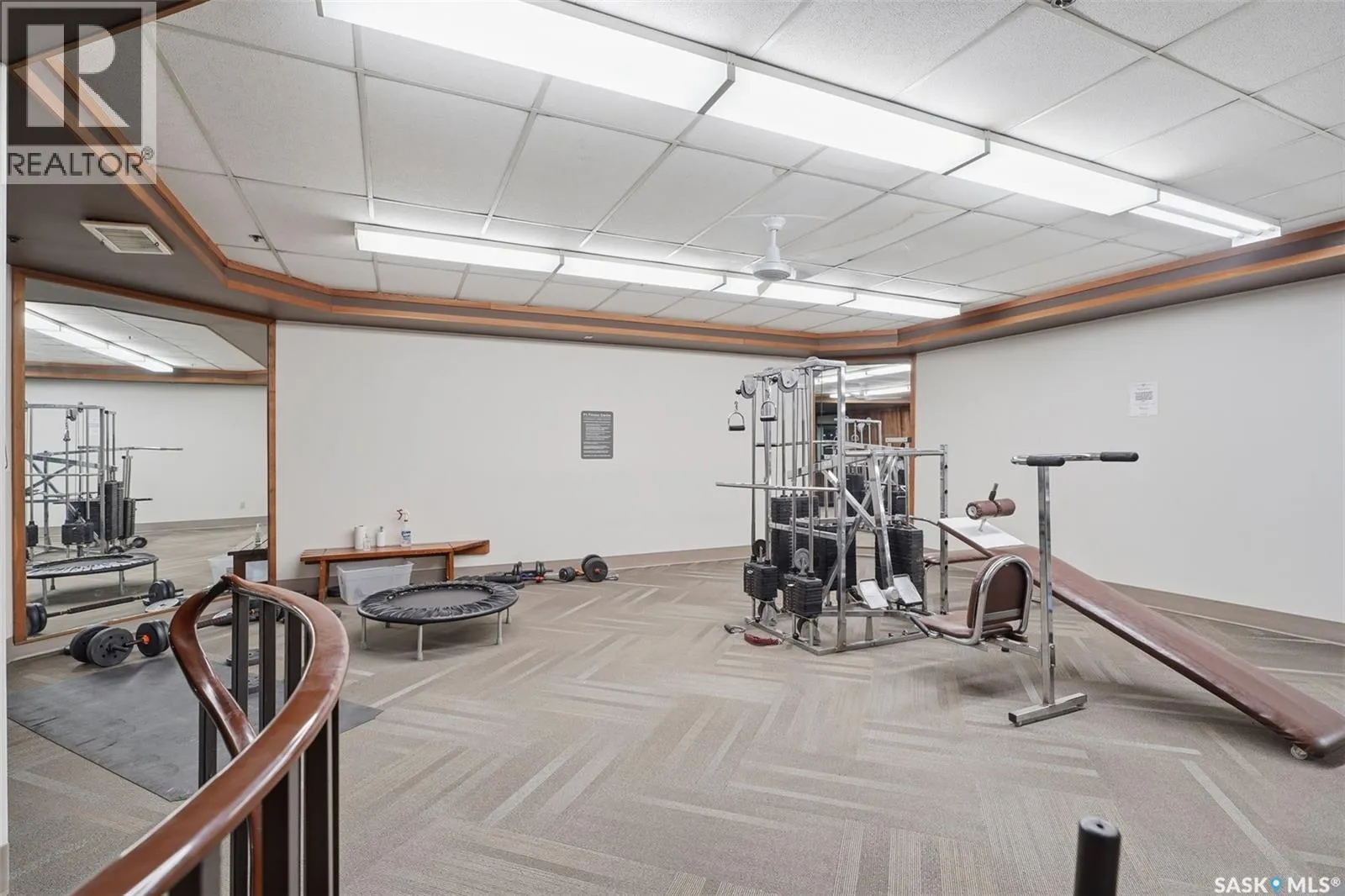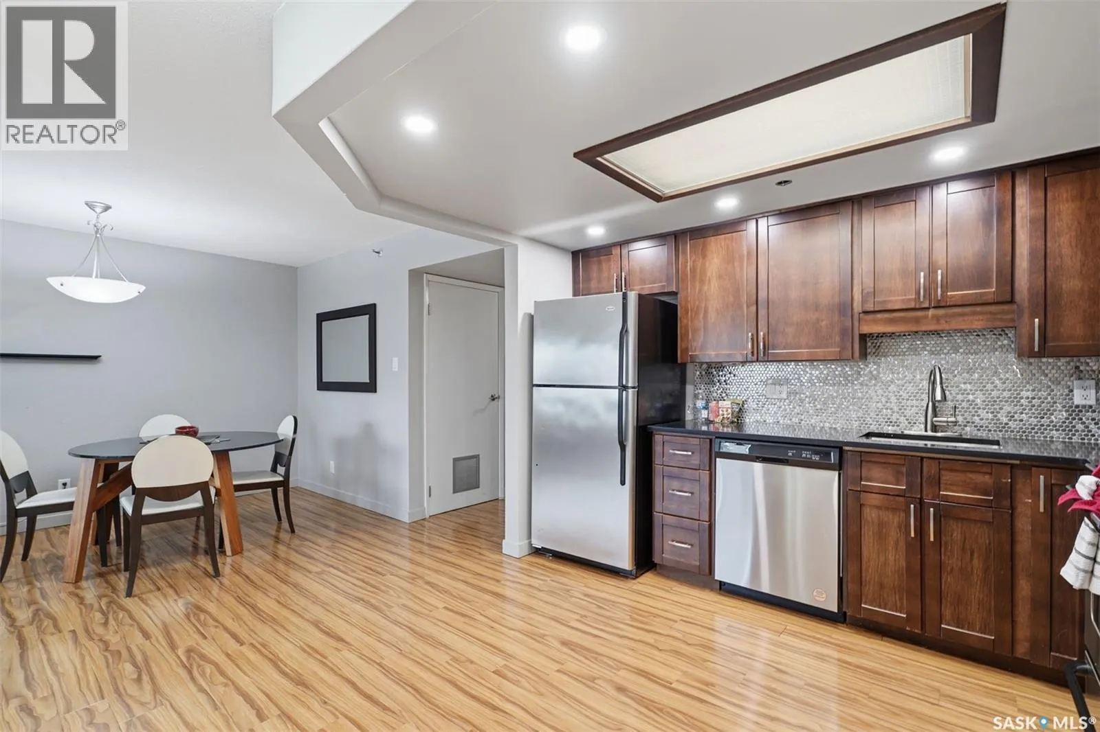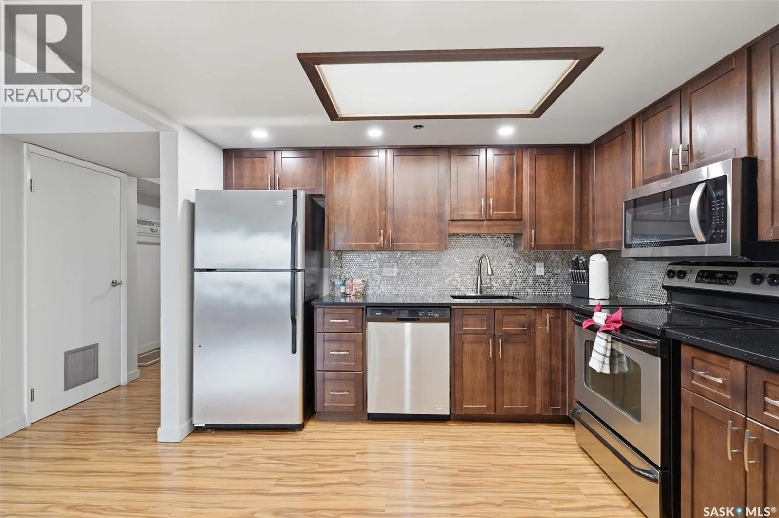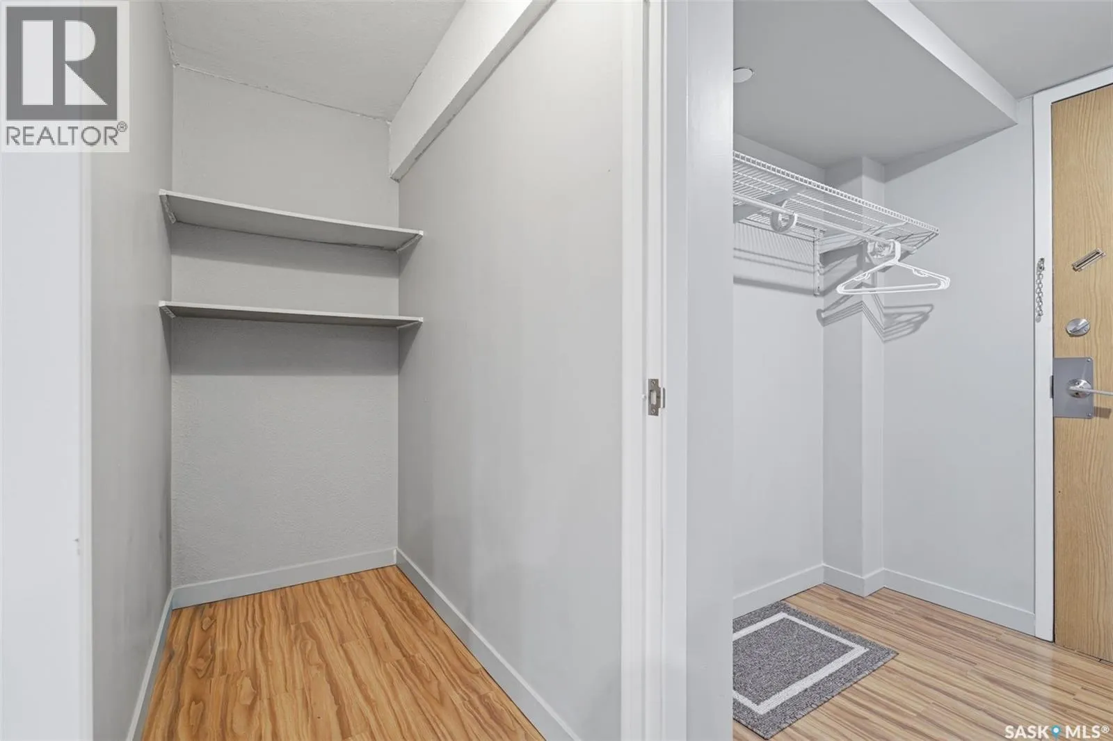 Exceptional city views with a peek of the river await from the 5th floor of Hallmark Place in the heart of Saskatoon! This well-maintained 970 sq. ft. condo offers 2 bedrooms and 1 full bathroom, all in excellent condition with a bright, open-concept layout. The kitchen overlooks the spacious living areaâperfect for casual dining or entertaining. Both bedrooms are generously sized, with the spacious primary suite featuring a large walk-in closet. Freshly painted with new carpet, this move-in-ready unit also includes in-suite laundry and all appliances. Step out onto your private balcony to enjoy city skyline views along with a glimpse of the riverâan ideal setting for morning coffee or relaxing evenings. Hallmark Place is a well-managed concrete building offering fantastic amenities, including an amenities room, exercise area, squash court, outdoor patio, and high-speed elevators. Thereâs even a convenient store right at the entrance for added everyday convenience. While this unit does not include its own parking stall however the seller has secured underground rental parking if there is interest. Donât miss your opportunity to enjoy downtown living with viewsâcall your REALTOR® today to book your private showing! (id:27476)