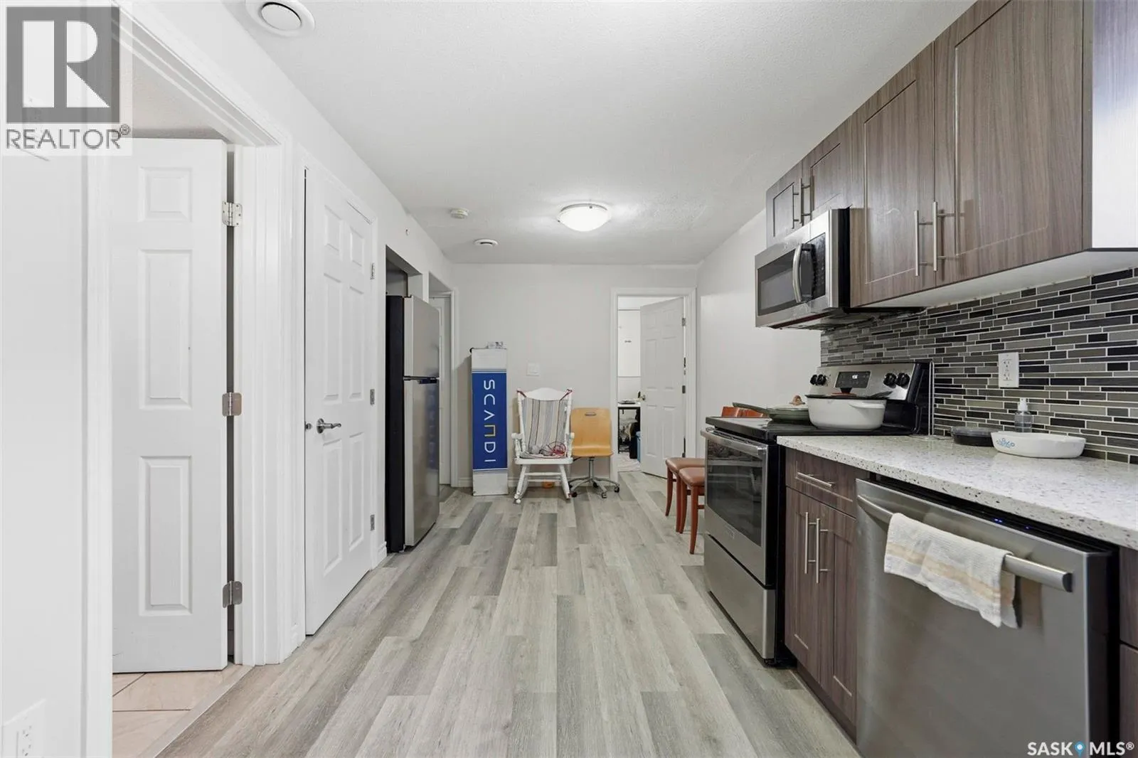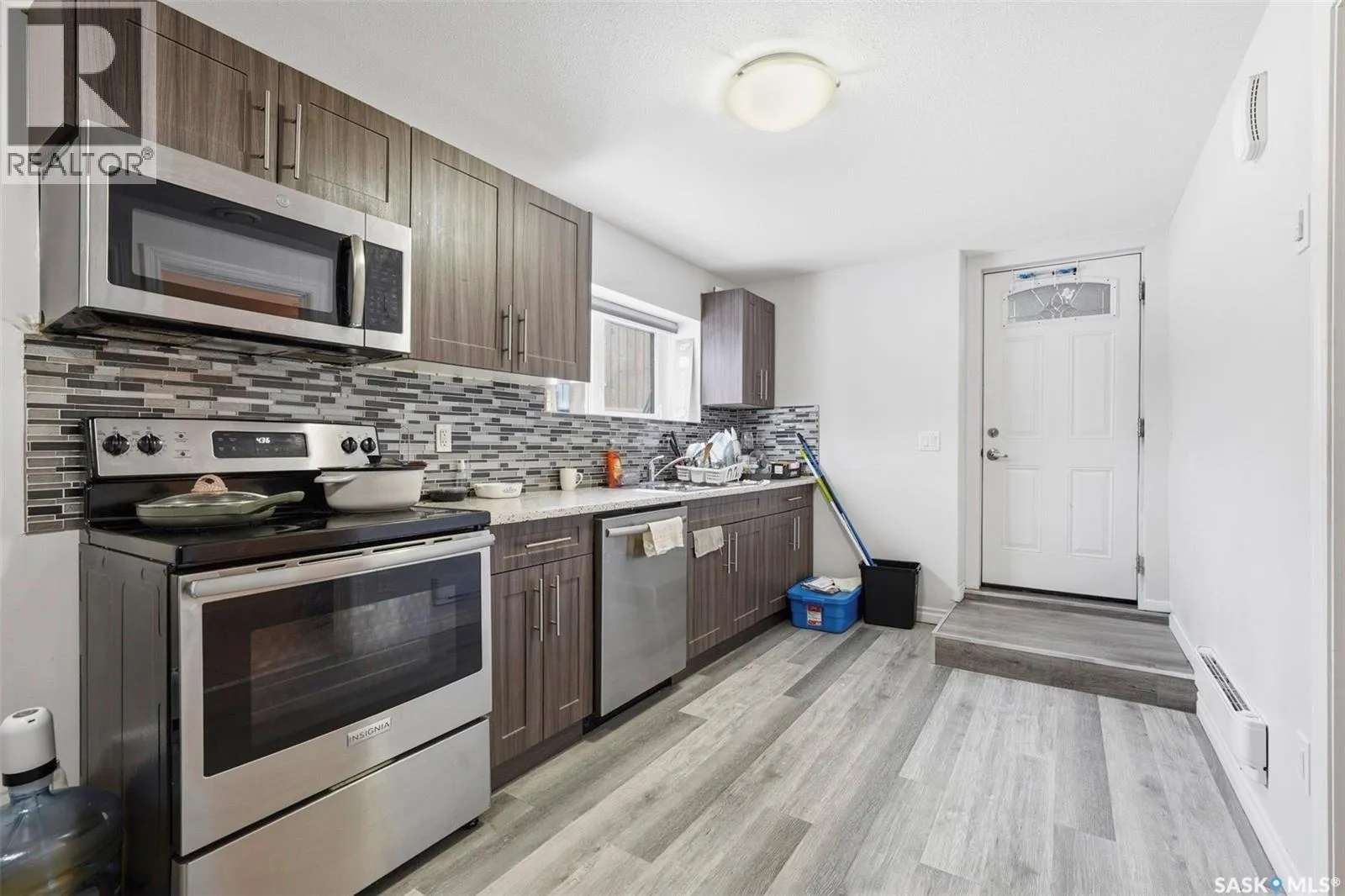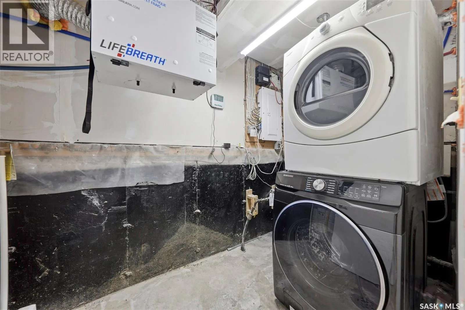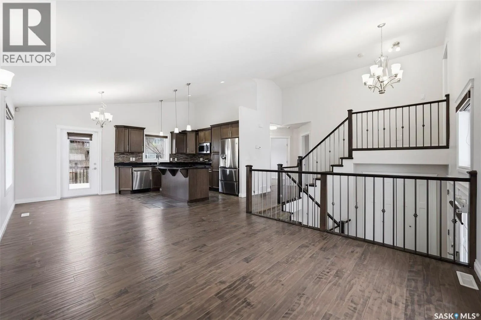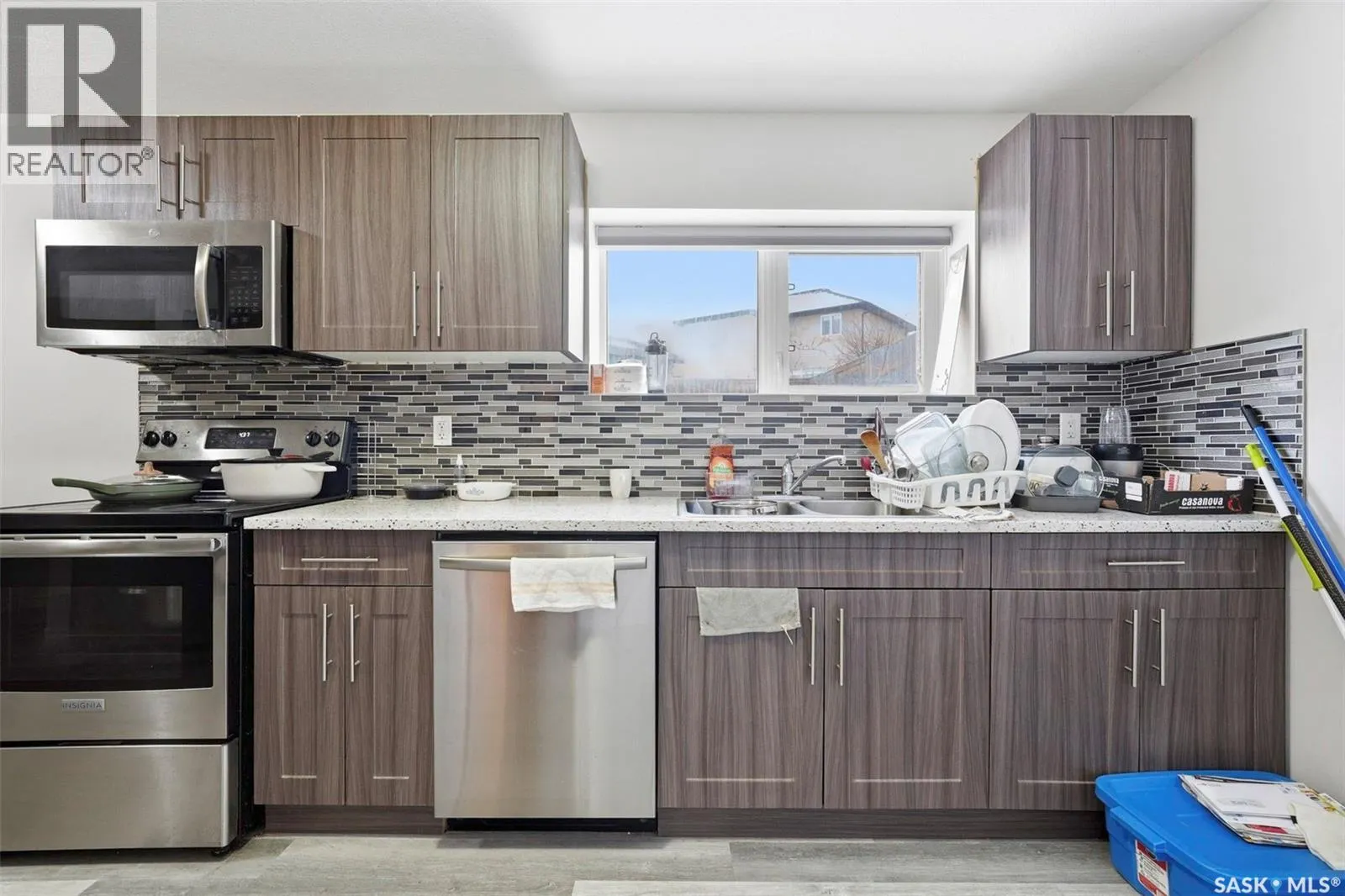 Welcome to this excellent family home located in the vibrant community of Stonebridge, thoughtfully built with quality and functionality in mind. The home features a unique and desirable layout where the entire second level is dedicated to the spacious primary retreat, complete with a deluxe ensuite bathroom and a large walk-in closet. Two additional bedrooms and a second full bathroom are conveniently located on the main level, alongside the bright living space. The main floor living area showcases hardwood floors, granite countertops, and vaulted ceilings - creating an open and inviting atmosphere filled with natural light. Garden doors lead to a large deck and welcoming backyard, perfect for relaxing or entertaining. Quality craftsmanship is evident throughout with soft-close cabinetry, full-extension drawers, low-E triple-pane windows, and an attractive acrylic stucco exterior. Additional highlights include an exposed aggregate driveway, central AC, extra-capacity 50-gallon water heater, and timer-controlled underground sprinklers. In the Basement - on the Owner's Side you also get a Bedroom and a 2-piece Bath & the major bonus is the legal 2-bedroom basement suite, providing excellent mortgage-helping income potential. All appliances are included, making this truly a move-in-ready home in one of Saskatoonâs most desirable neighbourhoods. Call Today to book a Viewing. (id:27476)