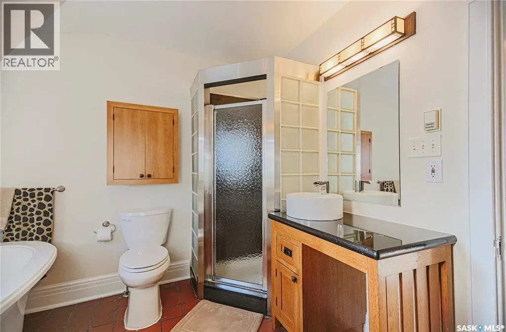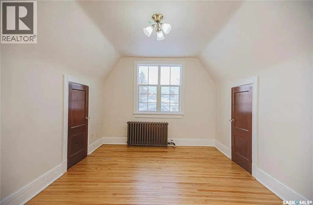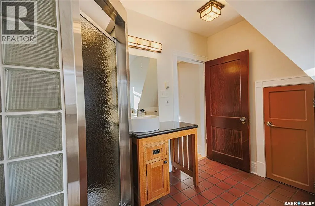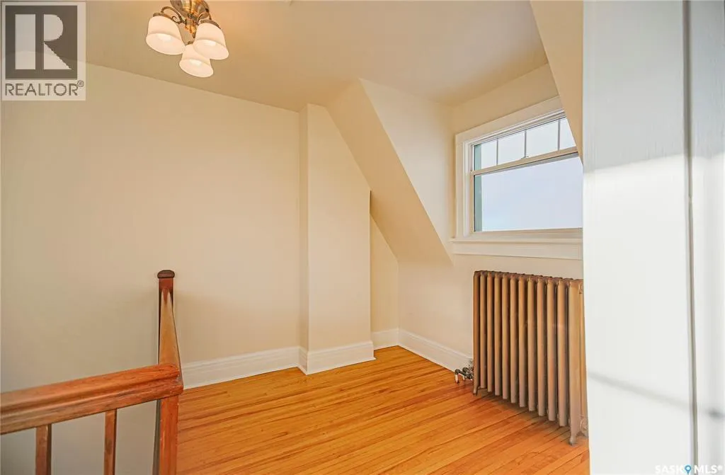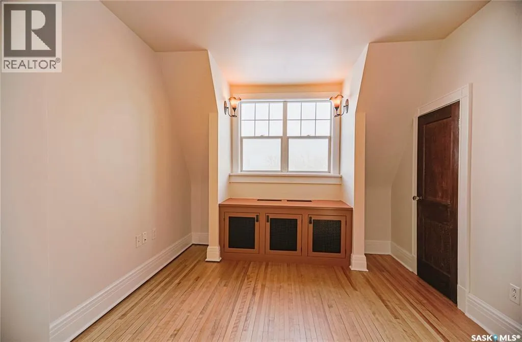 Built in 1926 by prominent architect, Frank P. Martin. The heritage value of the F.P. Martin House resides in its architecture. set along one of Saskatoonâs most iconic and scenic streets. This charming 3-bedroom, 2-bathroom heritage home is full of character and timeless appeal. The main floor offers a bright living room, dining area, kitchen, and a convenient 3-piece bathroom. Hardwood and tile flooring run throughout, complemented by granite countertops, a cozy wood-burning fireplace, and plenty of cabinetry. Upstairs youâll find a spacious primary bedroom with double closets, a second bedroom, and a 4-piece bathroom. The third floor features a third bedroom and a office area with incredible views of the river and downtown skyline. Built with lasting quality in mind, the home features some masonry construction, steel joists, and a concrete floor which can be seen from the open basement. The backyard offers a private retreat with a brick patio, and a rear-attached single garage with two more off street parking spaces. Own a piece of Saskatoon History. (id:27476)