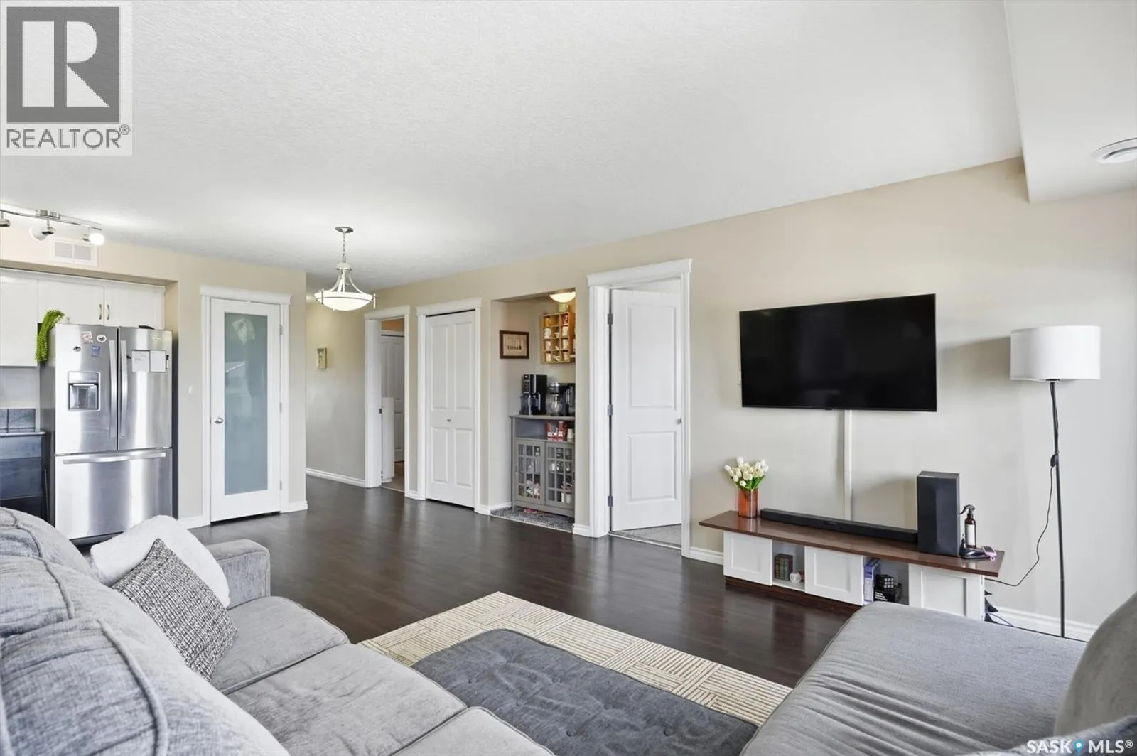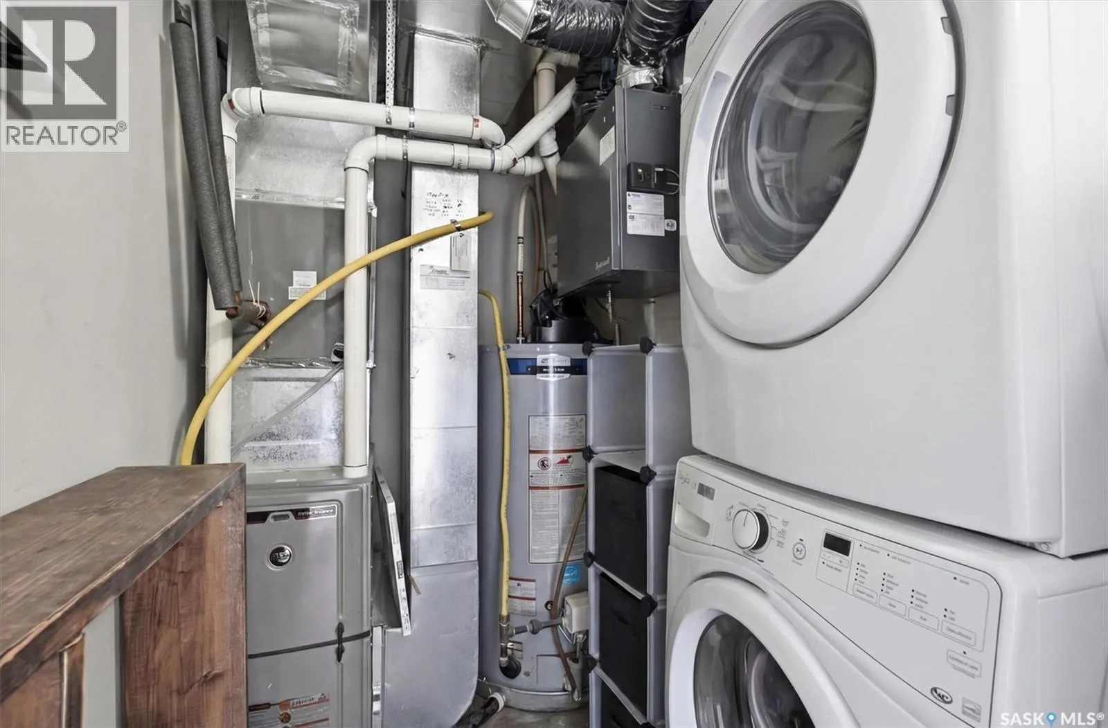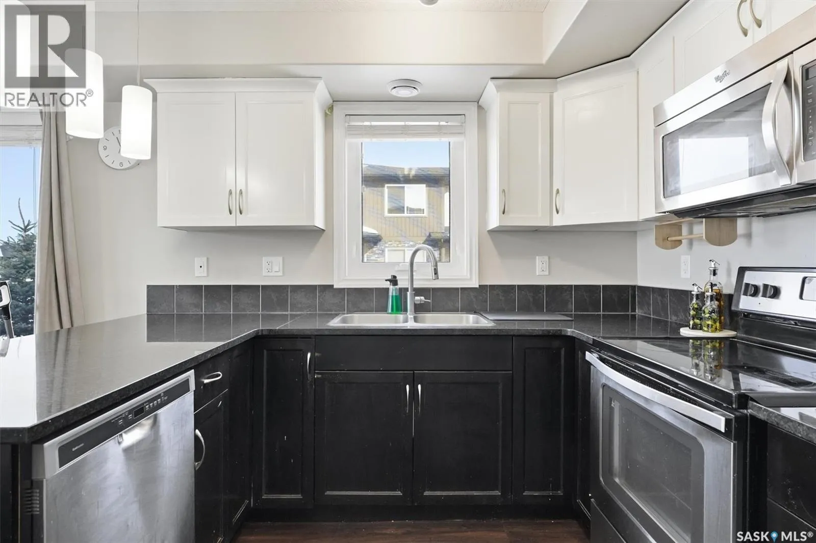 Welcome to #213â210 Rajput Way, a charming townhouse located in the highly desirable Evergreen community. This well-designed home offers 2 bedrooms plus a den and 2 full bathrooms, including a 4-piece ensuite off the primary bedroom, providing both comfort and convenience. The open-concept layout creates a bright and spacious feel throughout the home, perfect for relaxing or entertaining. Inside, youâll find quality finishes including vinyl plank flooring in the main living areas, vinyl tile in the bathrooms, and plush carpet in the bedrooms and den for added comfort. The kitchen and bathrooms feature elegant quartz countertops, while the kitchen is equipped with stainless steel Whirlpool appliances and ample storage. Step out from the living room onto the 19â x 5â balcony, an ideal spot to enjoy fresh air and sunset views. This unit also includes two parking spacesâone surface stall and your own private insulated garageâproviding added convenience, storage and security. Ideally situated next to a park and school, this home is perfectly located for families and those looking to enjoy the Evergreen neighborhood. Additional highlights include central air conditioning and in-unit laundry. Donât miss the opportunity to own this stylish and well-maintained townhouse in Evergreen! (id:27476)