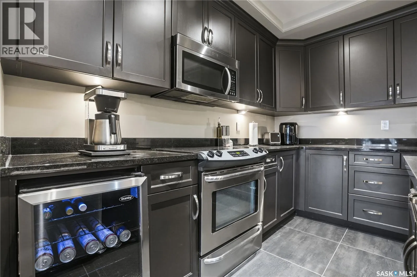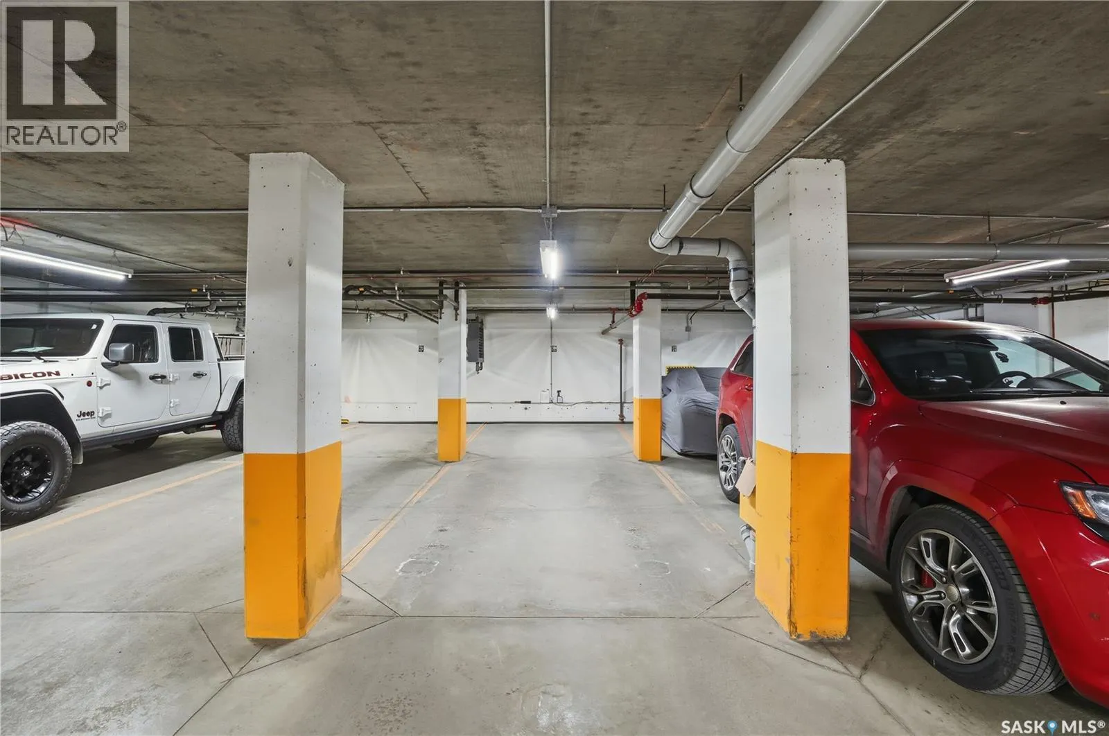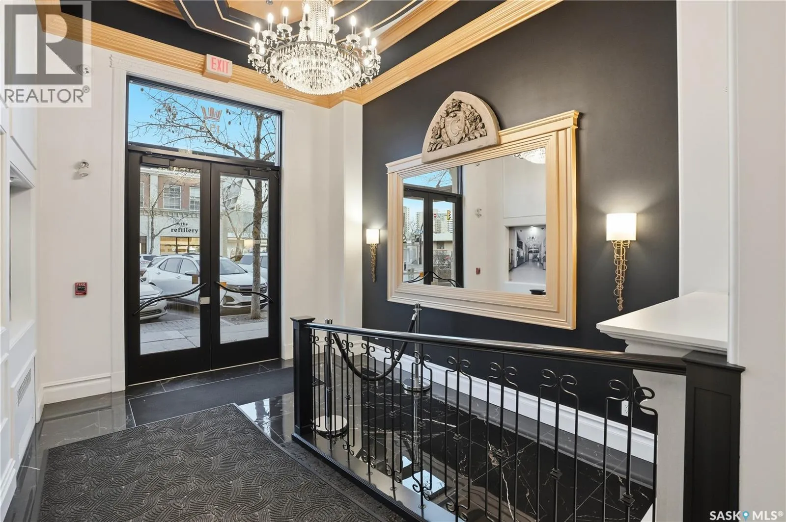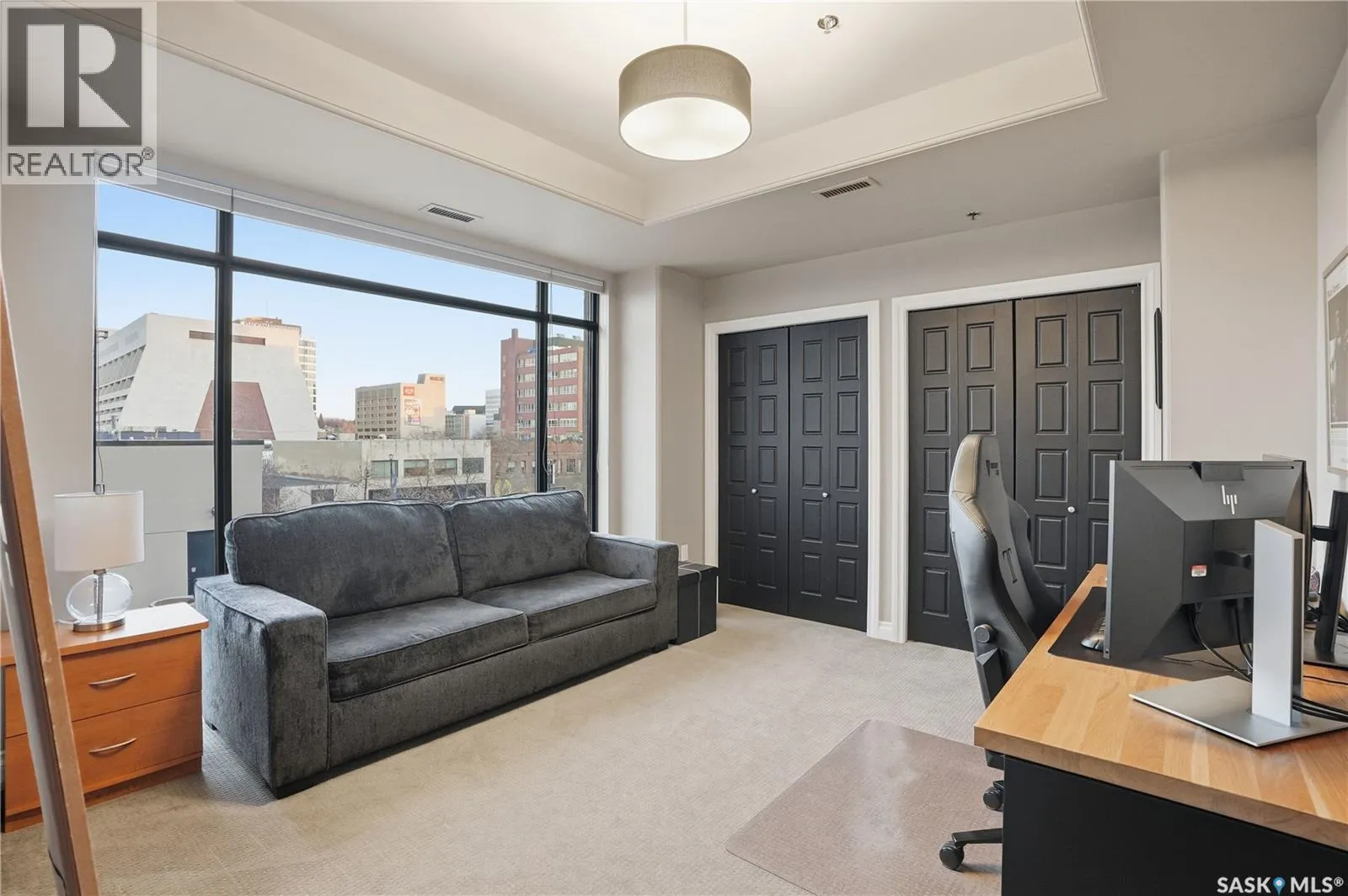 Enjoy luxury living in one of Saskatoon's most prestigious and icon developments; The Residences at the King George. Experience city living at its finest in this 1216 sq ft., 2 bedroom, 2 bathroom condo. The spacious open concept floor plan features executive level finishes designed for both elegant entertaining and everyday comfort. The fully equipped kitchen comes with stainless steel appliances, granite countertops and ample cabinetry throughout. Garden doors off the living room lead to a balcony to enjoy the downtown surroundings. The primary bedroom includes a walk-in closet and a 3-piece ensuite. The spacious second bedroom overlooks the terrace below and would also make for a great home office. Floor to ceiling windows flood the unit with natural light and offer beautiful cityscape views, both day and night. A rooftop patio is available for the residence; complete with a built in BBQ and outdoor kitchen. This unit also features 2 heated underground tandem parking spots, heated storage and a secured entry system. This exceptional home offers the perfect blend of modern urban living and historic charm and is an ideal opportunity to own a piece of Saskatoon history in the heart of the city. (id:27476)