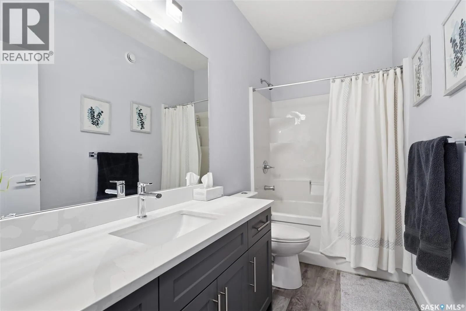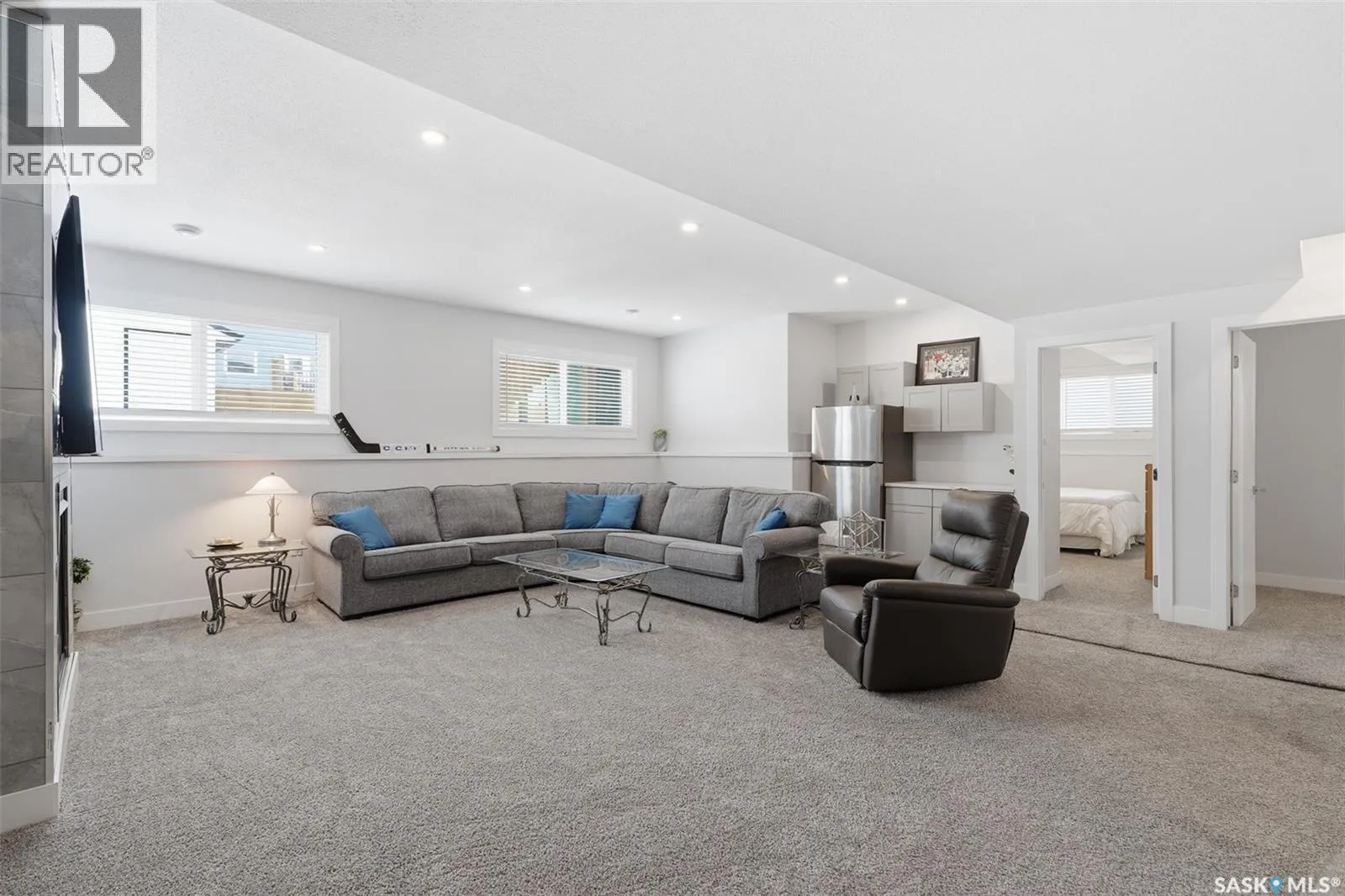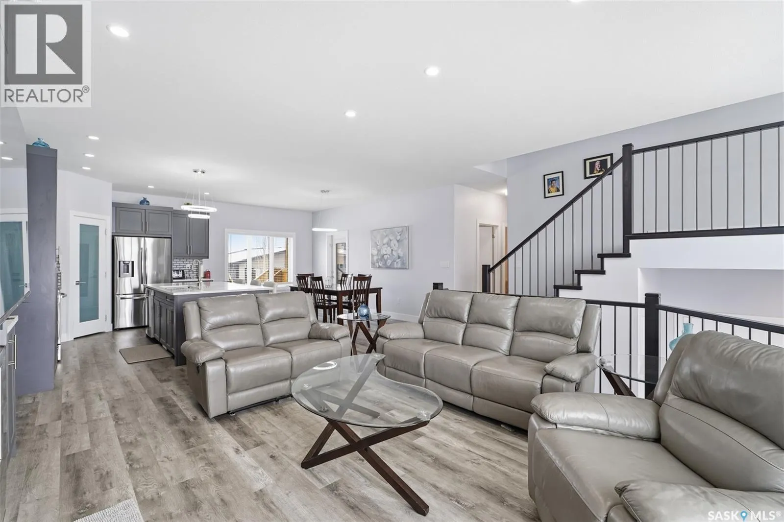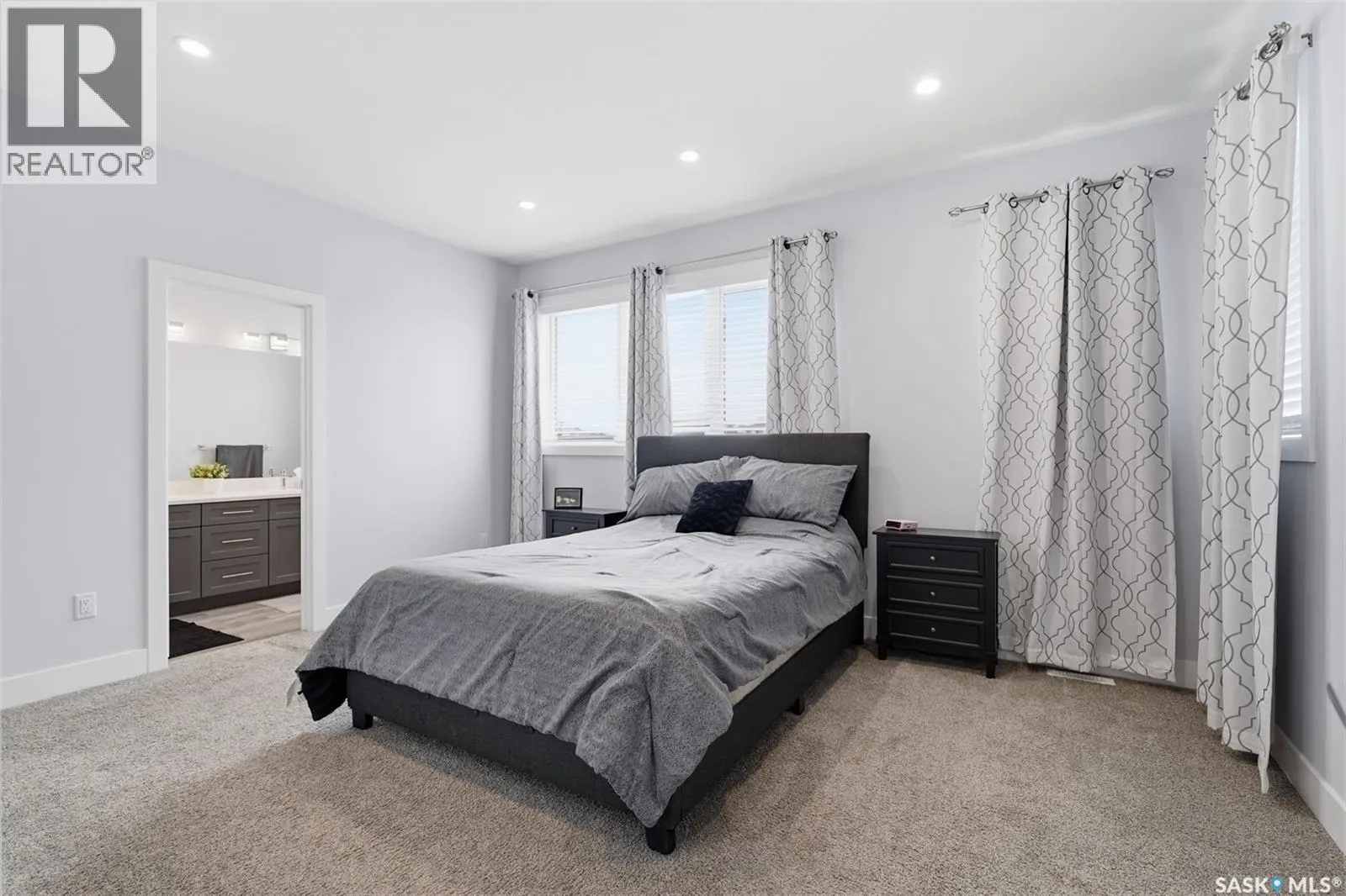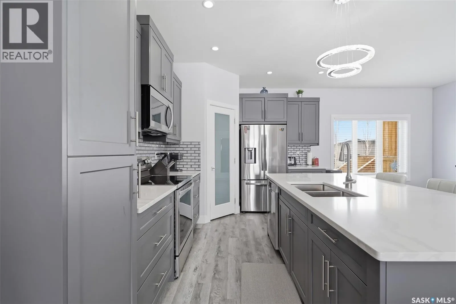 Welcome Home to 406 Hamm Lane in Rosewood, Saskatoon Step into something truly special. Nestled in one of Saskatoon's most sought-after neighborhoods, this stunning modified bi-level in beautiful Rosewood offers the perfect blend of luxury, comfort, and thoughtful design, all just minutes from every amenity you could need, including nearby parks, schools, and everything that makes family living so effortless. Built in 2021 and meticulously cared for, this 5-bedroom, 3-bathroom home offers 1,548 square feet above grade with over 3,000 square feet of total beautifully appointed living space. From the moment you walk in, soaring high ceilings and sun-filled rooms create an atmosphere that feels both grand and warmly inviting. Rich vinyl plank flooring flows throughout, complemented by LED pot lighting and premium light fixtures that set the tone at every turn. Recently upgraded triple pane windows throughout ensure year-round comfort, energy efficiency, and a noticeably quieter home. The heart of the home is a chef-worthy kitchen featuring quartz countertops, a large island, premium Samsung appliances, and a Bosch dishwasher â designed for both everyday living and effortless entertaining. Two gas fireplaces with stunning tile surrounds add warmth and elegance to the living areas, while the spacious master bedroom offers a true retreat you'll never want to leave. Downstairs, a large family and games room provides the perfect space for movie nights, hosting, or simply unwinding. Outside, a beautifully landscaped front and back yard frame a covered private deck complete with three natural gas hookups,ready for your outdoor fireplace, patio heater, and more â making year-round outdoor living an absolute pleasure. The oversized 21' x 26'2" heated garage with two remotes rounds out this exceptional property with the practicality to match its elegance. This home shows a perfect 10 out of 10. Don't miss your opportunity to make it yours â call today to book your viewing. (id:27476)