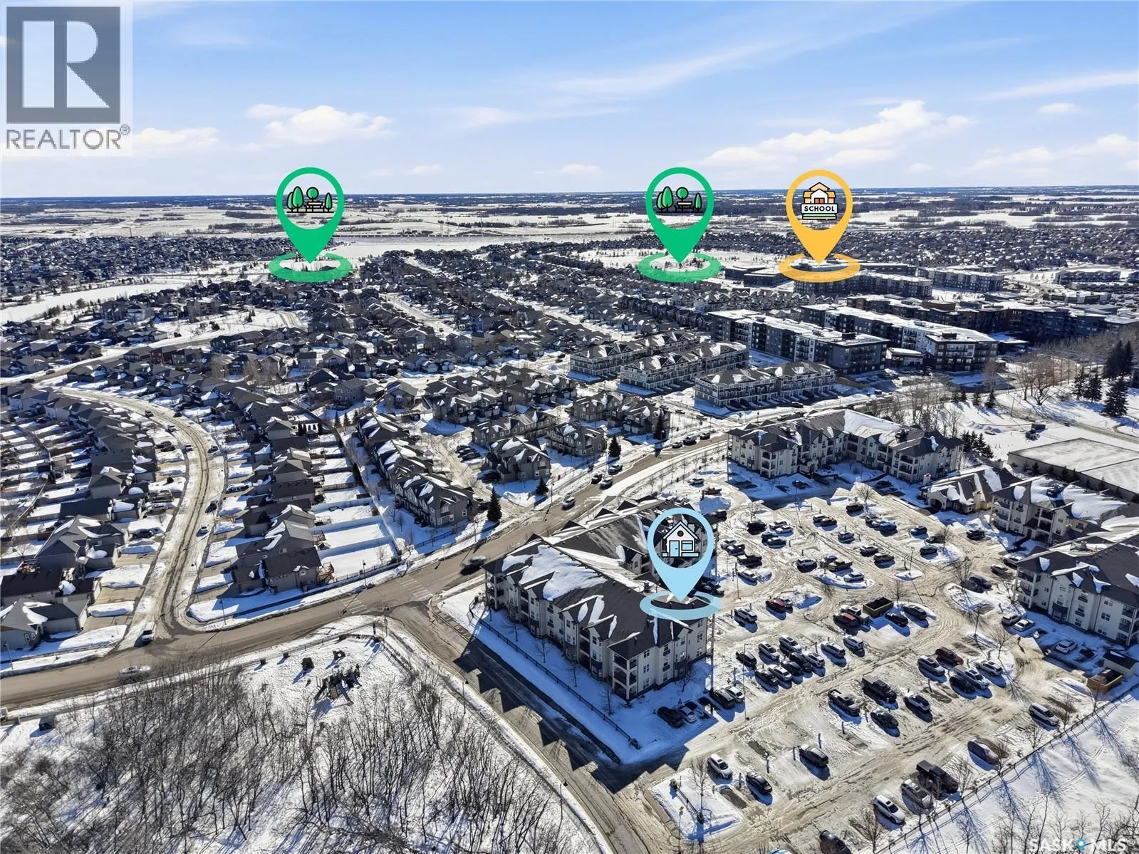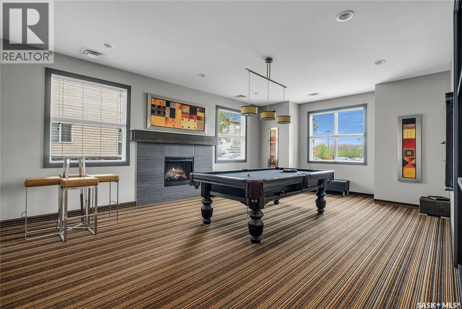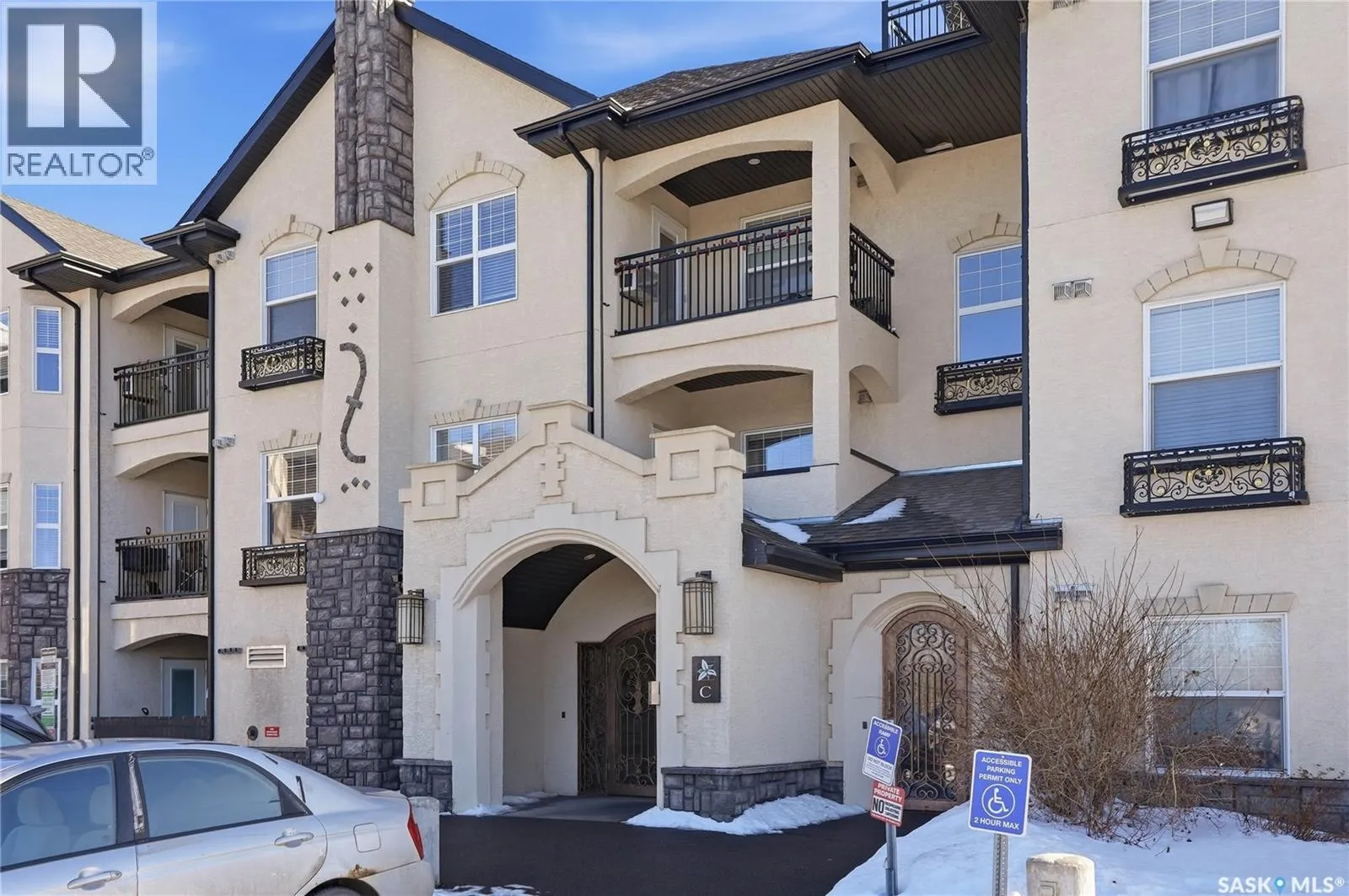 Welcome to 210C â 415 Hunter Road, located in the heart of the highly desired Stonebridge neighbourhood. Situated in Building C, this bright 2 bedroom, 2 bathroom corner unit offers West facing exposures, allowing you to take in beautiful prairie sunsets right from your private balcony. Thoughtfully designed with separated bedrooms, the layout provides excellent privacy ideal for guests, roommates, or a home office setup. The home features a recently replaced washer and dryer, along with fresh carpet in both bedrooms, making it move in ready. Enjoy the convenience of two electrified parking stalls, both located close to the unit. Set within a complex surrounded by treed walking paths, youâll love the peaceful setting while still being centrally located within walking distance to numerous amenities and directly beside a park. Ownership here also includes access to the clubhouse, featuring a well equipped fitness centre and indoor pool for year round enjoyment. Condo fees include heat and water, helping simplify monthly expenses and providing a low-maintenance lifestyle. The complex is pet friendly, allowing up to two pets (dog, cat, bird, or fish) with a maximum weight of 35 lbs. Quick possession is available. Donât miss your chance to own this comfortable, well-located home, contact your agent today to book a showing! (id:27476)