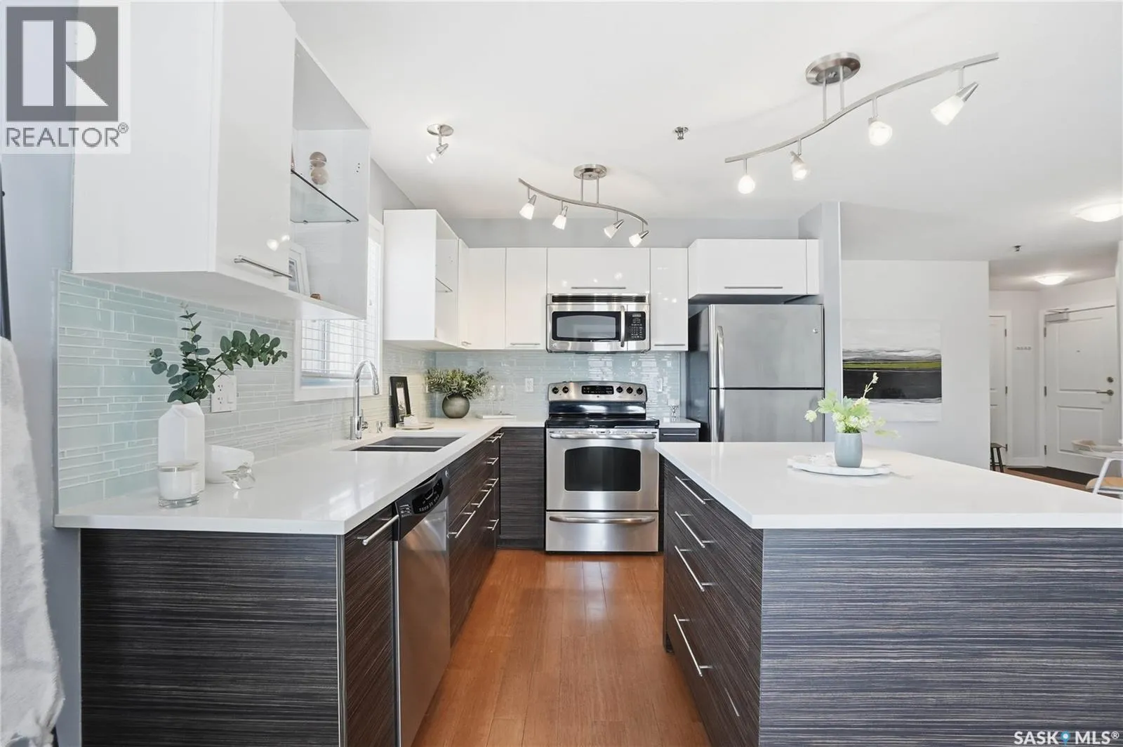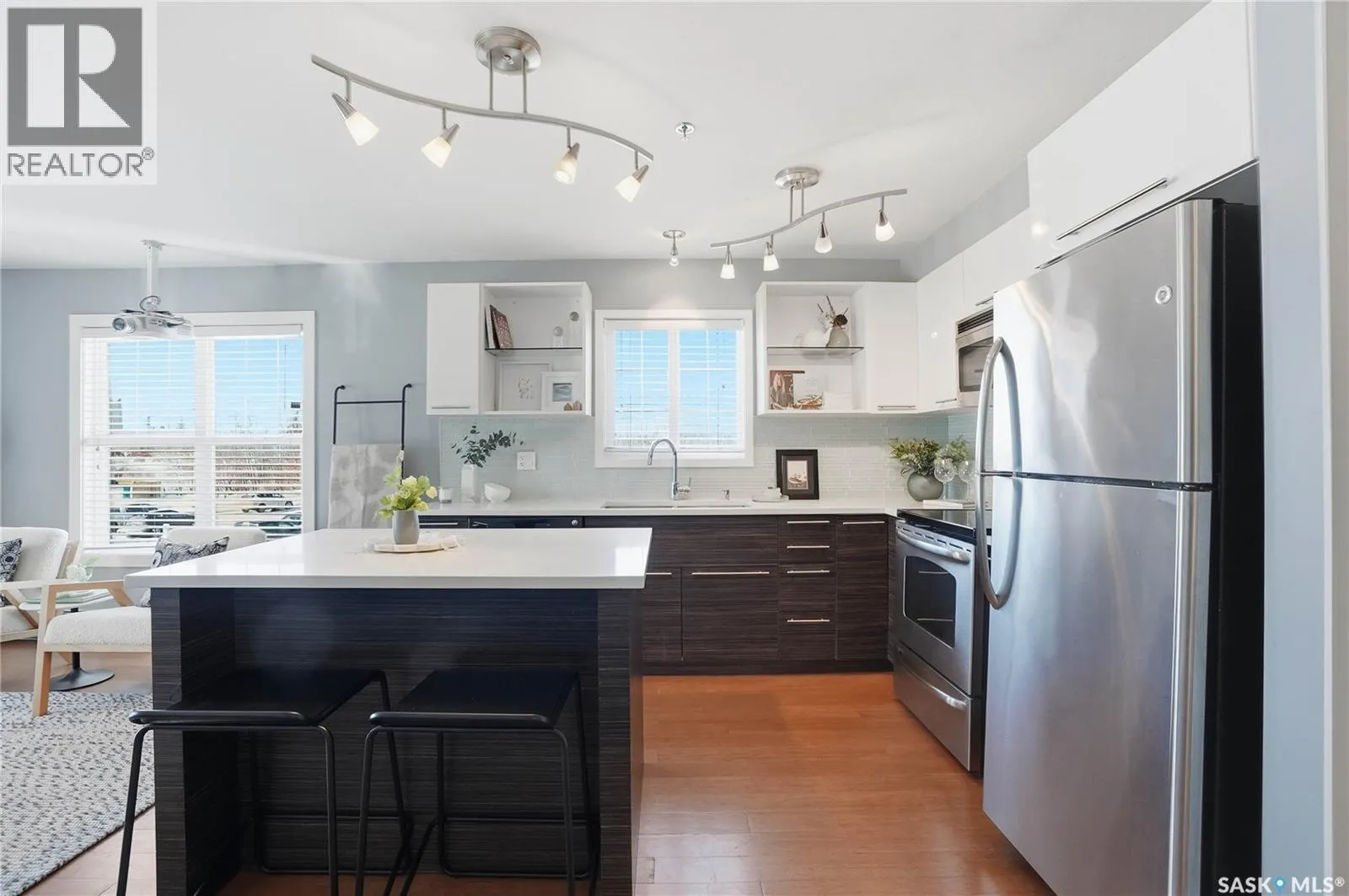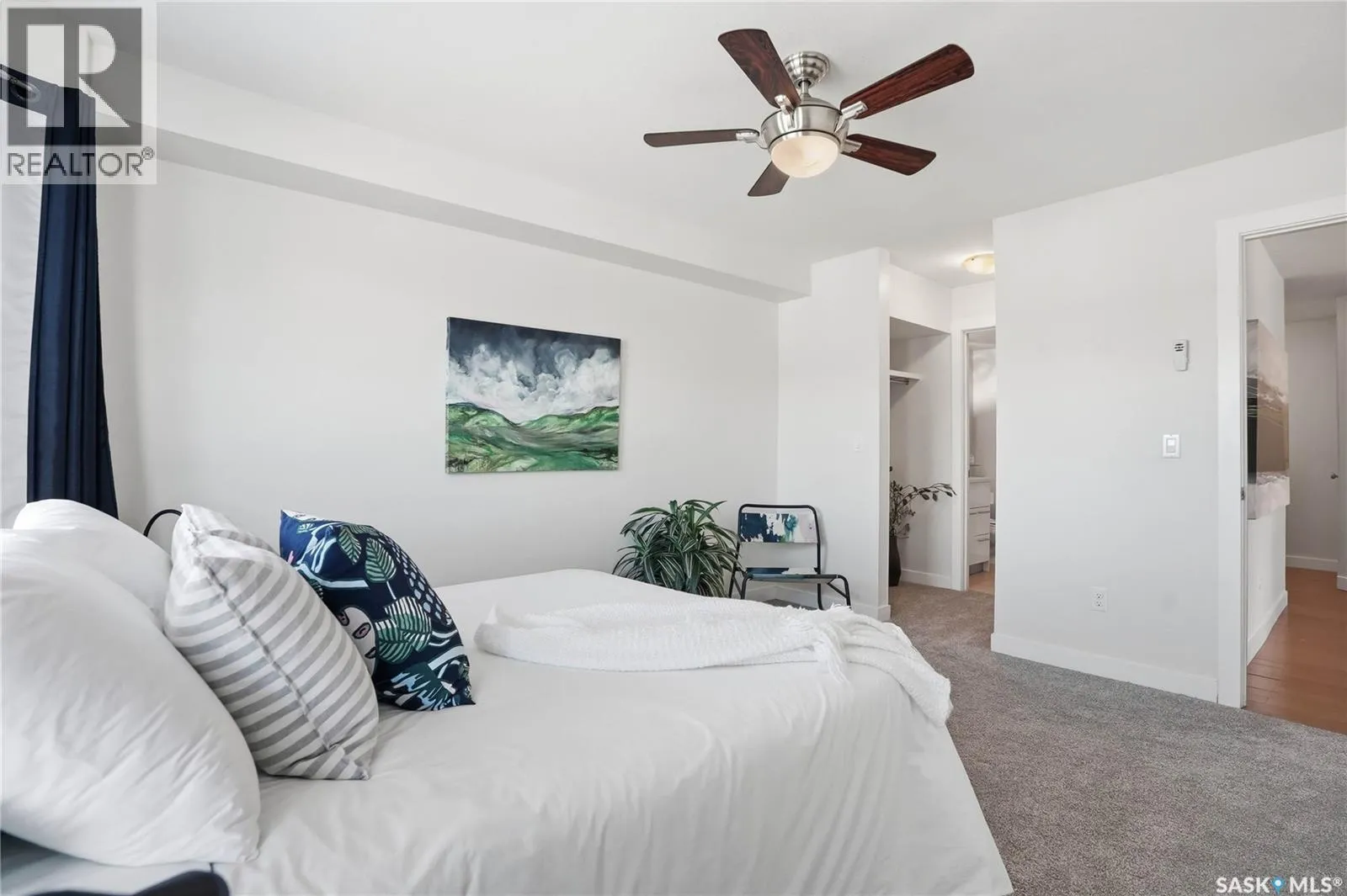 Welcome to 210C â 415 Hunter Road, located in the heart of the highly desired Stonebridge neighbourhood. Situated in Building C, this bright 2 bedroom, 2 bathroom corner unit offers West facing exposures, allowing you to take in beautiful prairie sunsets right from your private balcony. Thoughtfully designed with separated bedrooms, the layout provides excellent privacy ideal for guests, roommates, or a home office setup. The home features a recently replaced washer and dryer, along with fresh carpet in both bedrooms, making it move in ready. Enjoy the convenience of two electrified parking stalls, both located close to the unit. Set within a complex surrounded by treed walking paths, youâll love the peaceful setting while still being centrally located within walking distance to numerous amenities and directly beside a park. Ownership here also includes access to the clubhouse, featuring a well equipped fitness centre and indoor pool for year round enjoyment. Condo fees include heat and water, helping simplify monthly expenses and providing a low-maintenance lifestyle. The complex is pet friendly, allowing up to two pets (dog, cat, bird, or fish) with a maximum weight of 35 lbs. Quick possession is available. Donât miss your chance to own this comfortable, well-located home, contact your agent today to book a showing! (id:27476)