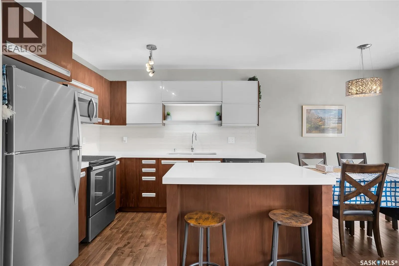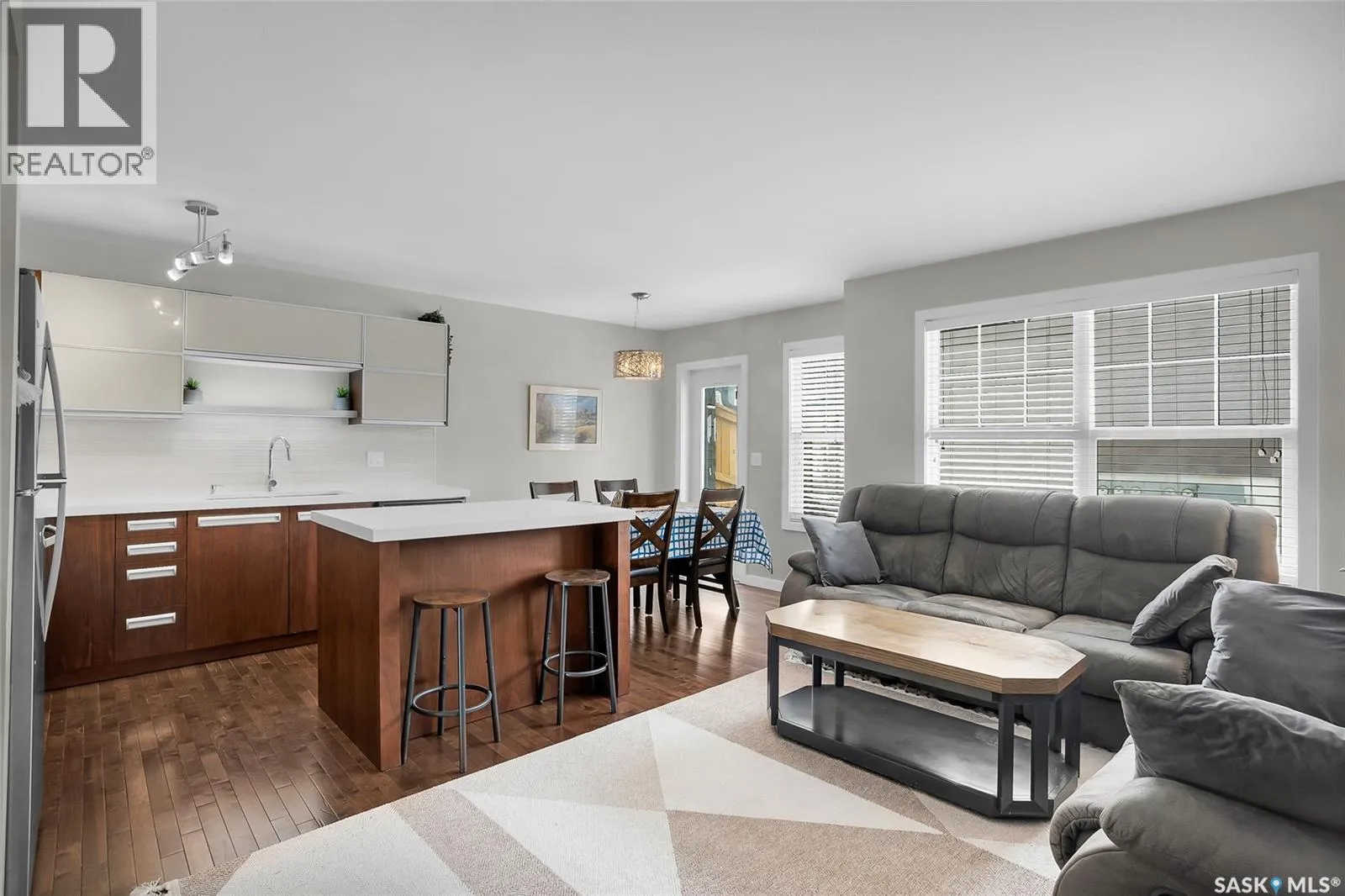 Parcel(s) 202930893, Unit# 34 Welcome to 1303 Paton Crescent #313, located in the highly desirable Willowgrove neighborhood. This beautifully maintained 1,245 sq. ft. townhouse offers 3 bedrooms, 3 bathrooms, and the convenience of an attached garage. This gorgeous east-facing unit is located at the quiet back end of the complex, overlooking beautiful green space and open fields, offering peaceful views and added privacy. The open-concept main floor features maple hardwood flooring throughout the living area and large windows that fill the space with natural light. The modern kitchen is equipped with stainless steel appliances, quartz countertops, walnut doors and trim, and a convenient eat-up island, making it perfect for entertaining. The dining area opens through patio doors to your private concrete patio, ideal for relaxing or enjoying summer evenings. Upstairs, youâll find three spacious bedrooms, including a large primary bedroom with a walk-in closet. A full family bathroom serves all three bedrooms. The fully finished basement adds even more living space with a generous family room, full bathroom, and a dedicated laundry area. Additional recent upgrades include a humidifier and water softener, providing extra comfort and convenience for everyday living. Property is minutes away from Willowgrove School, Holy Family Catholic School, and the convenient shopping and services at University Heights Square, with easy access to parks, amenities, and everyday essentials. Donât miss this opportunity to own a fantastic townhouse in a thriving community! (id:27476)