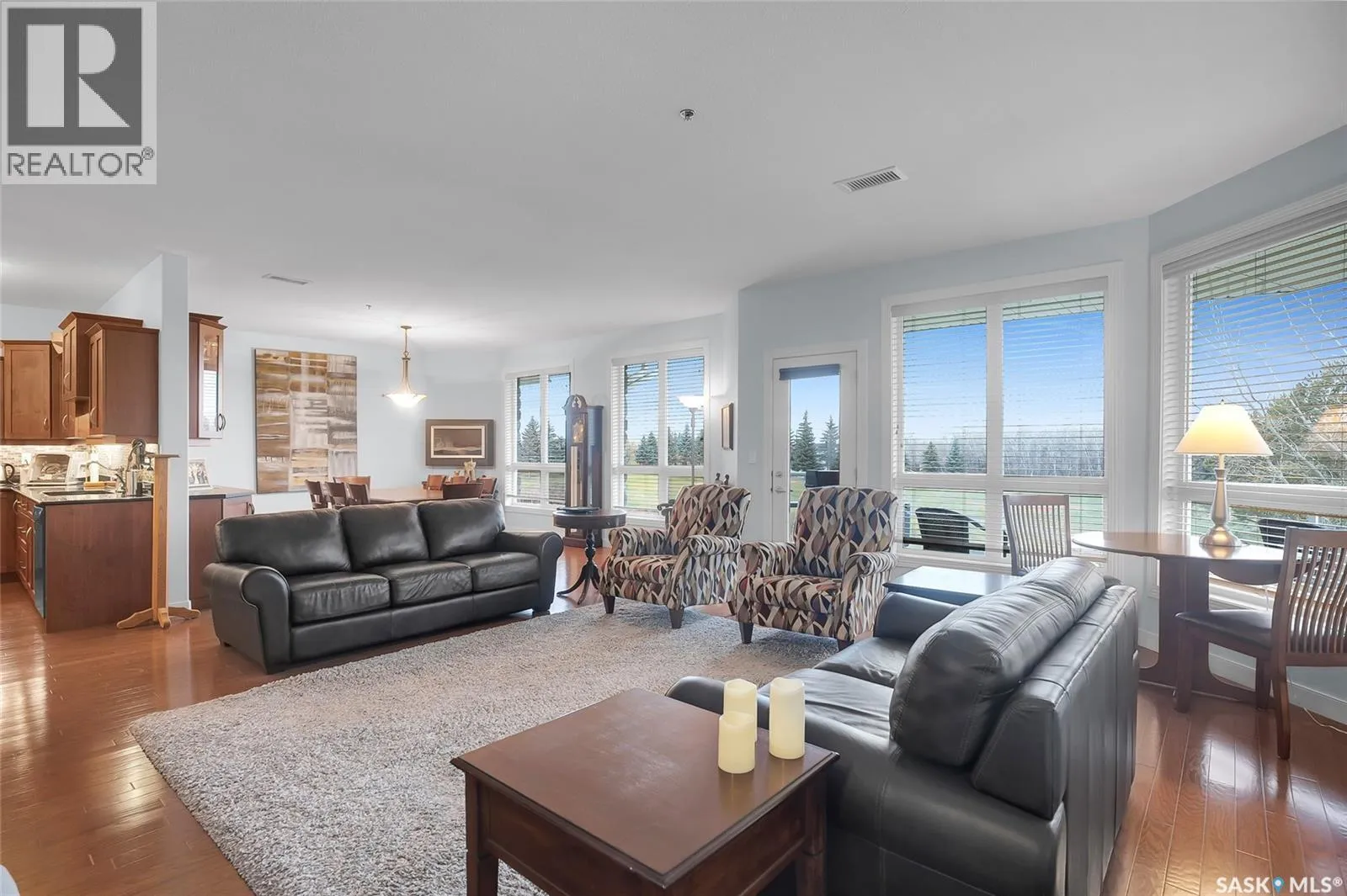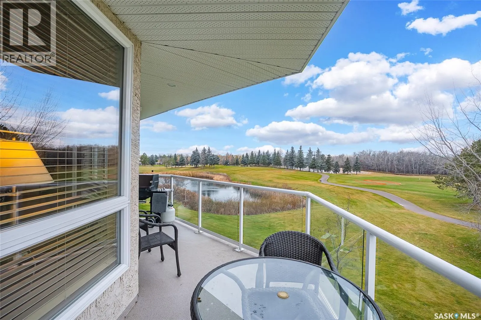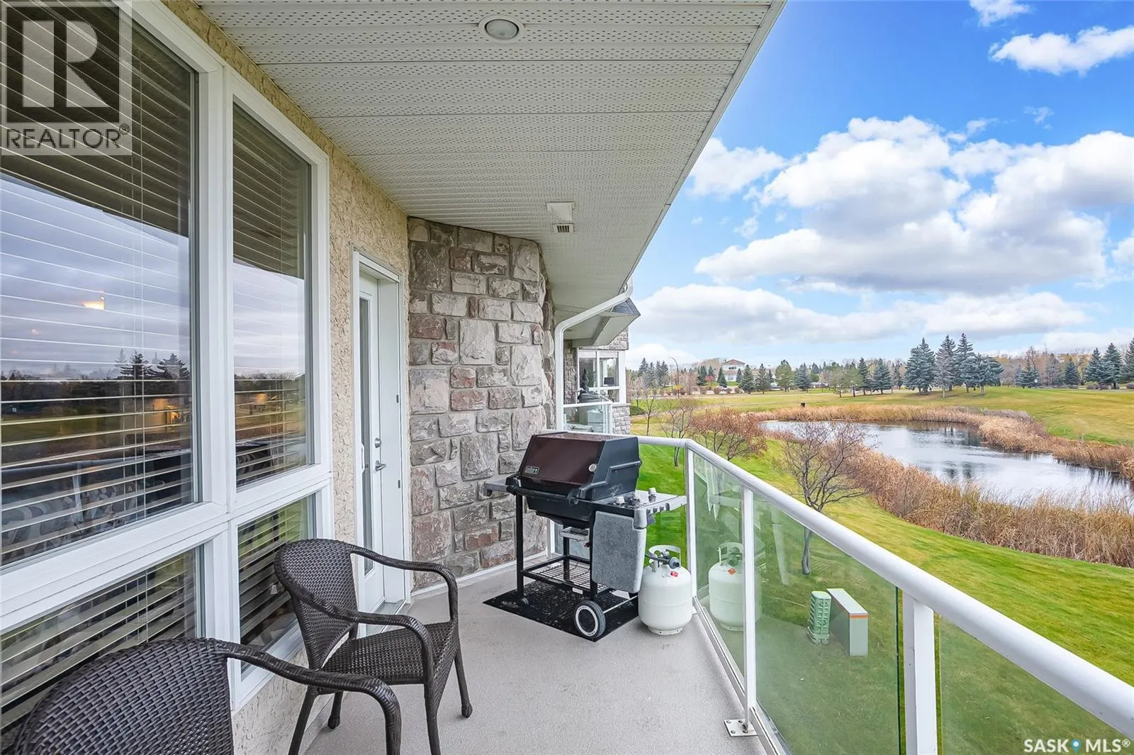 Stunning golf course views await you in this exceptional one owner condo unit. The open floor plan boasts an abundance of natural light pouring in through the numerous windows, showcasing the breathtaking scenery outside. Soaring nine foot ceilings add to the sense of spaciousness, creating an ideal atmosphere for entertaining and relaxation. The gourmet kitchen is equipped with high-quality cabinets, sleek granite countertops, and stainless steel appliances, including a newer refrigerator. The adjacent dining room features custom-designed cabinets, complete with a built-in wine fridge, bar fridge, and sink, perfect for hosting friends and family. Five piece ensuite bath offers his and hers sinks, and a walk-in closet. Step out onto the expansive wrap-around balcony, where you can soak in the panoramic golf course views and enjoy the fresh air. This condo unit also comes with a range of desirable amenities, including an exercise room, amenity room, and a spacious storage locker. Parking is convenient, with one heated underground stall, and one surface stall, as well as a wash bay for washing your vehicle. Visitors will appreciate the abundance of parking options available. Don't miss this incredible opportunity to own a piece of golf course paradise! (id:27476)