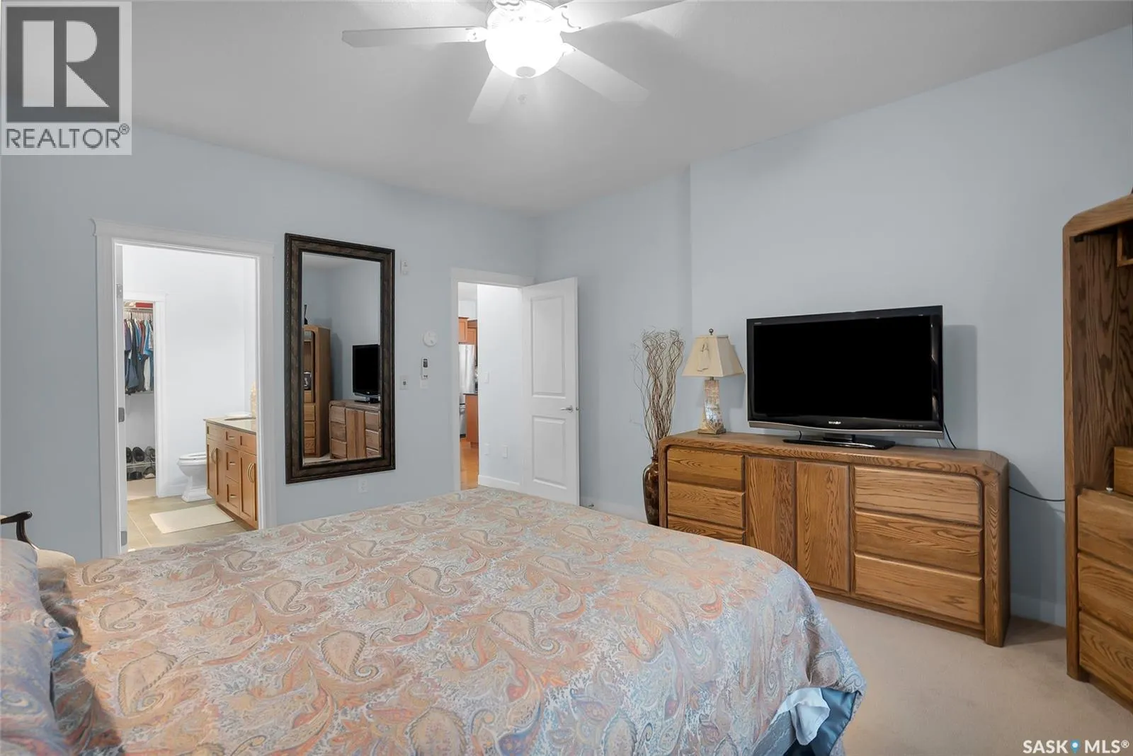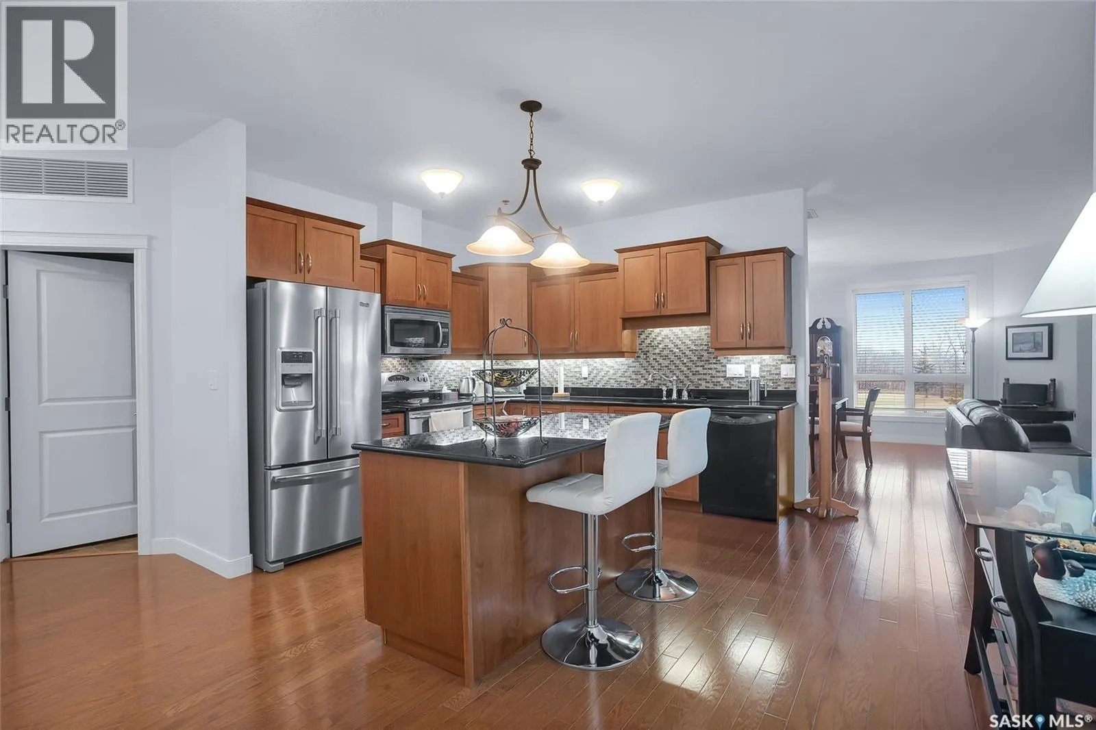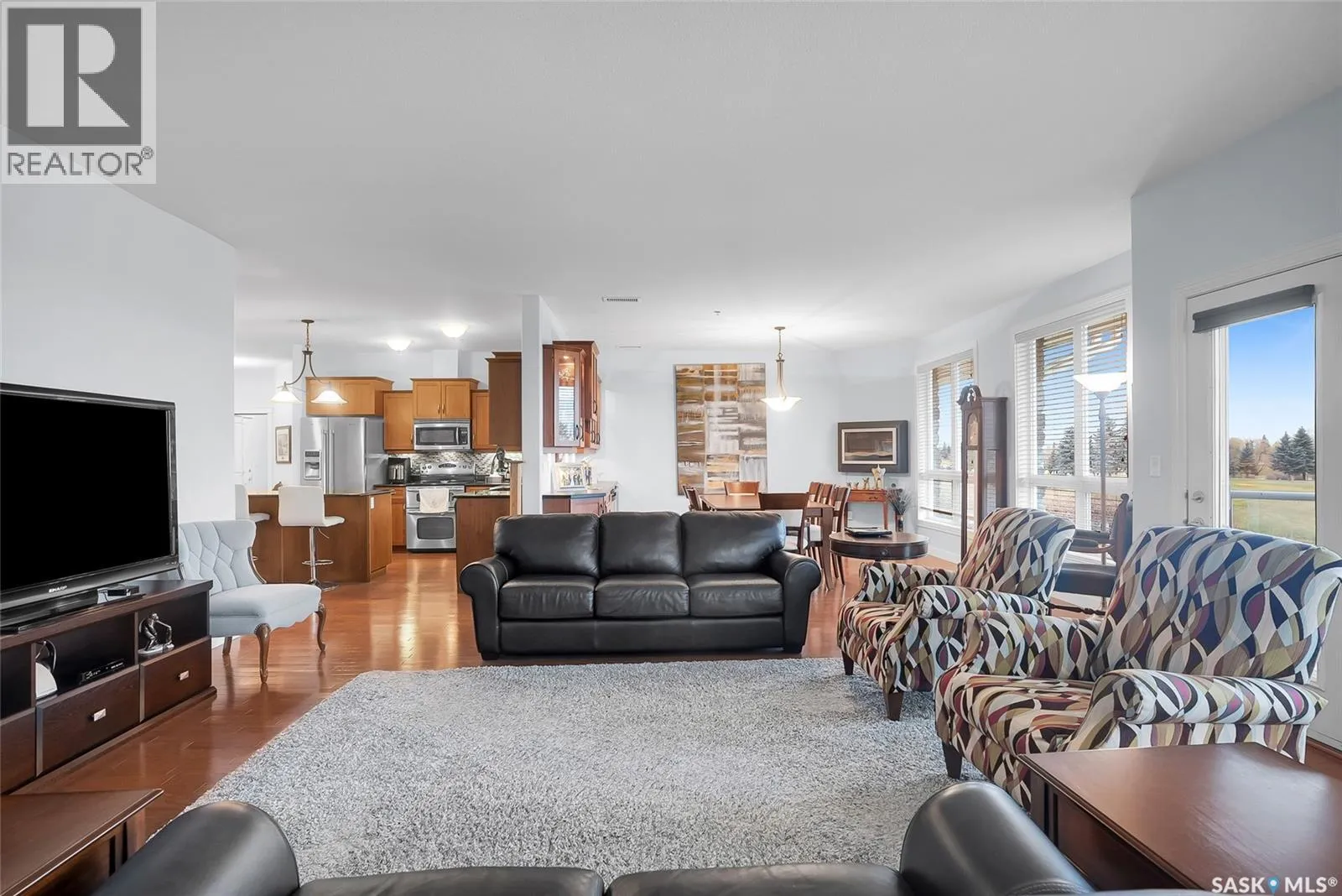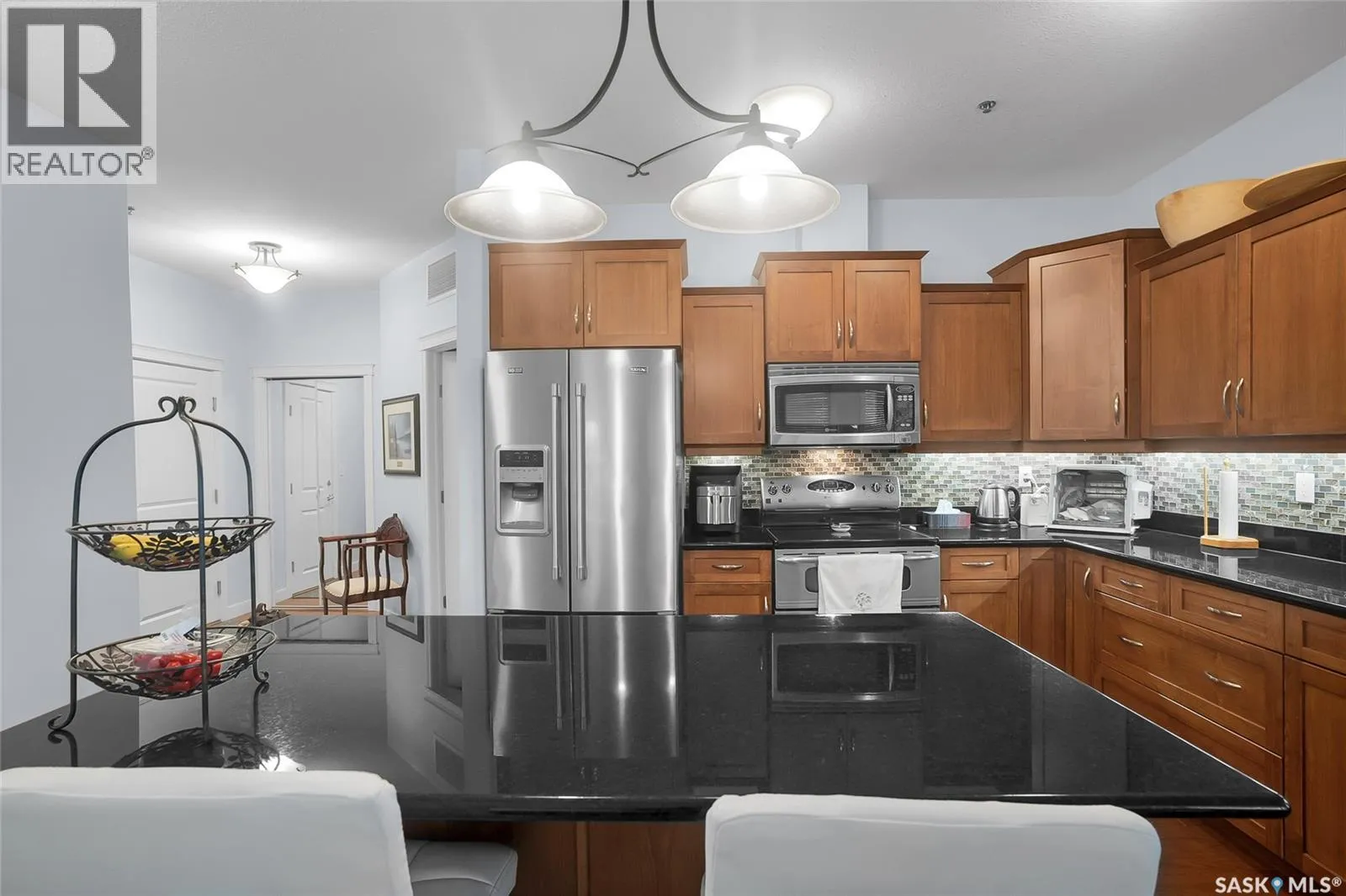 Stunning golf course views await you in this exceptional one owner condo unit. The open floor plan boasts an abundance of natural light pouring in through the numerous windows, showcasing the breathtaking scenery outside. Soaring nine foot ceilings add to the sense of spaciousness, creating an ideal atmosphere for entertaining and relaxation. The gourmet kitchen is equipped with high-quality cabinets, sleek granite countertops, and stainless steel appliances, including a newer refrigerator. The adjacent dining room features custom-designed cabinets, complete with a built-in wine fridge, bar fridge, and sink, perfect for hosting friends and family. Five piece ensuite bath offers his and hers sinks, and a walk-in closet. Step out onto the expansive wrap-around balcony, where you can soak in the panoramic golf course views and enjoy the fresh air. This condo unit also comes with a range of desirable amenities, including an exercise room, amenity room, and a spacious storage locker. Parking is convenient, with one heated underground stall, and one surface stall, as well as a wash bay for washing your vehicle. Visitors will appreciate the abundance of parking options available. Don't miss this incredible opportunity to own a piece of golf course paradise! (id:27476)