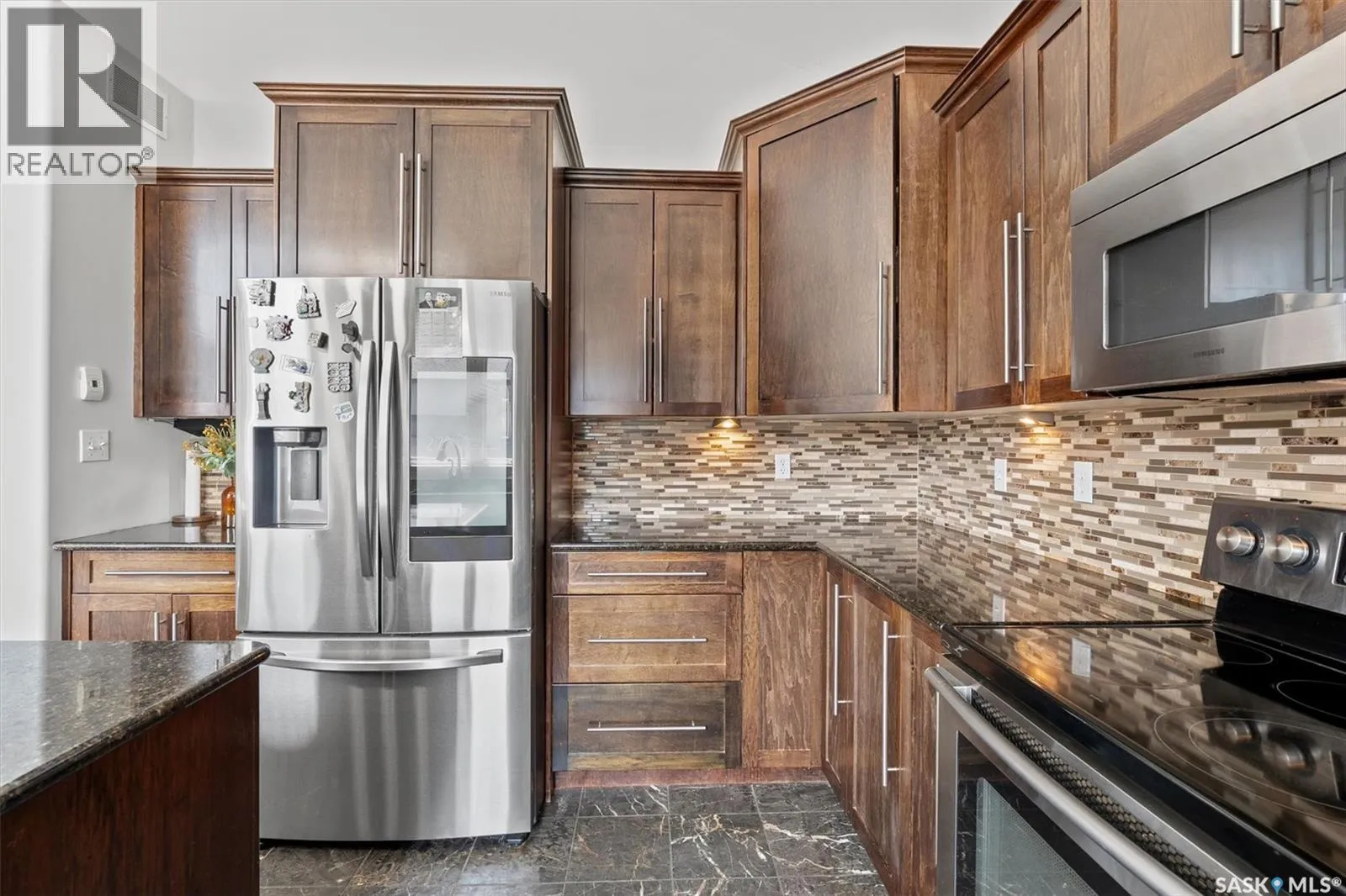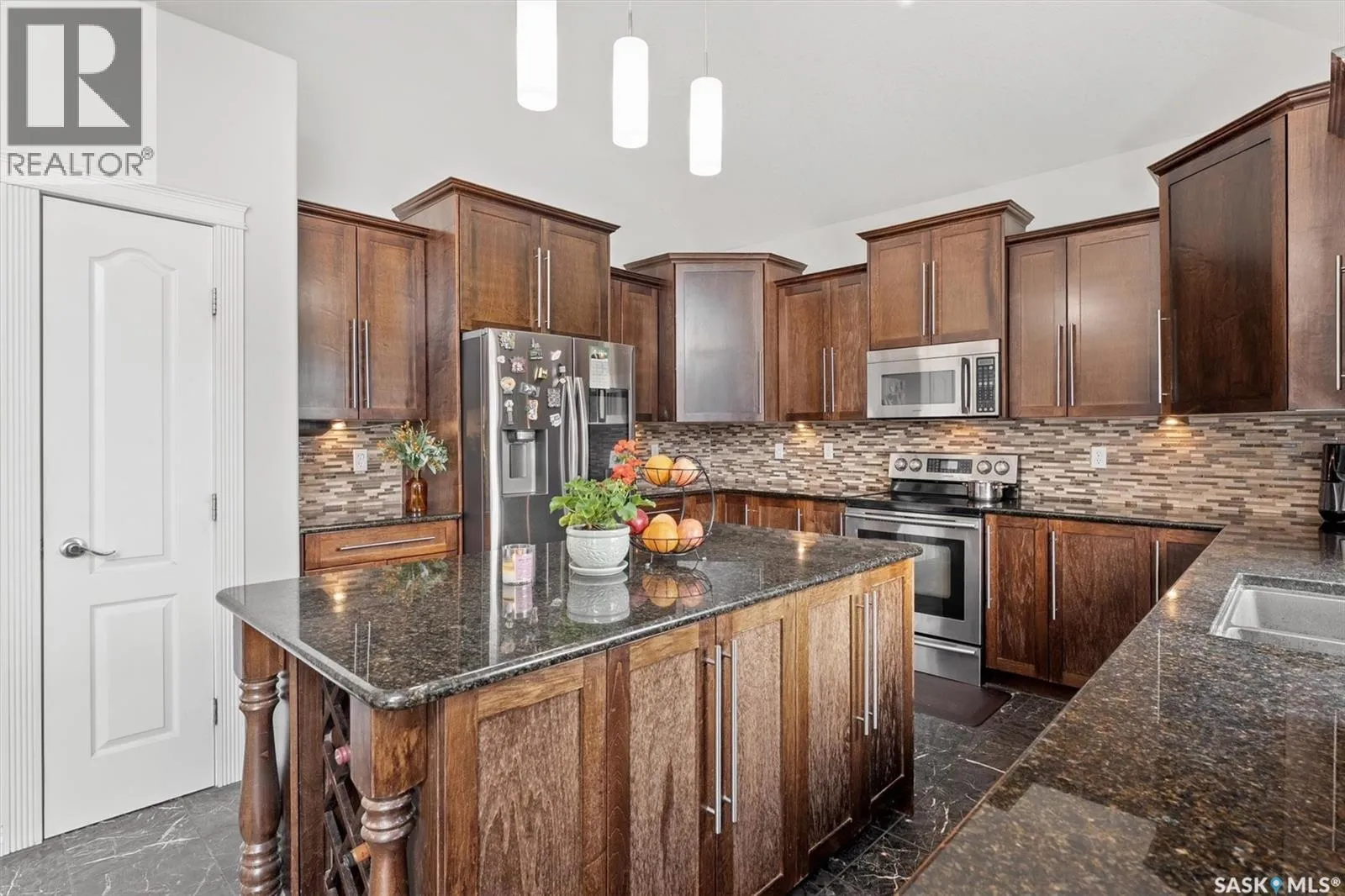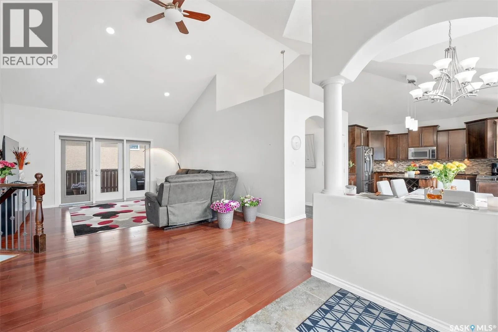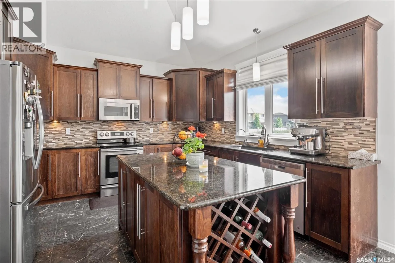 open house: Saturday (Mar.28) 1:00-3:00pm & Sunday (Mar.29) 1:00-3:00pm fully developed custom built bungalow in Willowgrove community. Close to school and community plaza. owner change a new modern refrigerator in 2023, and a new garage door in 2025. The house featured with an open concept and heated kitchen tile flooring with vaulted ceiling, exotic hardwood. Granite counter top and soft close drawers in the large kitchen, and the building in wine rack in the island. comfortable and large living room with patio door can access to the beautiful private deck and yard. The 10' tray ceilings of the master bedroom features with a double-sink 5 piece ensuite bathroom, heated mirror and walk in closet. 2 other good size bedrooms share a 4-piece bathroom. The laundry room also stays in the main floor. The energy-save ICF block basement features with a large family/recreation room, a good size bedroom, a modern 3-piece bathroom, 2 dens (one is used for workshop, the other one is for gym). Other feature: central air condition, heated and insulted garage. Only 2 blocks to the school, close to many other amenities. Welcome to show this move-in status beautiful house! (id:27476)