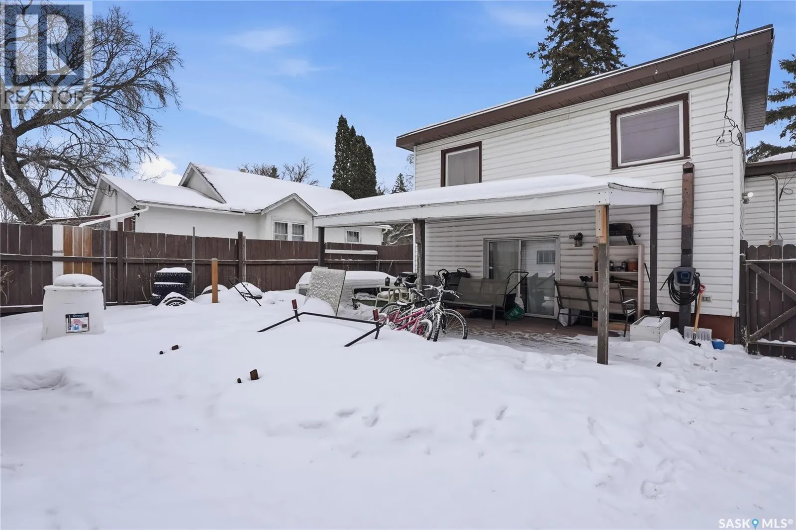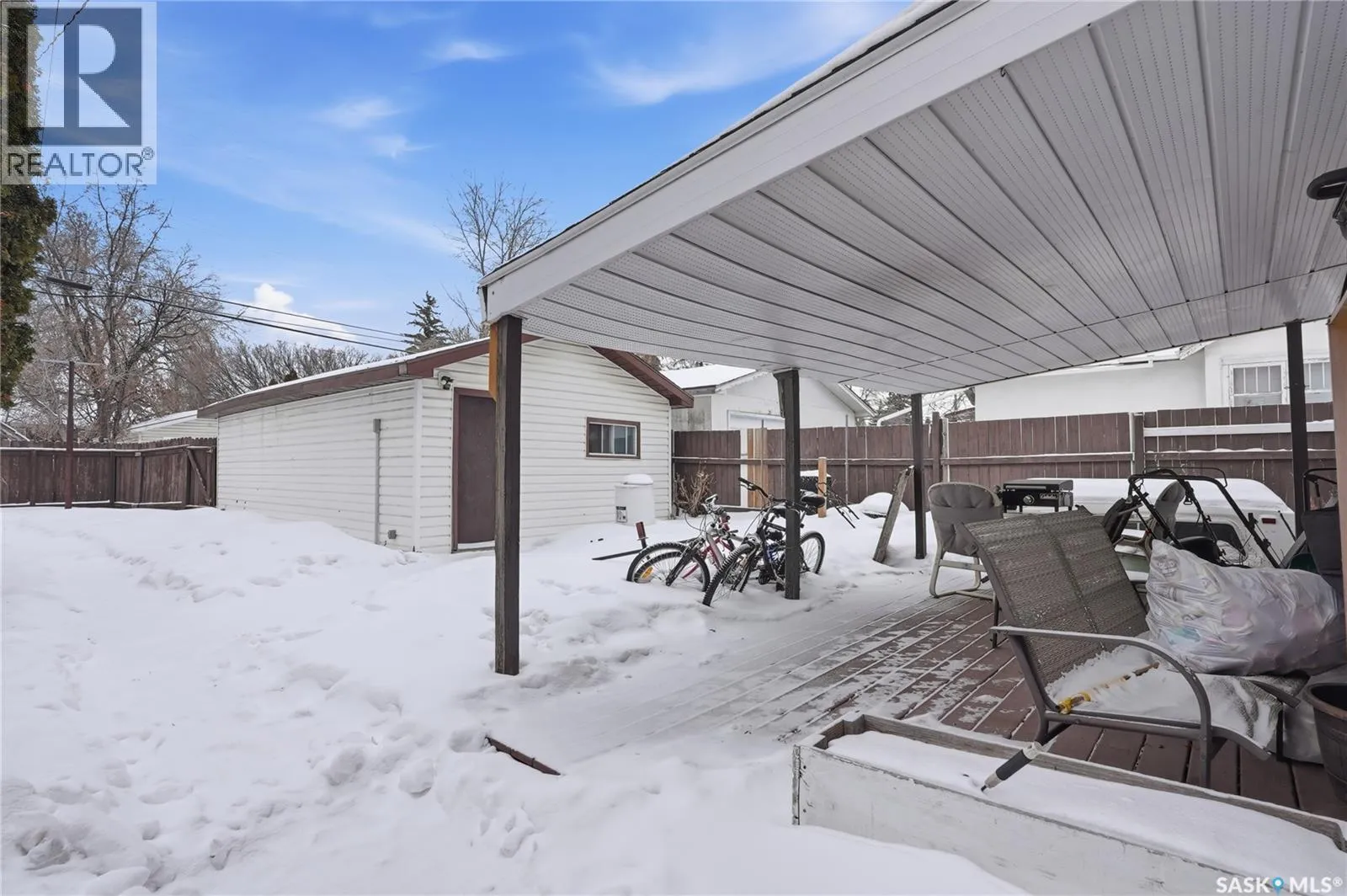 PARCEL 119839191 Introducing 100 Cruise Street in Forest Grove. This home offers a unique and versatile layout with generous living spaces, 3 bedrooms, and 2 bathrooms. The attached garage has been thoughtfully converted into a spacious family room with direct access to the backyard. Enjoy the private outdoor space featuring mature trees, a deck, covered patio area, and an oversized single detached garage with alley access on a 50 x 120 corner lot. The property is R2 zoned, offering potential flexibility for future use. Whether you're a first-time buyer, investor, or looking for a home in a convenient location, this property offers great potential. Just minutes from the University of Saskatchewan, Preston Crossing, parks, schools, and major bus routes. (id:27476)