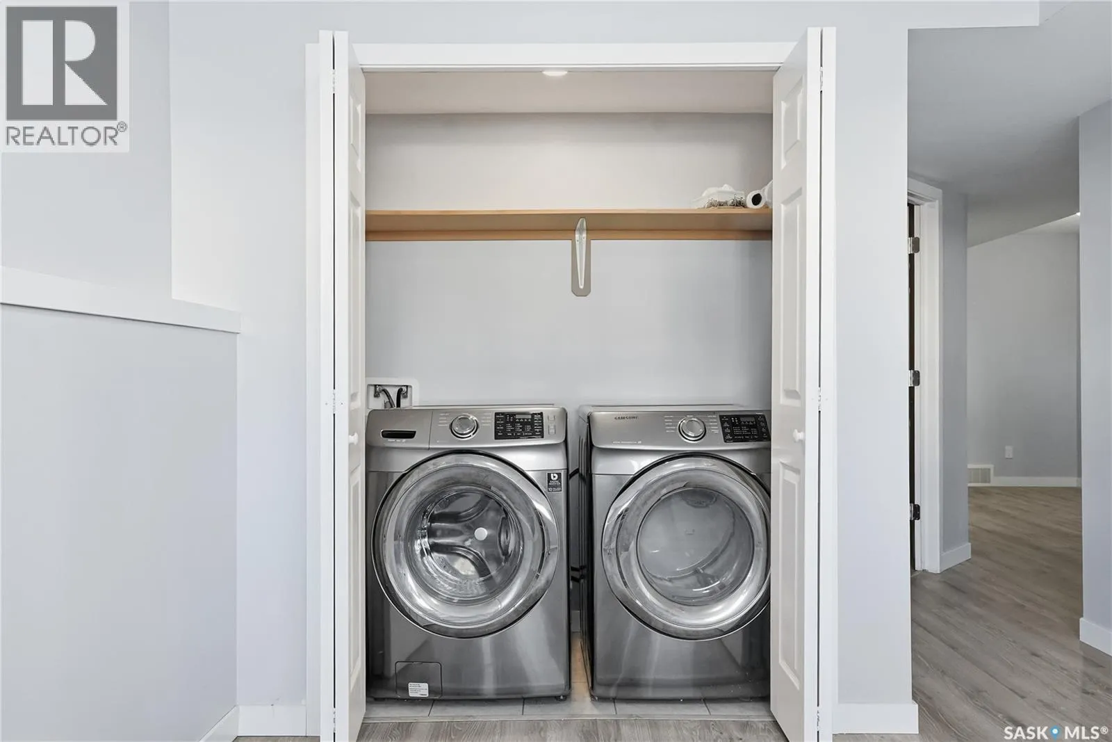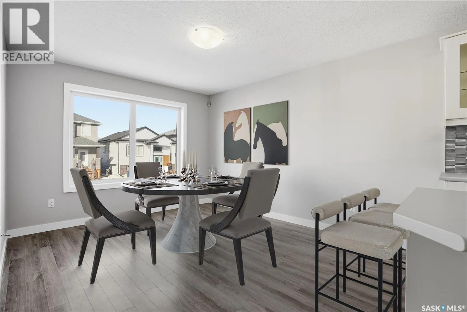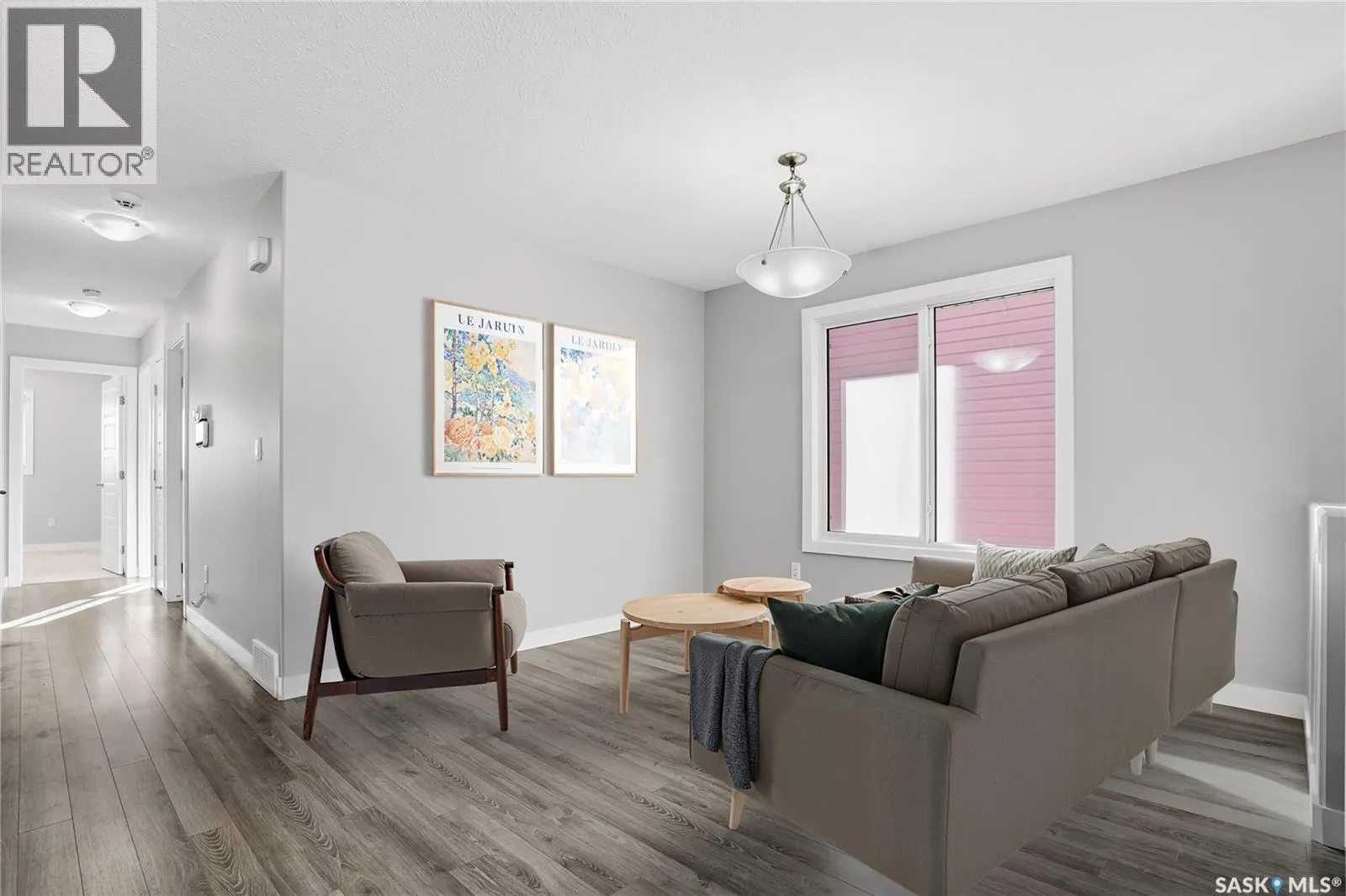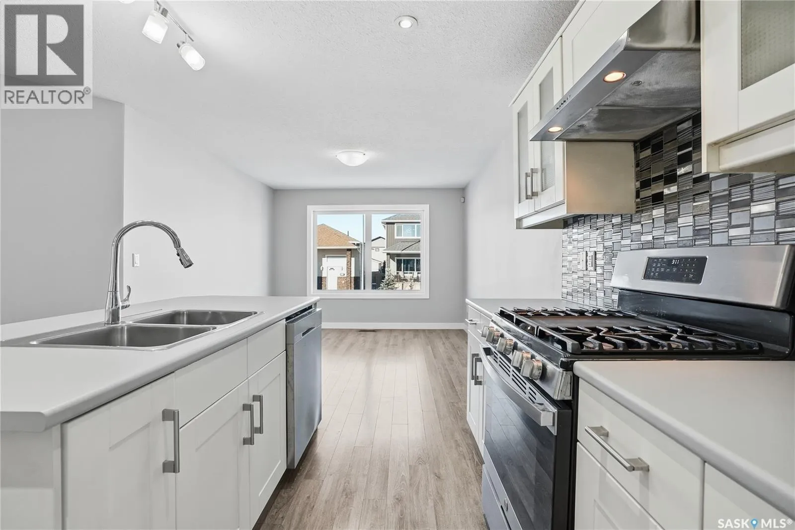 A great opportunity for a family home with the potential to add a 2-bedroom basement suite in Evergreen! This modern bi-level offers 3 bedrooms and 1 bathroom upstairs, along with a fully finished basement with an additional bathroom, with a separate exterior entrance. upper layout with open-concept living area, kitchen/dining area complete with stainless steel appliances (recently upgraded dishwasher), natural gas range, tile backsplash & island. Main bedroom features a generously-sized walk-in closet, 2 ample-sized bedrooms provide an ideal setup for families. Fresh paint throughout the upper level. Lower level is perfectly planned for the future development of a secondary suite, with a separate entrance and a split family room area that could be dedicated for the use of the upper level occupants. Basement is fully finished and turn-key for full single-family usage, with a layout that could easily accommodate a 2-bedroom suite with some minor renovations. Ample-sized back yard with a 2-car garage, patio area, and finished landscaping & fencing. Whether you're looking for an affordable single-family home, or the perfect opportunity to take advantage of the recently-extended Saskatchewan Secondary Suite Initiative (government grants available for development of secondary suites, Buyer to confirm their eligibility) - this is a smart purchase with excellent potential! Note: some images have been digitally staged. (id:27476)