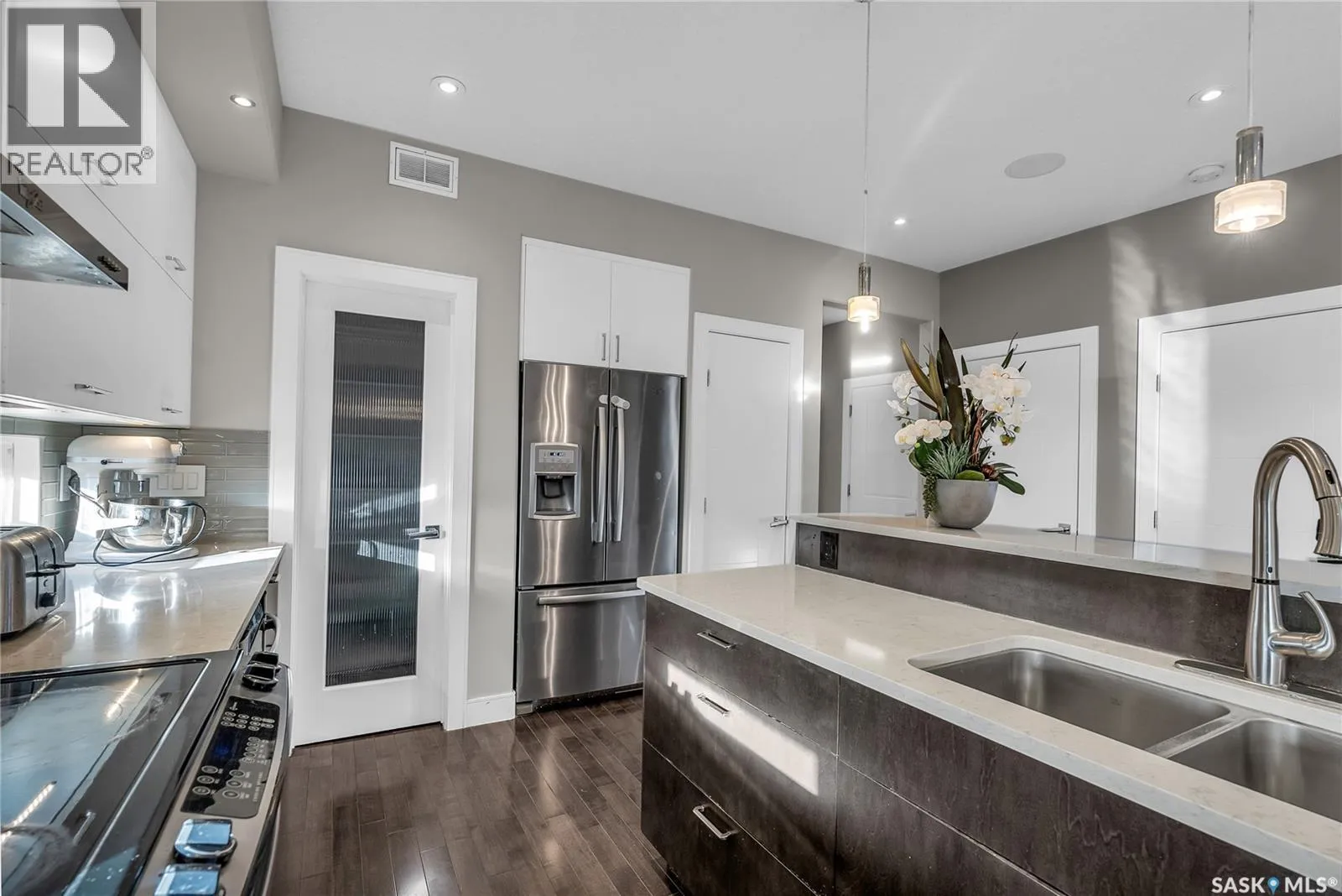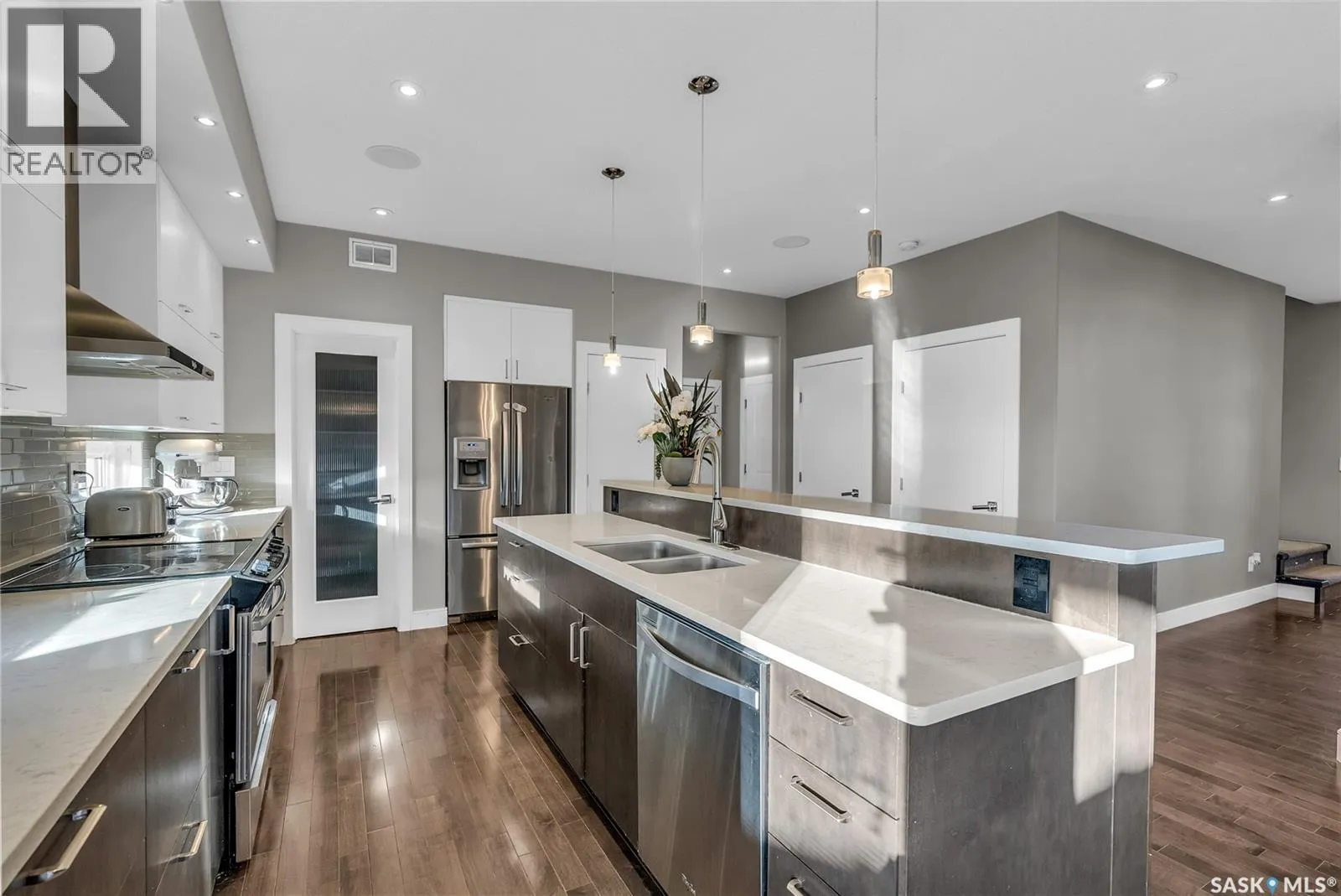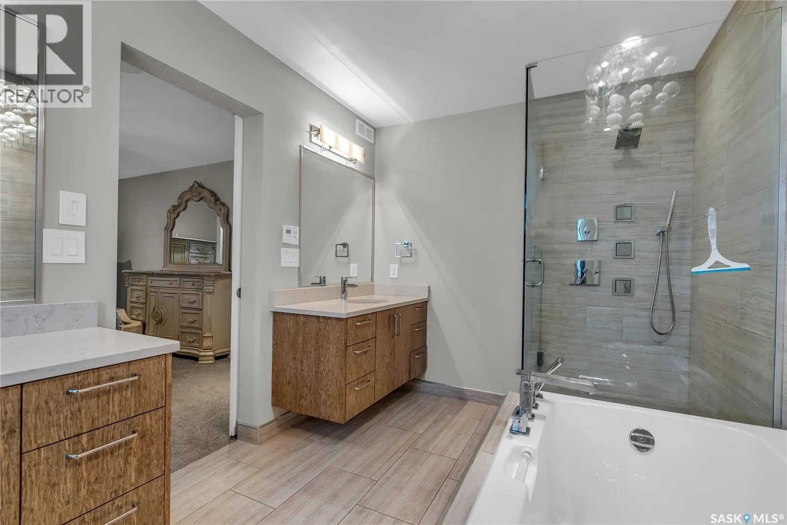 A spacious home with well-proportioned rooms, striking floor to ceiling windows and an abundance of light throughout. This Evergreen - neighbourhood-home proudly sits on a quiet court thatâs adjacent to green spaces and walking paths, while the all stone and stucco exterior combined with the inlaid brick driveway, proudly boasts easy maintenance and beautifully timeless street appeal. Upon entering this 5 bedroom, 4 bathroom fully developed home you will find a front facing living room that features a tastefully tiled floor to ceiling 2-sides fireplace, and a spacious kitchen with stone counter tops, large breakfast bar and dining room, plus large walk-in pantry and 1/2 bath. Notables features of the 2nd level; a large laundry room with built in storage and linen cabinets, and a DELUXE primary suite with a bonus room from beyond the walk-in closet that works well as a den, a nursery or an extension of the walk in closet, and a beautiful 5 piece ensuite bathroom, offering double sinks and separate tub/shower. The developed basement offers a large family room, computer nook, 2 large bedrooms, a 3 piece bathroom and plenty of storage space. The deep back yard is ideal for the garden enthusiasts or for those desiring to add a swimming pool. Additional features include central air and built in speakers through out the main floor, garage and deck area. An ideal family home all around! (id:27476)