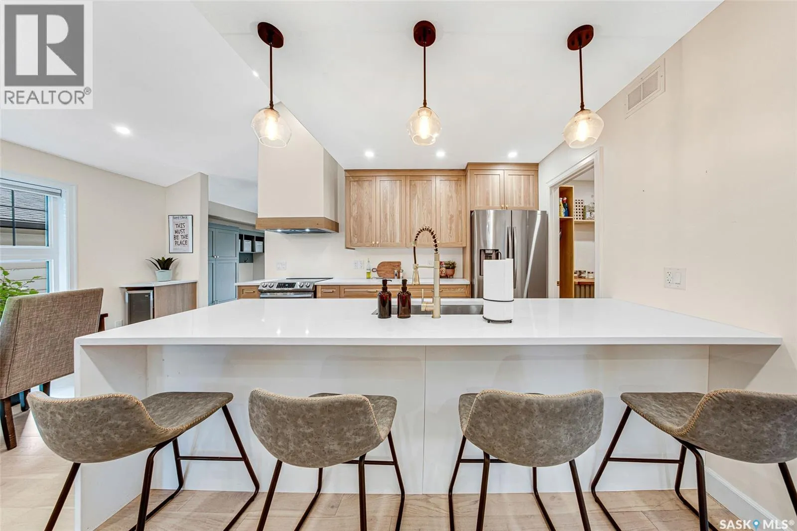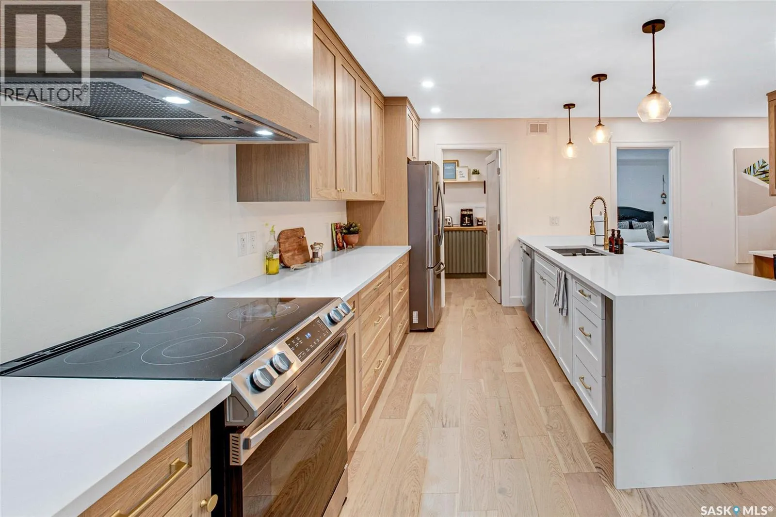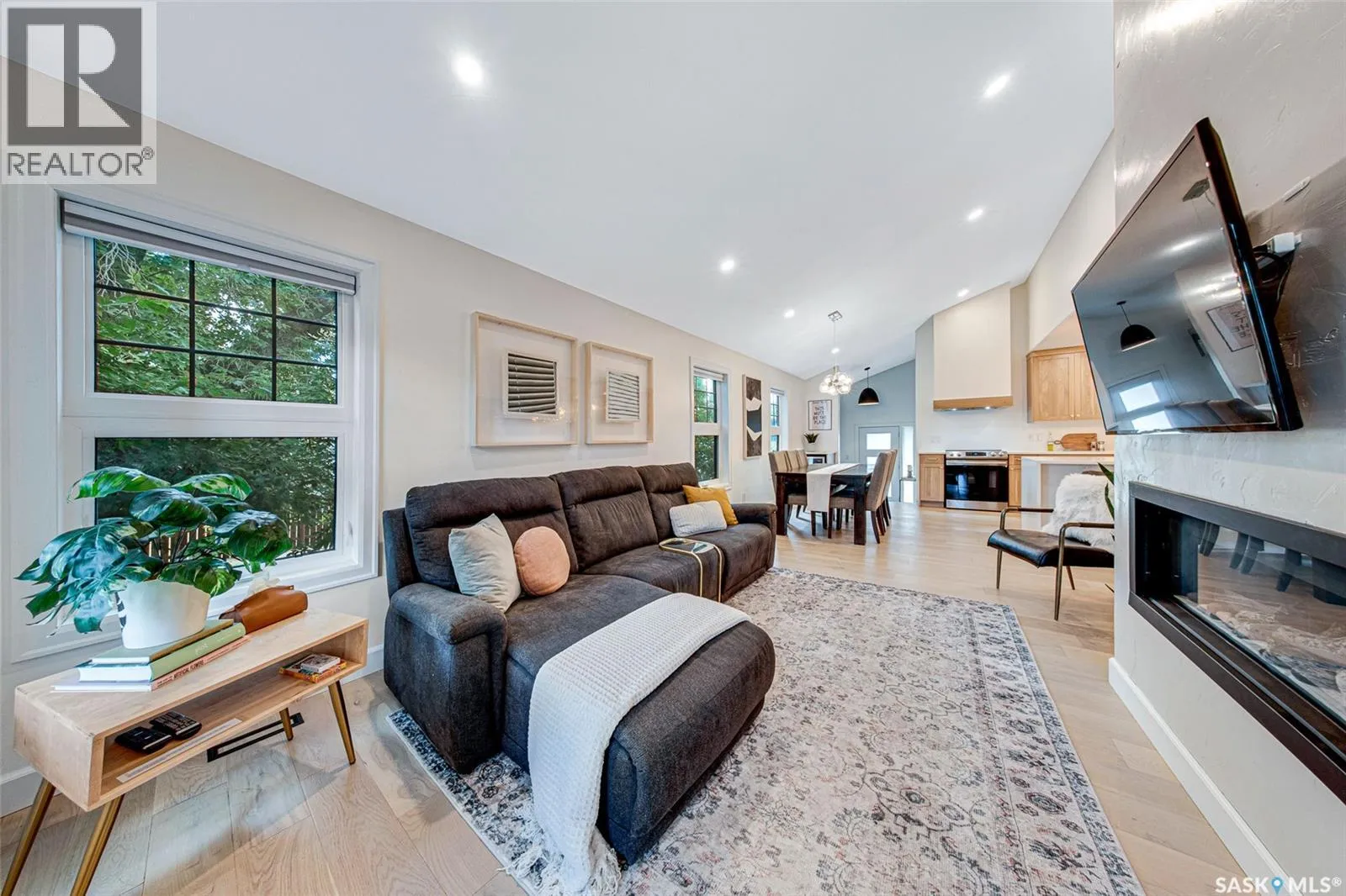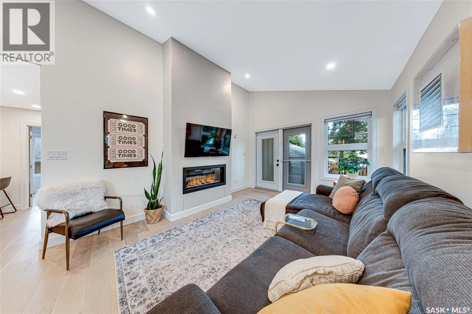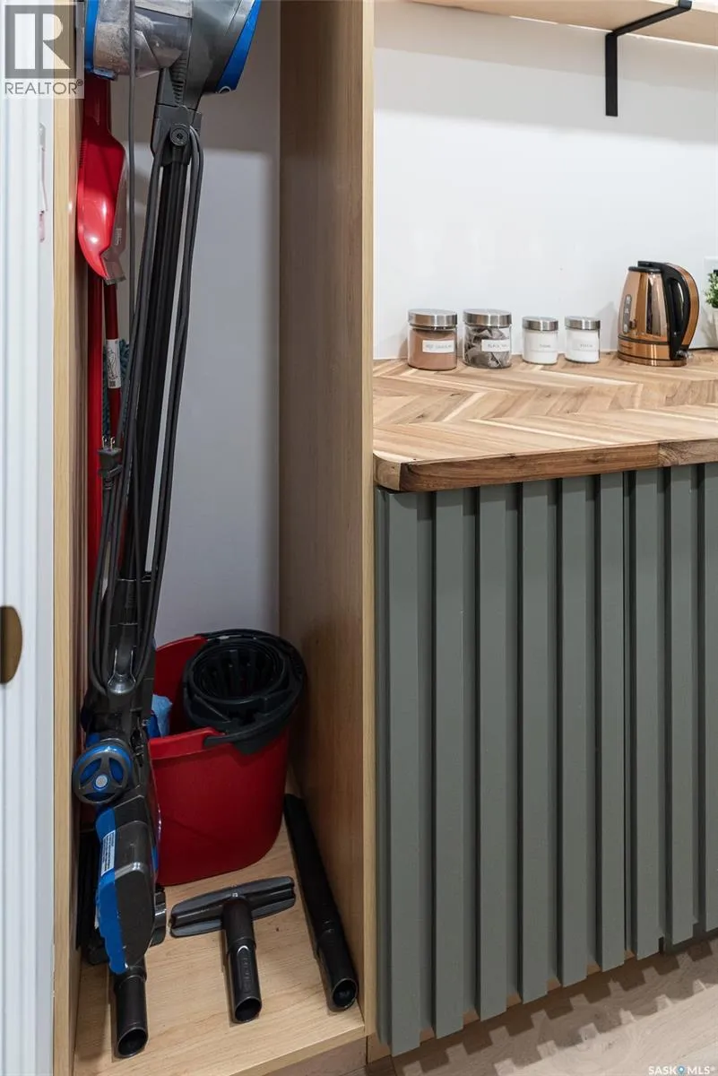 Welcome to this Holiday Park gem! This modern built 2 bed, 2 bath bungalow is sure to impress. Upon entering you are welcomed by the engineered hardwood flooring, the wood accents, the gold hardware, and the gas fireplace! The elegant kitchen will turn heads with quartz counter tops, custom cabinets, walk in butlers pantry and a wooden range hood. Master bedroom is warming with the wood work ceiling along with the eye catching tile in the ensuite. Other key notables: 2 car heated attached garage, 2 car detached garage, all appliances, heated ensuite floors, and there is a separate entry for a future possible suite (panel already installed) Located across from Gordie Howe Park, you can take advantage of the greenspace, the ball diamonds, the hockey rinks, the football fields, as well as being close to all amenities!! Don't miss out on this one!! (id:27476)