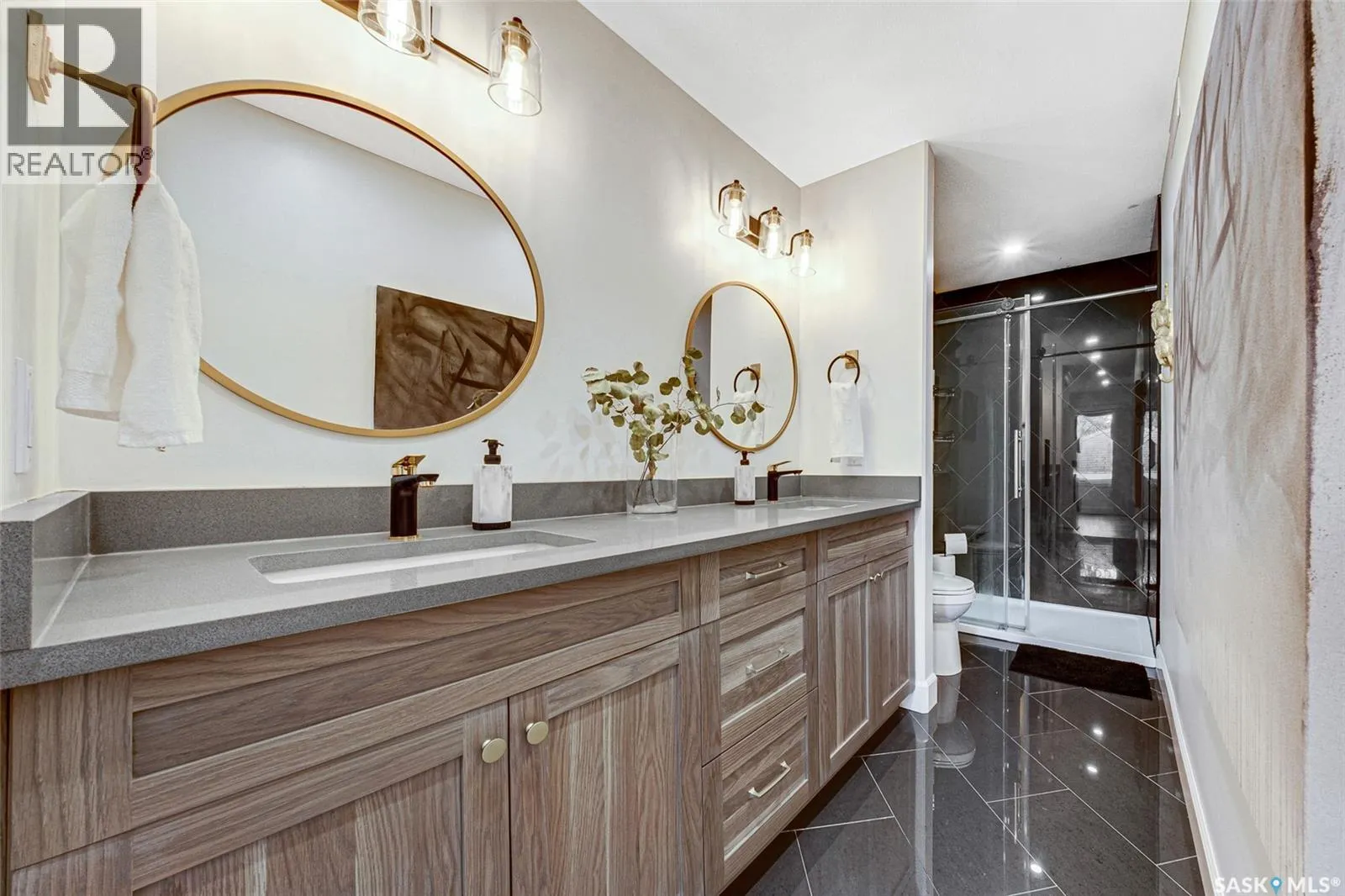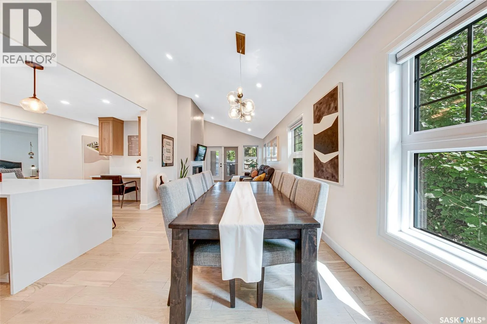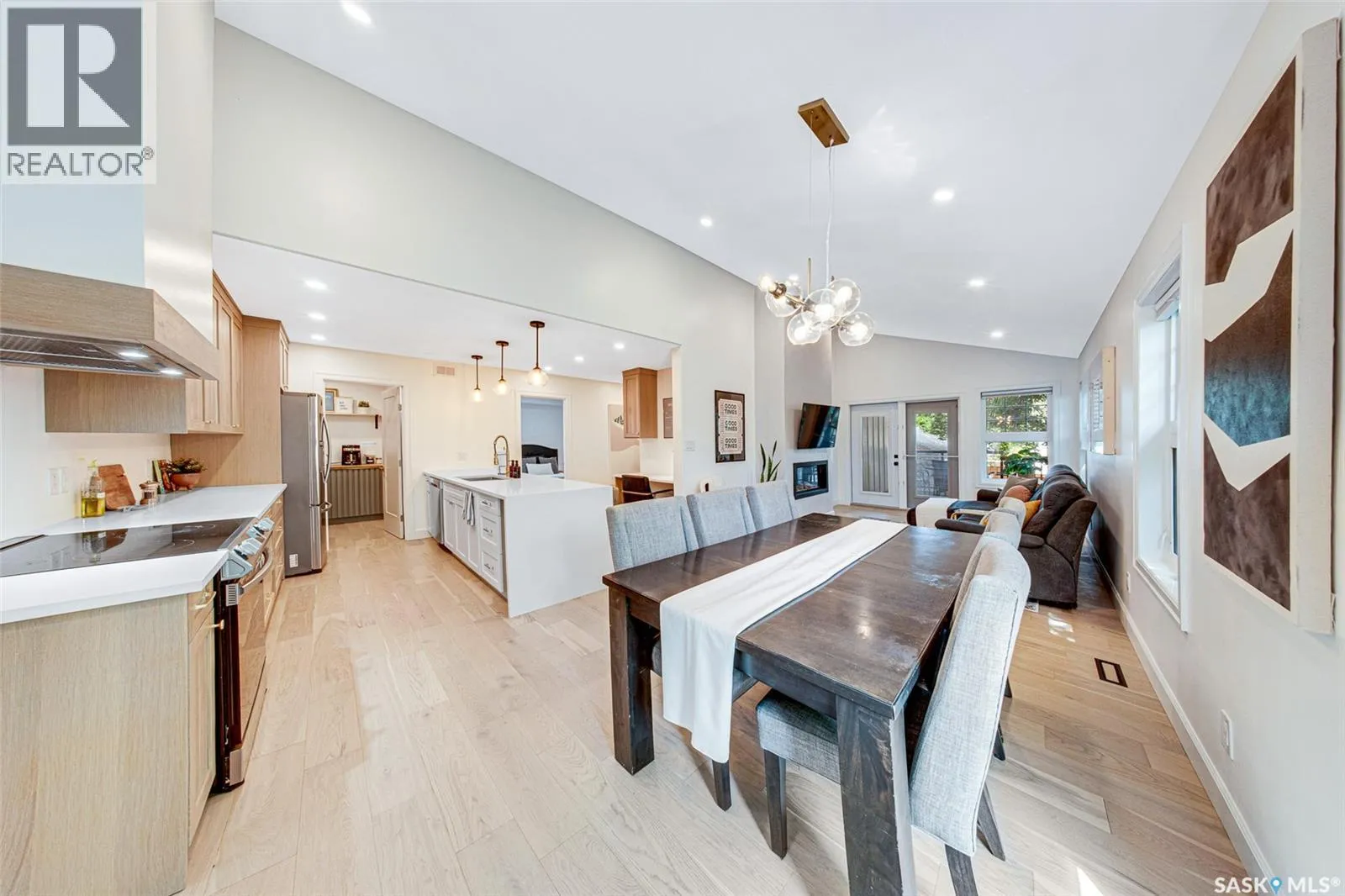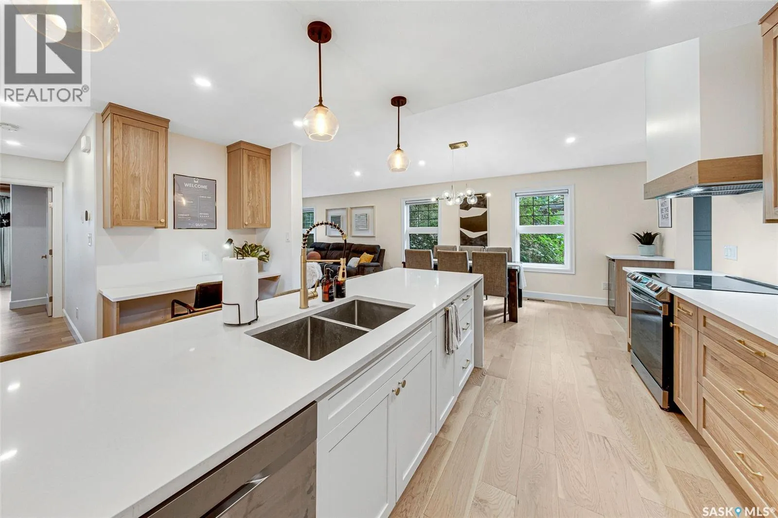 Welcome to this Holiday Park gem! This modern built 2 bed, 2 bath bungalow is sure to impress. Upon entering you are welcomed by the engineered hardwood flooring, the wood accents, the gold hardware, and the gas fireplace! The elegant kitchen will turn heads with quartz counter tops, custom cabinets, walk in butlers pantry and a wooden range hood. Master bedroom is warming with the wood work ceiling along with the eye catching tile in the ensuite. Other key notables: 2 car heated attached garage, 2 car detached garage, all appliances, heated ensuite floors, and there is a separate entry for a future possible suite (panel already installed) Located across from Gordie Howe Park, you can take advantage of the greenspace, the ball diamonds, the hockey rinks, the football fields, as well as being close to all amenities!! Don't miss out on this one!! (id:27476)