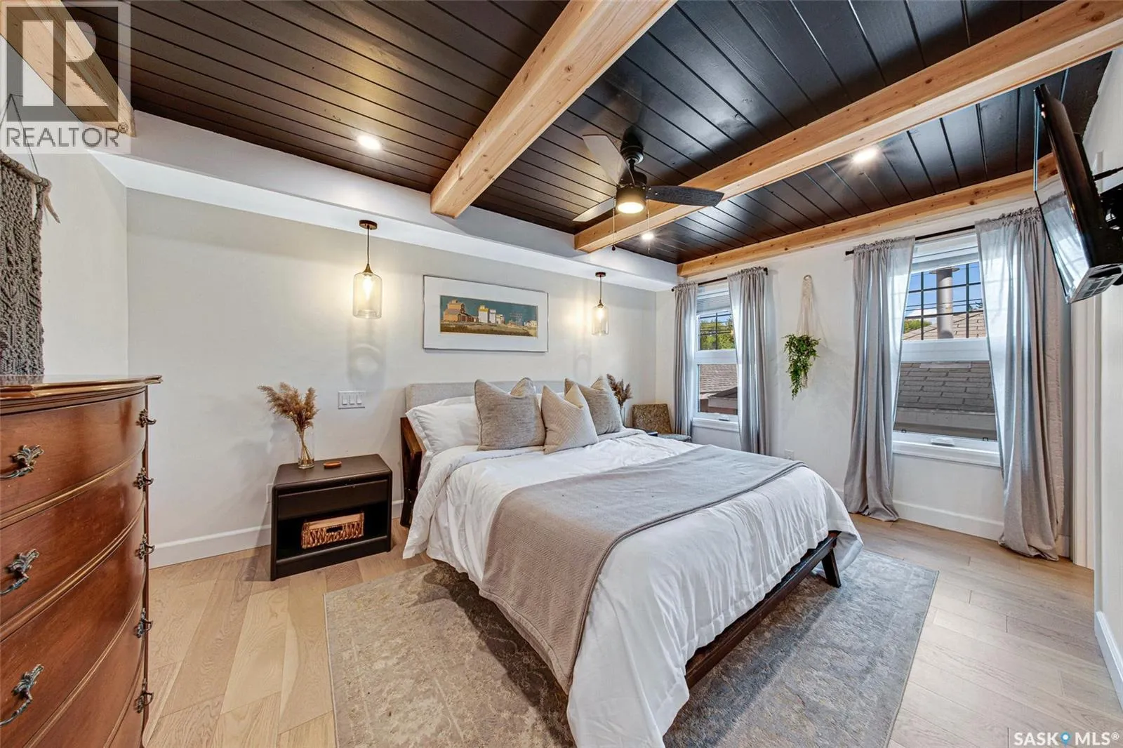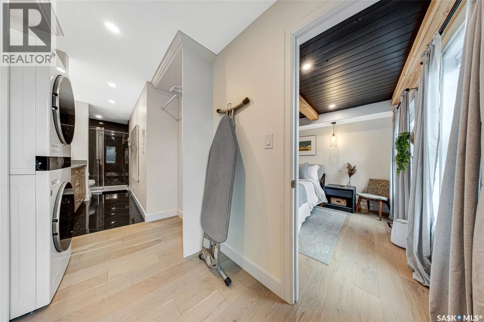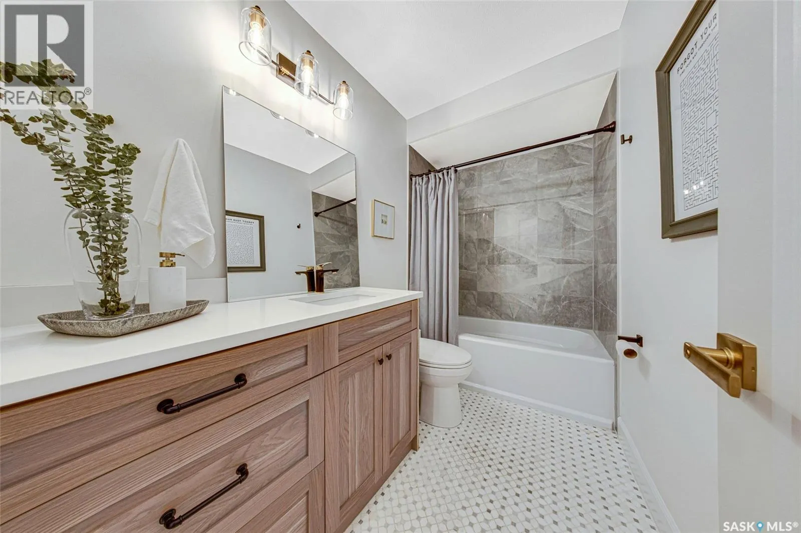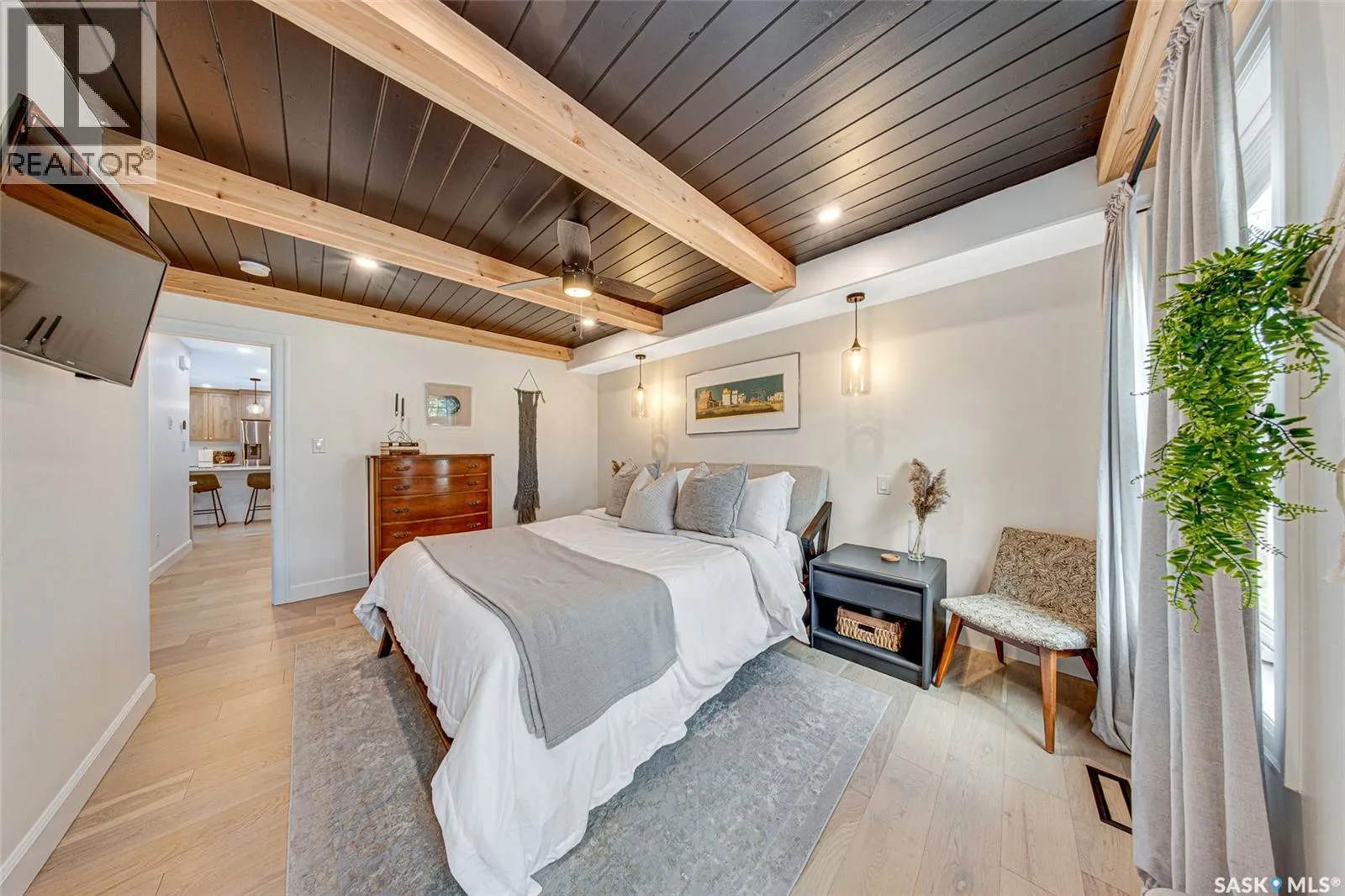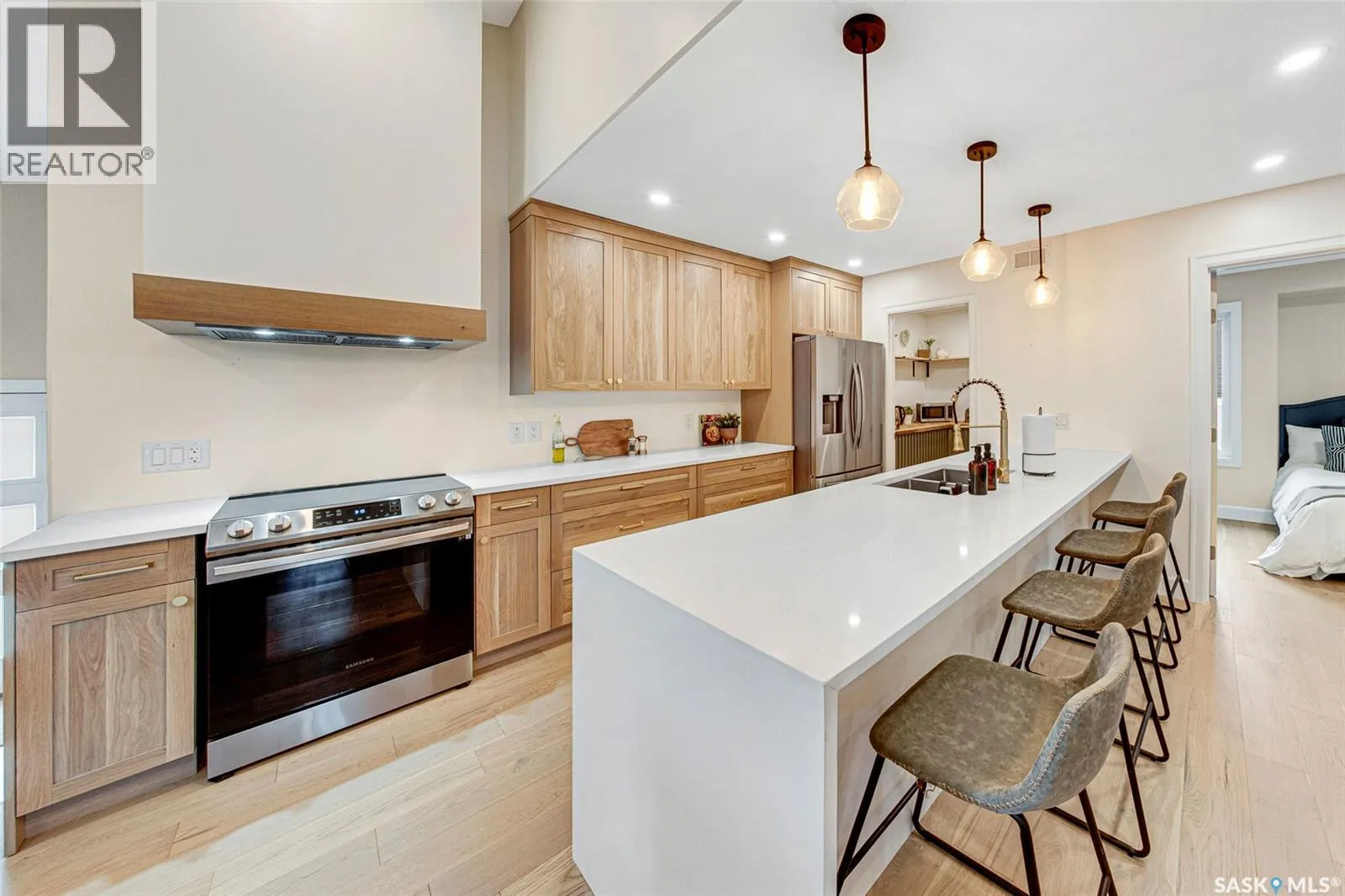 Welcome to this Holiday Park gem! This modern built 2 bed, 2 bath bungalow is sure to impress. Upon entering you are welcomed by the engineered hardwood flooring, the wood accents, the gold hardware, and the gas fireplace! The elegant kitchen will turn heads with quartz counter tops, custom cabinets, walk in butlers pantry and a wooden range hood. Master bedroom is warming with the wood work ceiling along with the eye catching tile in the ensuite. Other key notables: 2 car heated attached garage, 2 car detached garage, all appliances, heated ensuite floors, and there is a separate entry for a future possible suite (panel already installed) Located across from Gordie Howe Park, you can take advantage of the greenspace, the ball diamonds, the hockey rinks, the football fields, as well as being close to all amenities!! Don't miss out on this one!! (id:27476)