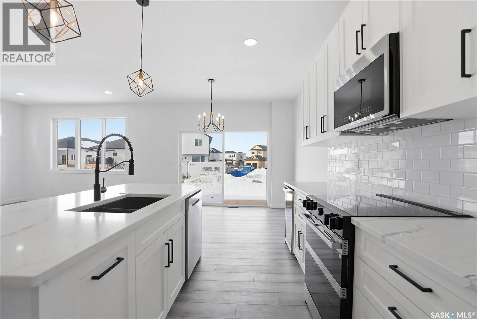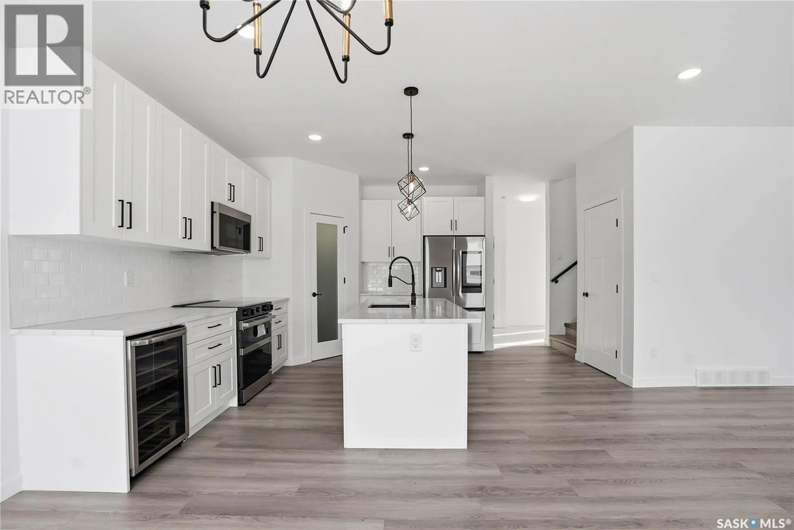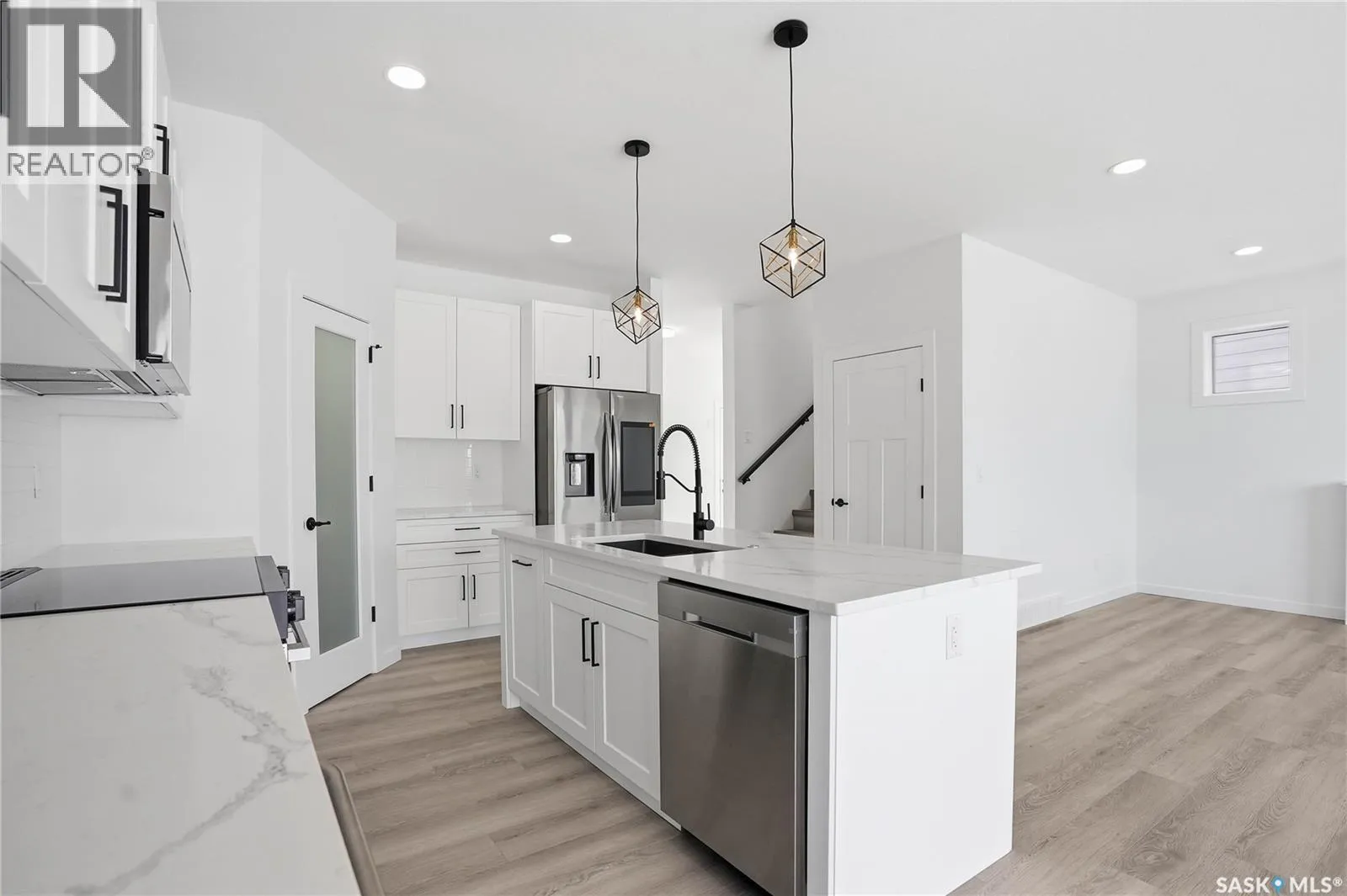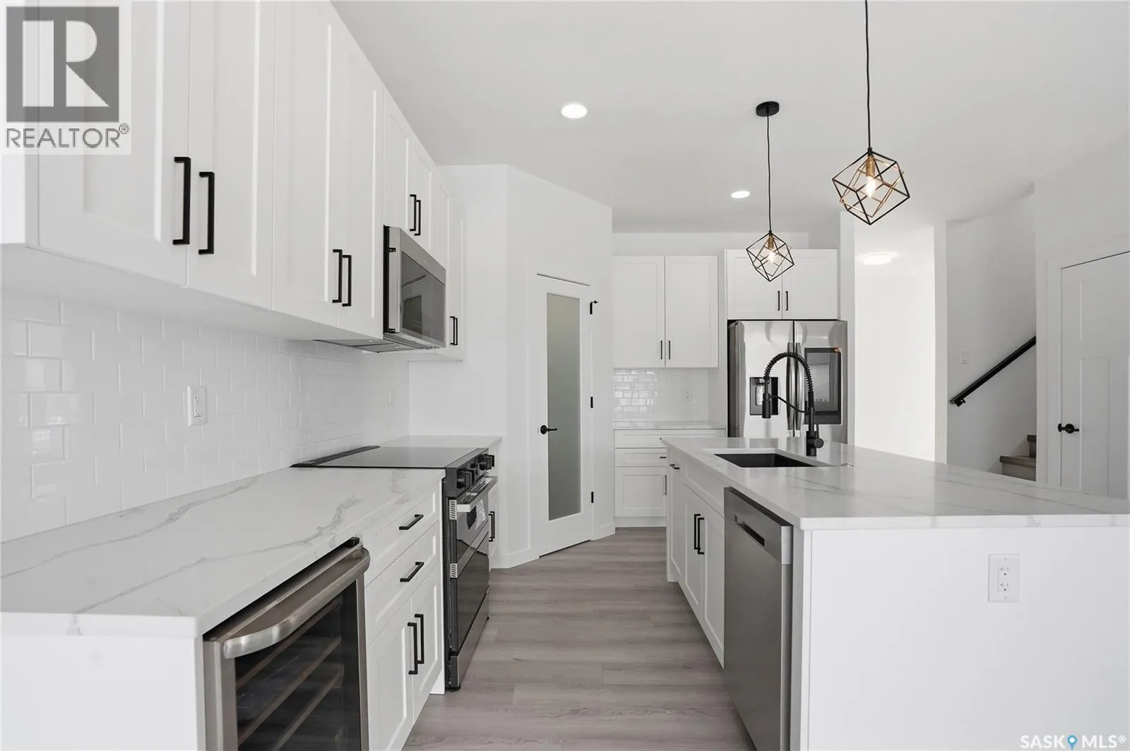 Welcome to refined living in the prestigious community of Aspen Ridge, one of Saskatoonâs most desirable and architecturally stunning neighbourhoods. This impeccably crafted 1,980 square foot executive two-storey home offers sophisticated design, premium finishes, and exceptional investment potential. The main level features an elegant open-concept layout anchored by a striking contemporary fireplace and a designer-inspired chefâs kitchen, complete with quartz countertops, upgraded stainless steel appliances, and a built-in beverage fridge â perfect for entertaining. Upstairs, youâll find a spacious bonus room, three beautifully appointed bedrooms, and a spa-inspired primary retreat featuring a luxurious five-piece ensuite with dual vanities, a walk-in glass shower, and a deep soaker tub. The double attached garage, concrete driveway, finished front landscaping, and private side entrance to the lower level elevate both convenience and long-term value. With the potential for a legal two-bedroom suite and eligibility for the Saskatchewan Secondary Suite Incentive, this home offers incredible income opportunity. Luxury. Functionality. Investment potential. This is elevated living in Aspen Ridge. Book your private tour today. GST/PST included in the purchase price with the rebate to builder. (id:27476)