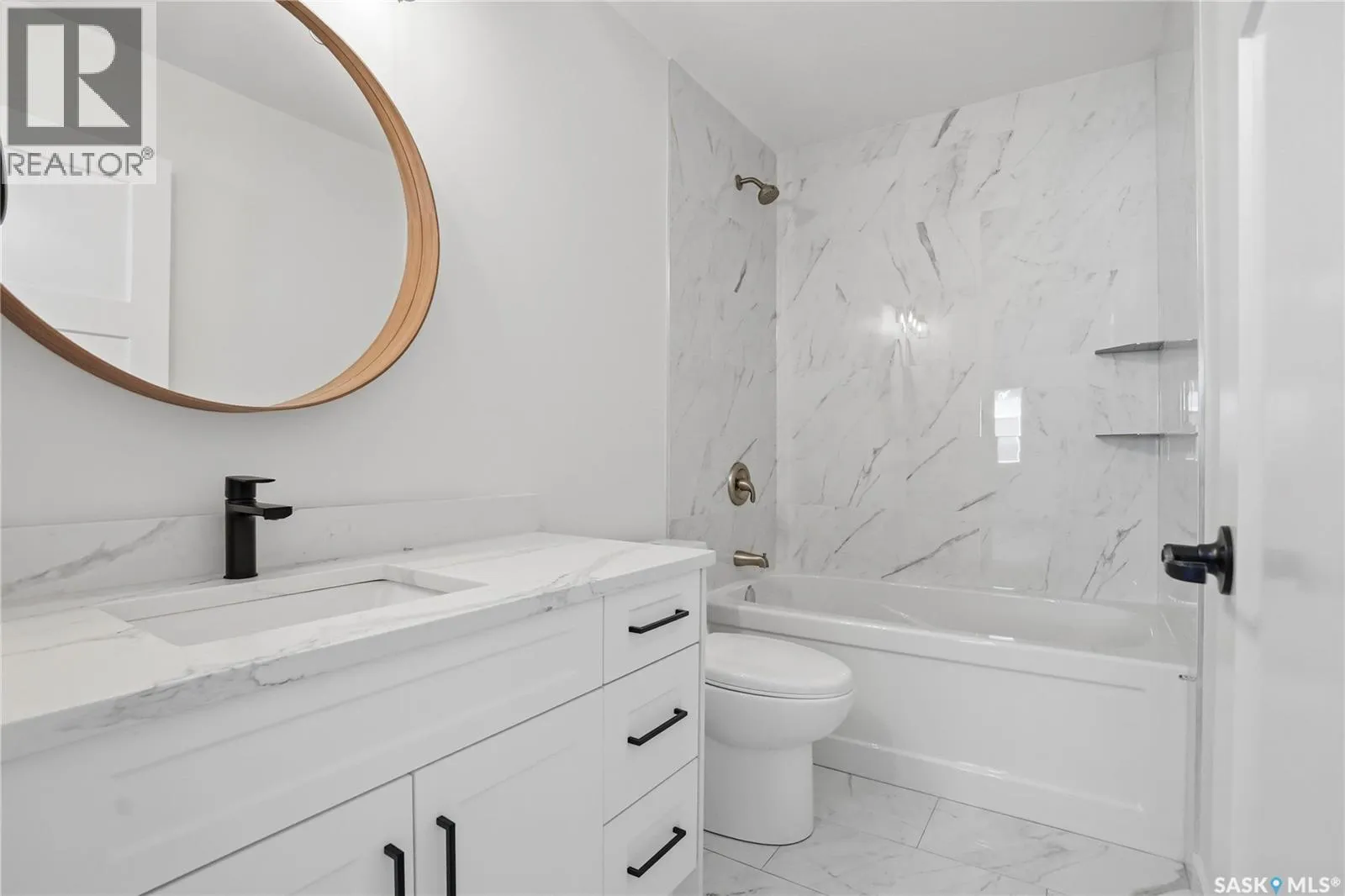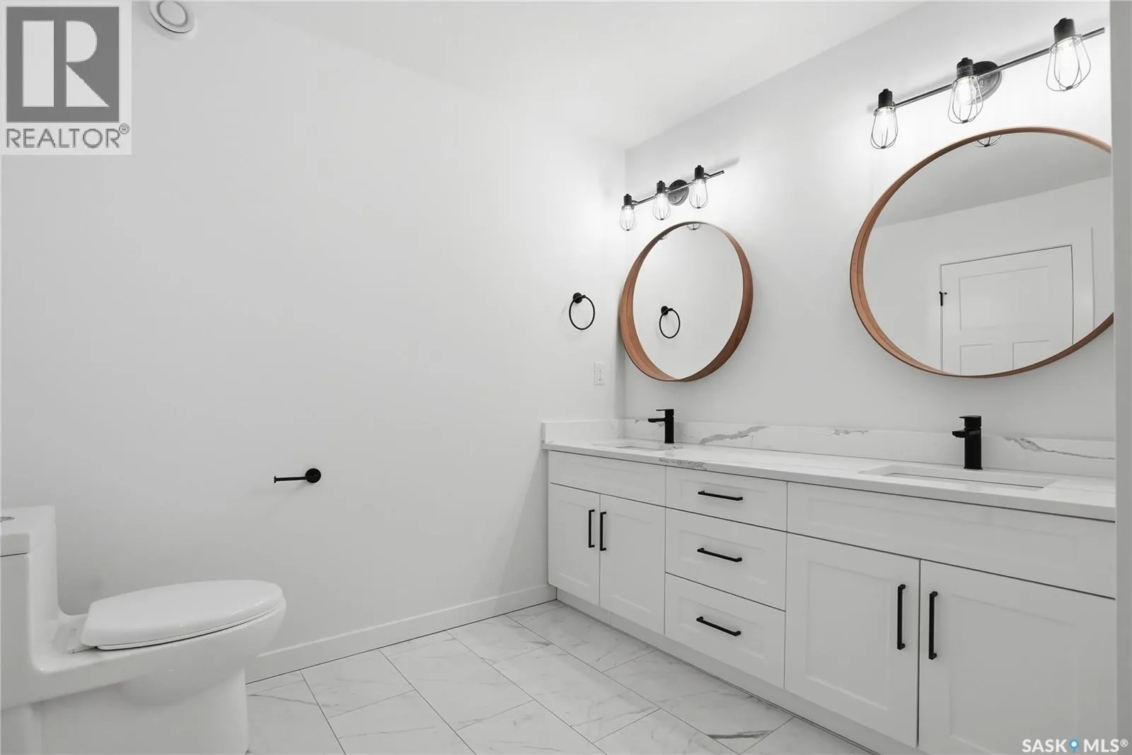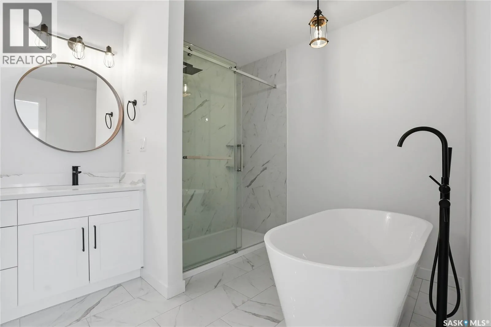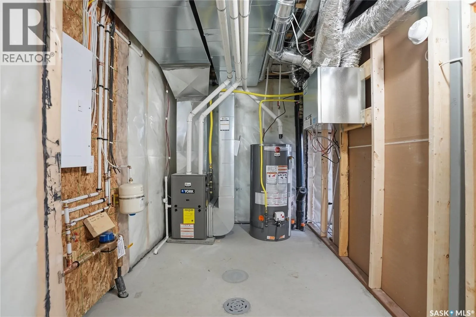 Welcome to refined living in the prestigious community of Aspen Ridge, one of Saskatoonâs most desirable and architecturally stunning neighbourhoods. This impeccably crafted 1,980 square foot executive two-storey home offers sophisticated design, premium finishes, and exceptional investment potential. The main level features an elegant open-concept layout anchored by a striking contemporary fireplace and a designer-inspired chefâs kitchen, complete with quartz countertops, upgraded stainless steel appliances, and a built-in beverage fridge â perfect for entertaining. Upstairs, youâll find a spacious bonus room, three beautifully appointed bedrooms, and a spa-inspired primary retreat featuring a luxurious five-piece ensuite with dual vanities, a walk-in glass shower, and a deep soaker tub. The double attached garage, concrete driveway, finished front landscaping, and private side entrance to the lower level elevate both convenience and long-term value. With the potential for a legal two-bedroom suite and eligibility for the Saskatchewan Secondary Suite Incentive, this home offers incredible income opportunity. Luxury. Functionality. Investment potential. This is elevated living in Aspen Ridge. Book your private tour today. GST/PST included in the purchase price with the rebate to builder. (id:27476)