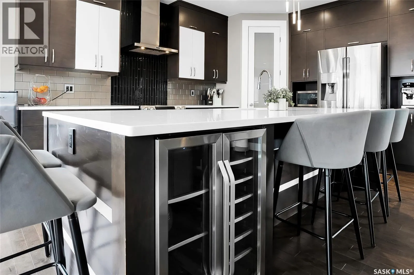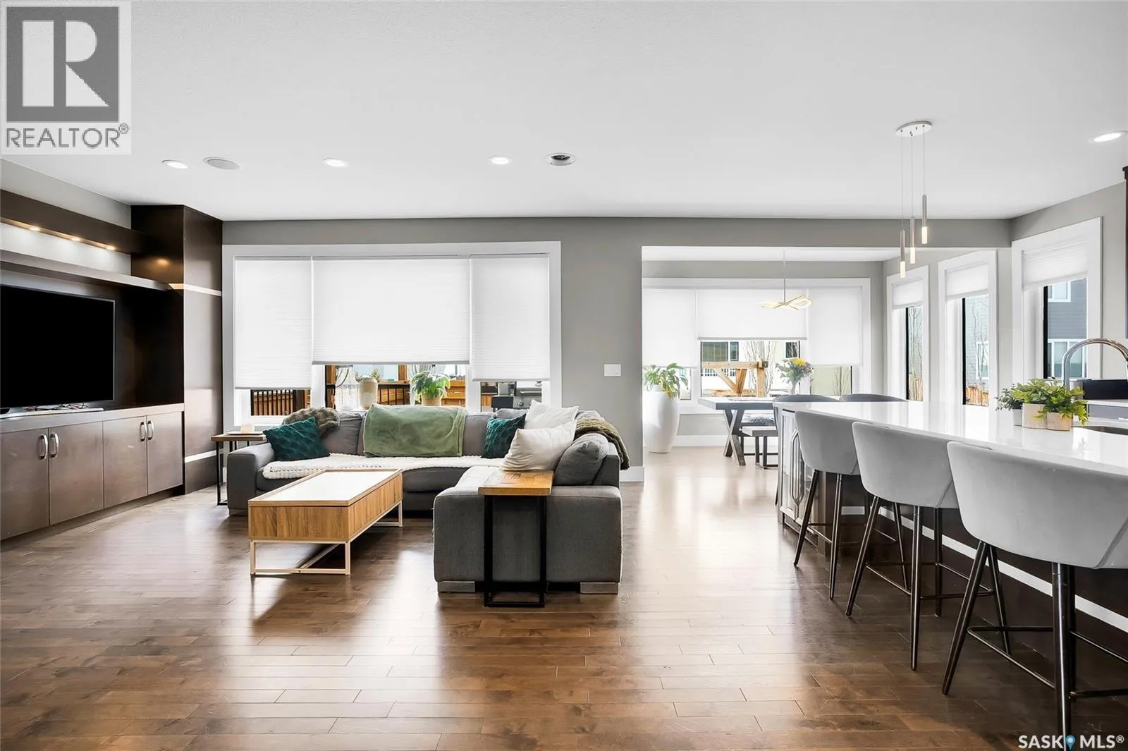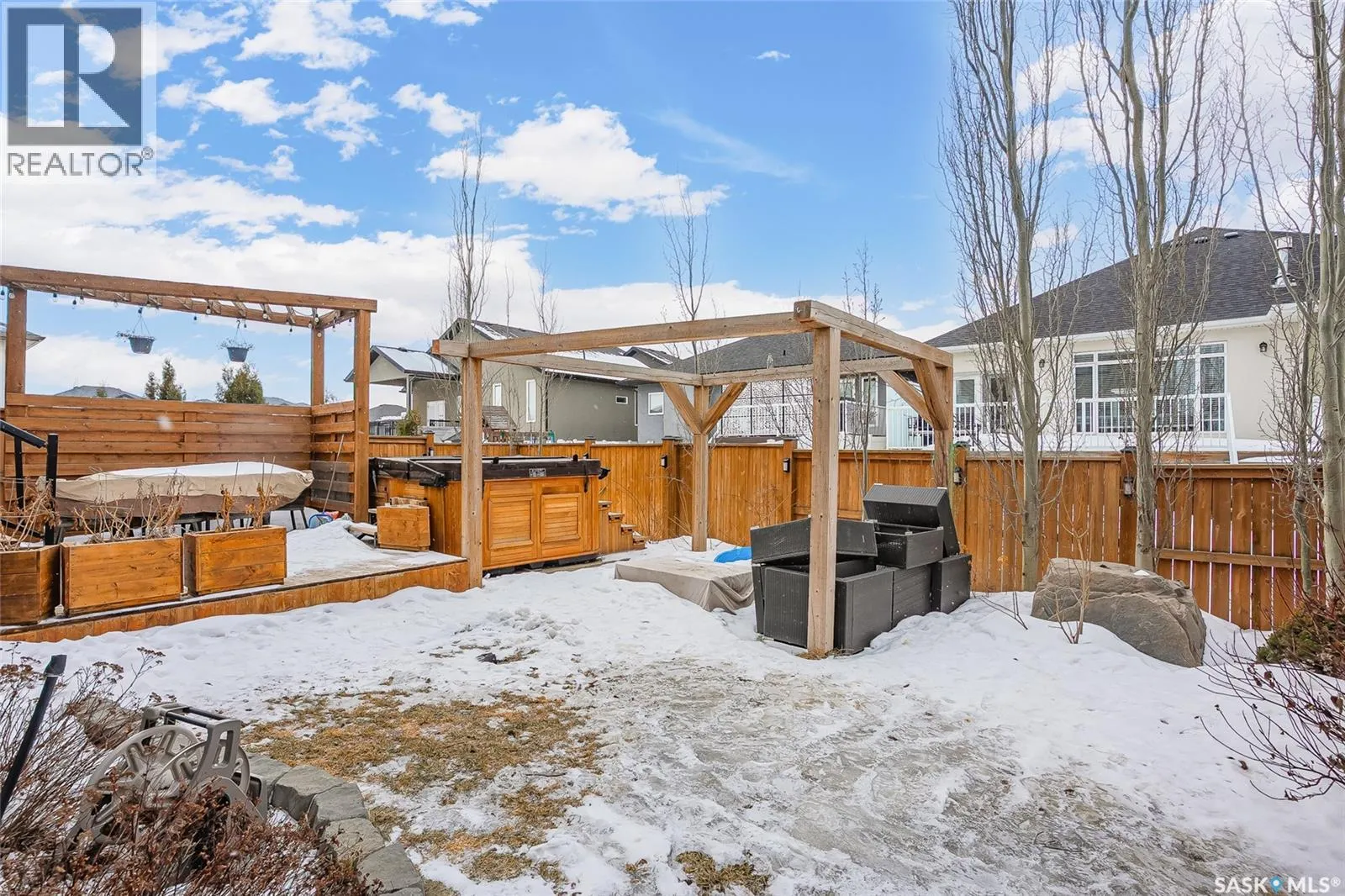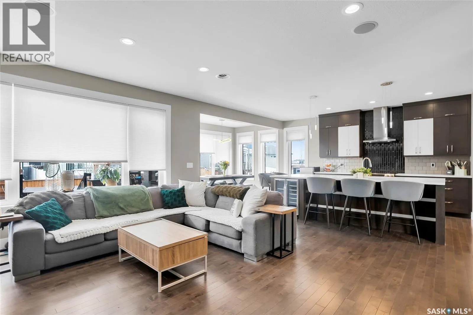 Located on Schumacher Bay, this custom-built 2,150 sq.ft. two-storey offers the perfect blend of luxury and everyday comfort in one of Saskatoonâs most sought-after neighbourhoods. Step inside to a grand foyer with a 19-foot ceiling that creates an impressive first impression. The main floor unfolds naturally, with 9-foot ceilings and large windows that frame the backyard and draw the outdoors in. The stylish kitchen has quartz countertops, a generous island, built-in beverage fridge, and a corner pantry that keeps everything within reach. Dinner parties flow effortlessly from the dining area into the living room that has integrated audio, and a gas fireplace creating an elegant focal point. A convenient two-piece bathroom and functional laundry/mudroom complete the main floor. Upstairs, the primary suite offers a private retreat with a walk-in closet and a spa-inspired five-piece ensuite featuring double sinks, a soaker tub, and a glass walk-in shower. Two additional bedrooms on this level share a thoughtfully designed four-piece bathroom with direct access from both rooms, making busy mornings a little smoother. The fully developed basement expands your options with a large family room, an additional bedroom, a four-piece bathroom, and a flexible den ideal for a home office or gym. Step outside to enjoy a beautifully designed, low-maintenance backyard that is perfect for entertaining or unwinding at the end of the day. It features a two-tier deck, a pergola with gas fire table, and a 14-foot all-weather swim spa. Out front, the oversized driveway leads to the heated triple attached garage, offering excellent storage, central vacuum, 220V outlet, and plenty of room for larger vehicles. Tucked into a quiet setting steps from schools, amenities, and the natural beauty of Hyde Park, this home is a rare opportunity in an exceptional location. Donât miss your chance to call this home your own! (id:27476)