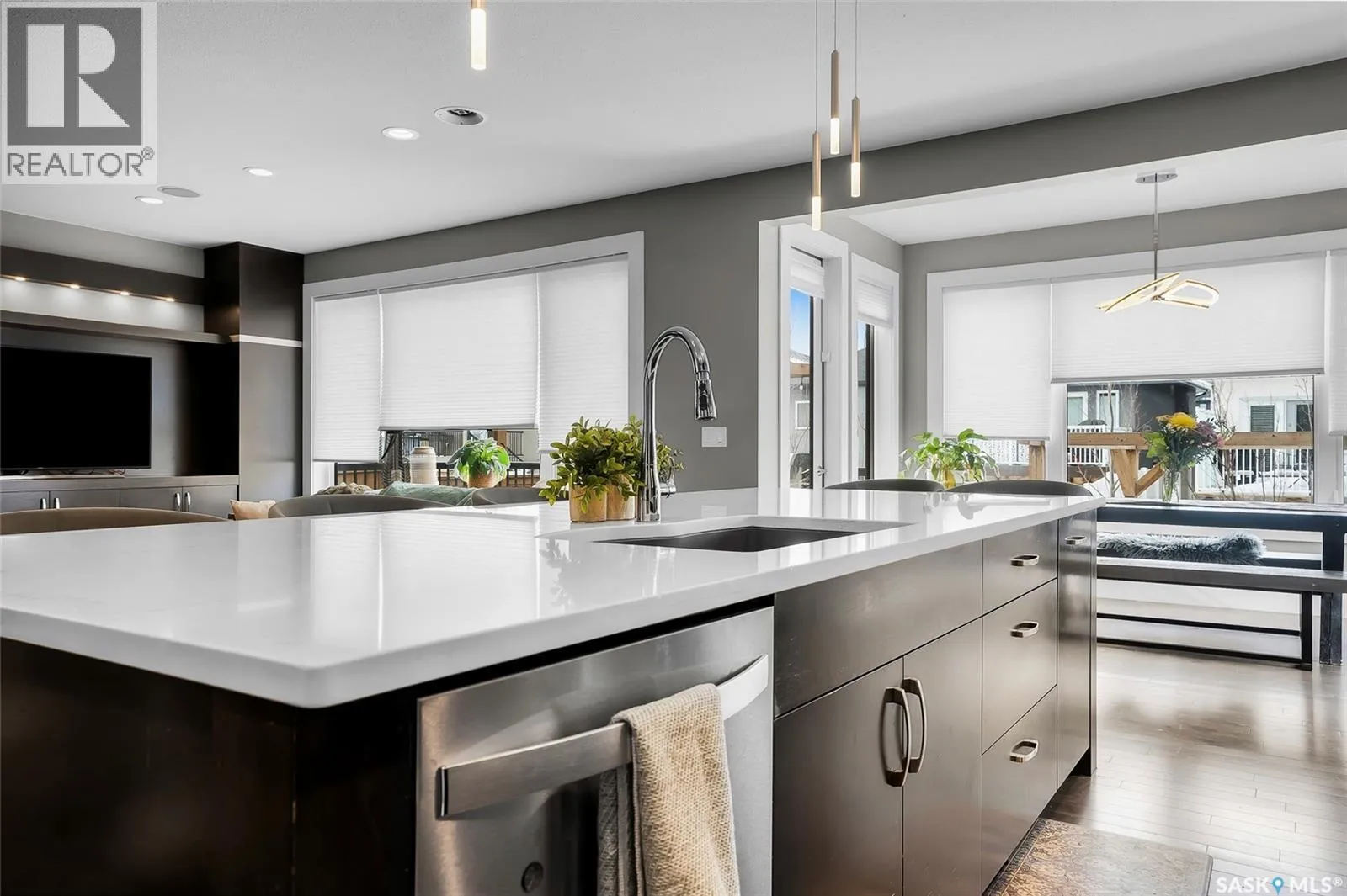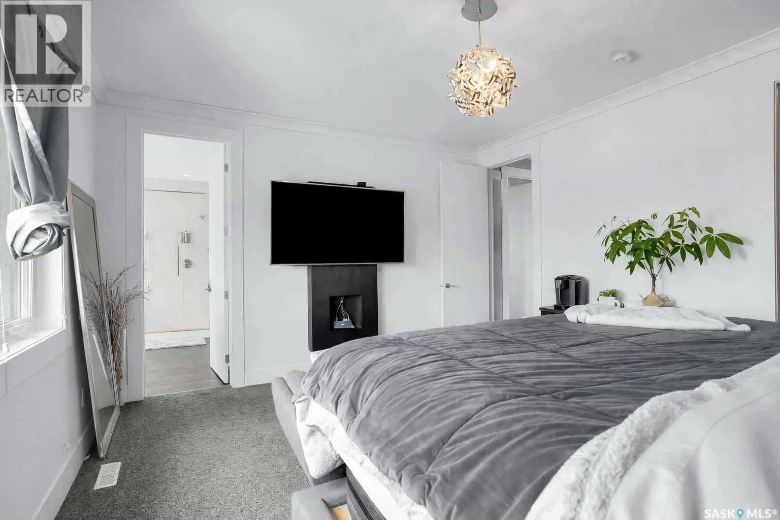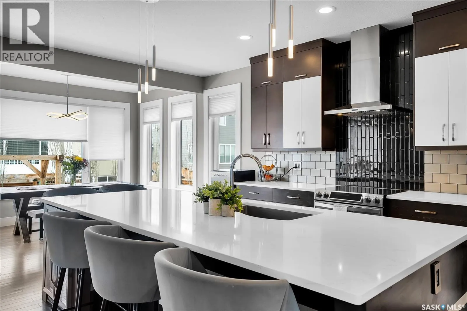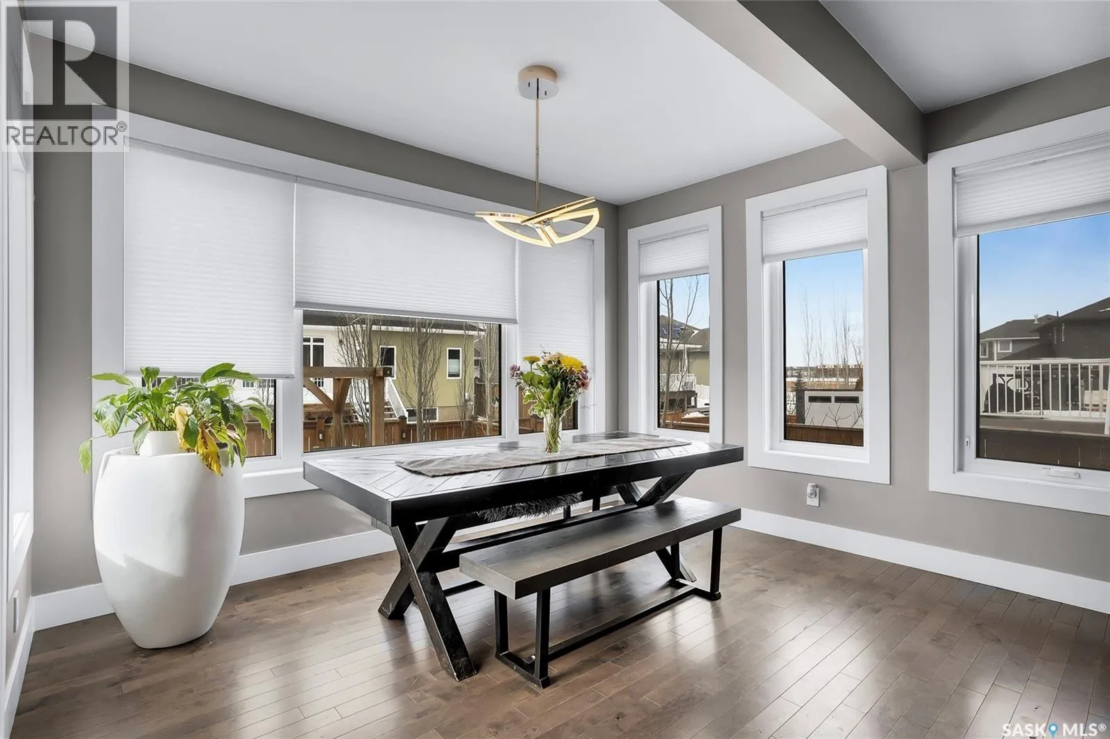 Located on Schumacher Bay, this custom-built 2,150 sq.ft. two-storey offers the perfect blend of luxury and everyday comfort in one of Saskatoonâs most sought-after neighbourhoods. Step inside to a grand foyer with a 19-foot ceiling that creates an impressive first impression. The main floor unfolds naturally, with 9-foot ceilings and large windows that frame the backyard and draw the outdoors in. The stylish kitchen has quartz countertops, a generous island, built-in beverage fridge, and a corner pantry that keeps everything within reach. Dinner parties flow effortlessly from the dining area into the living room that has integrated audio, and a gas fireplace creating an elegant focal point. A convenient two-piece bathroom and functional laundry/mudroom complete the main floor. Upstairs, the primary suite offers a private retreat with a walk-in closet and a spa-inspired five-piece ensuite featuring double sinks, a soaker tub, and a glass walk-in shower. Two additional bedrooms on this level share a thoughtfully designed four-piece bathroom with direct access from both rooms, making busy mornings a little smoother. The fully developed basement expands your options with a large family room, an additional bedroom, a four-piece bathroom, and a flexible den ideal for a home office or gym. Step outside to enjoy a beautifully designed, low-maintenance backyard that is perfect for entertaining or unwinding at the end of the day. It features a two-tier deck, a pergola with gas fire table, and a 14-foot all-weather swim spa. Out front, the oversized driveway leads to the heated triple attached garage, offering excellent storage, central vacuum, 220V outlet, and plenty of room for larger vehicles. Tucked into a quiet setting steps from schools, amenities, and the natural beauty of Hyde Park, this home is a rare opportunity in an exceptional location. Donât miss your chance to call this home your own! (id:27476)