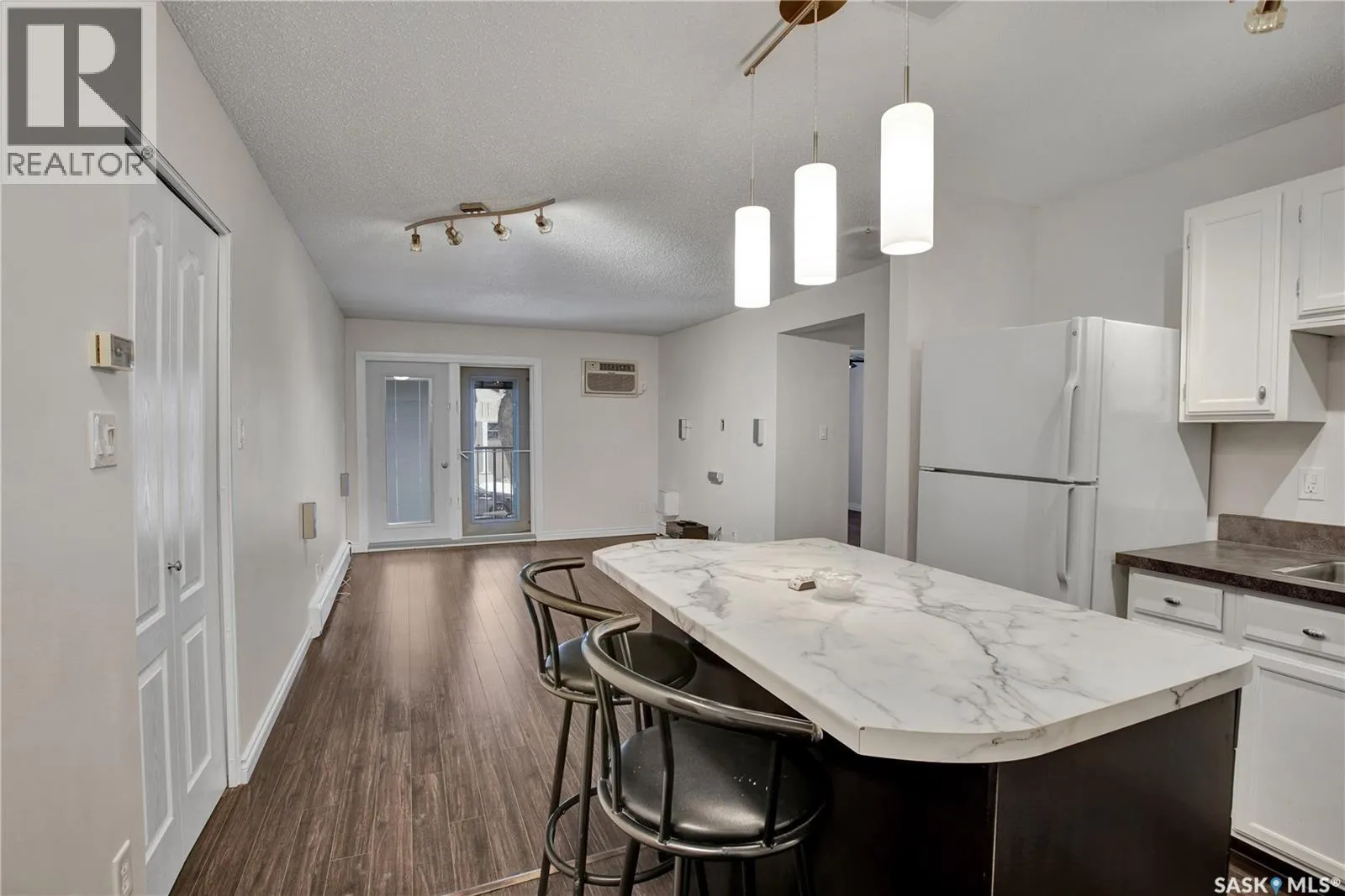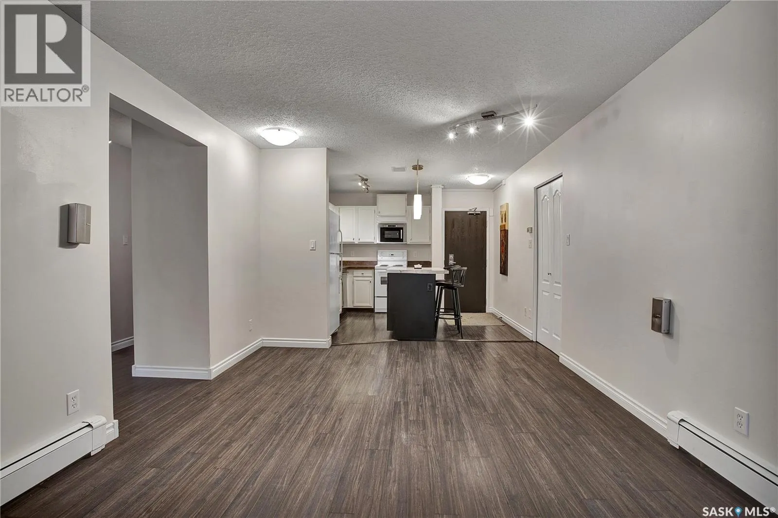 Welcome to this well-maintained 2-bedroom condo in the desirable City Park neighbourhood of Saskatoon. Featuring a bright open-concept layout, this unit offers comfortable living with stylish modern touches throughout. The living and dining areas flow seamlessly together, creating an inviting space that is perfect for relaxing or entertaining. The home features newer flooring, adding a fresh and updated feel. The kitchen overlooks the main living space, enhancing the open and functional design. Both bedrooms are generously sized, and the unit is complemented by a private balcony and a large storage space. Located just minutes from downtown, the University, the river, walking trails, restaurants, and local amenities, City Park offers one of Saskatoon's most convenient and sought-after locations. This property is a great opportunity for first-time buyers, professionals, or investors looking for a well-located home in a vibrant community. (id:27476)